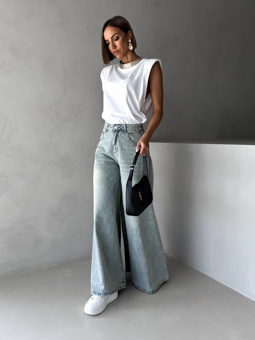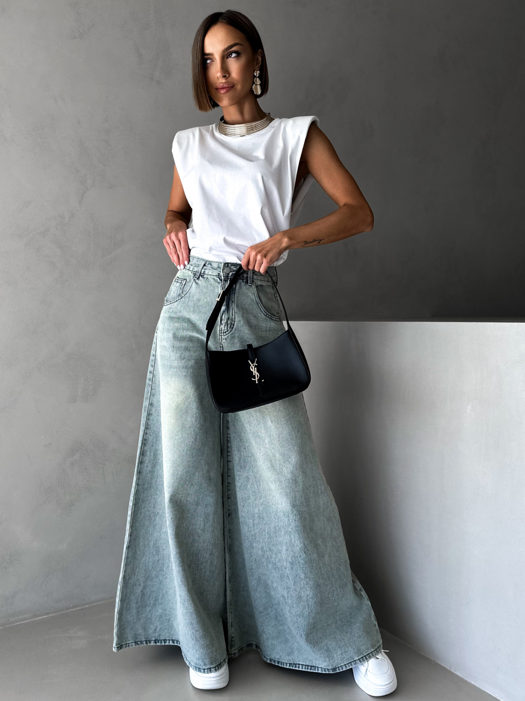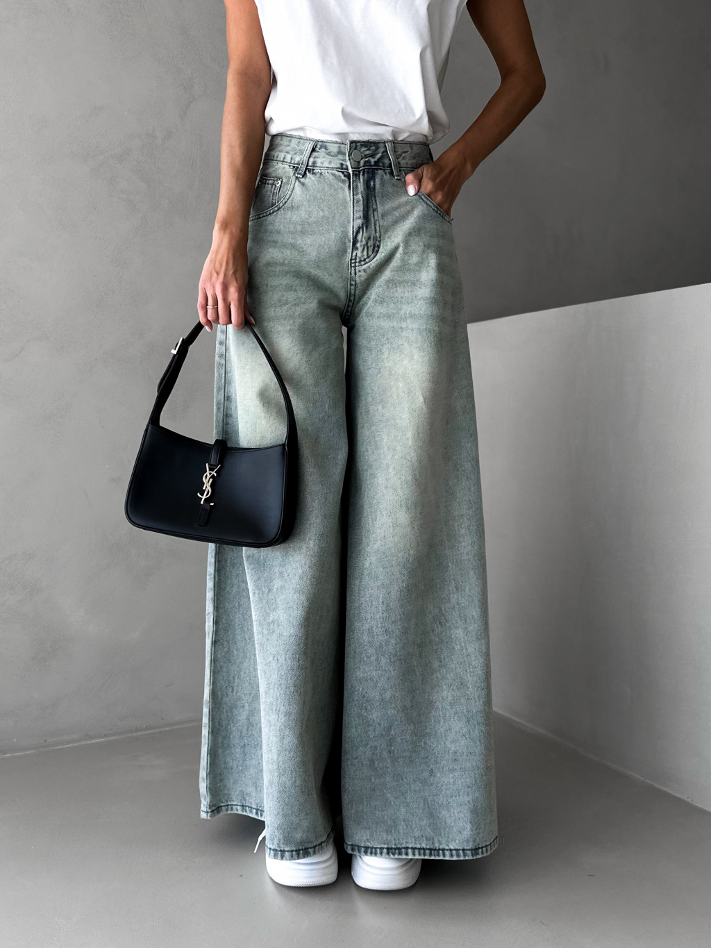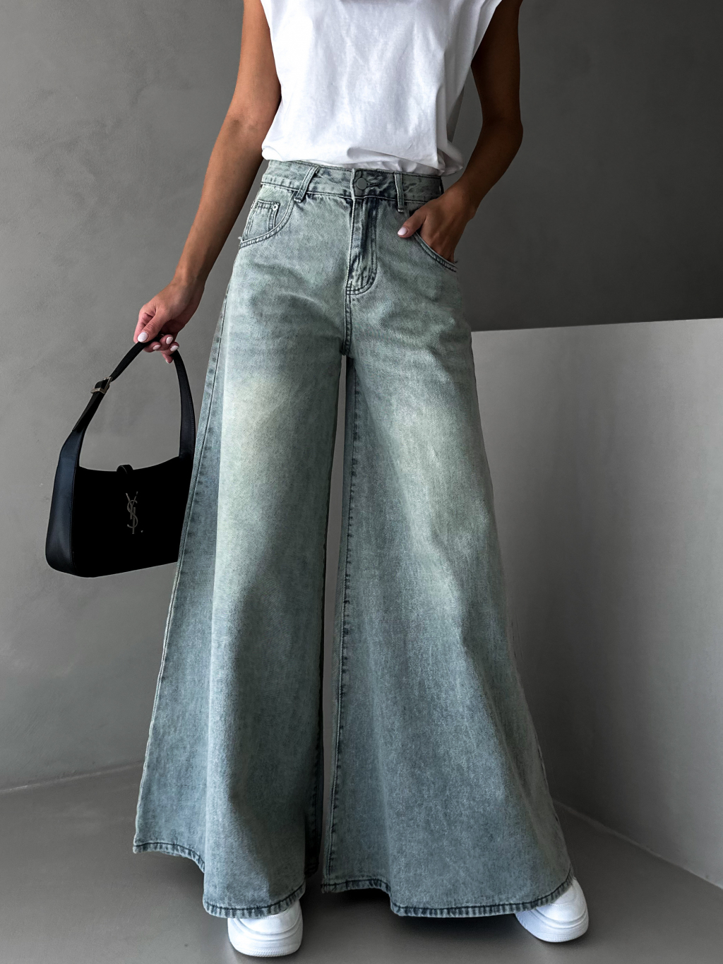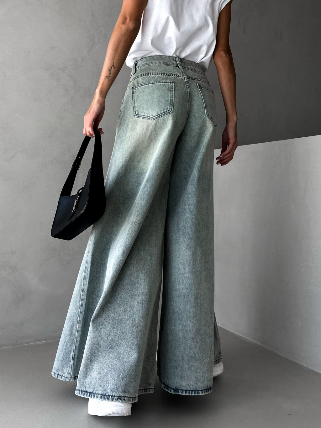 Modrozelené extra wide leg široké džíny AKIHIKO