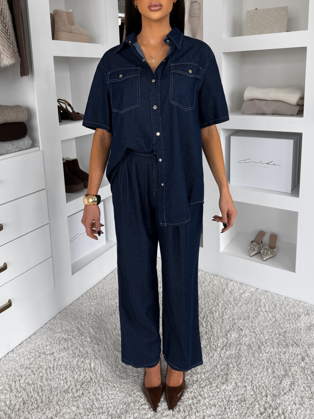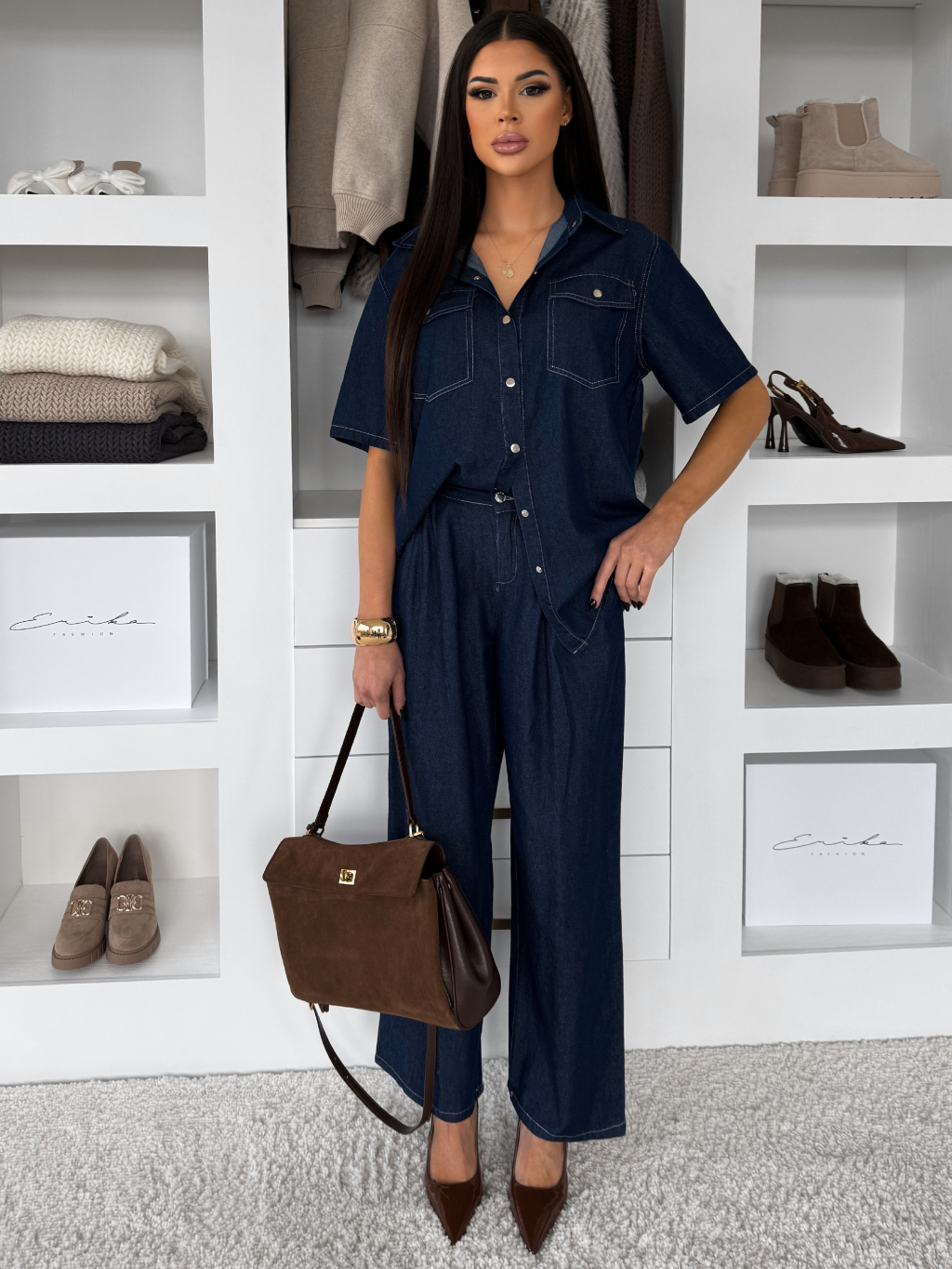 Modrý kalhotový džínový komplet AMBRON s košilí