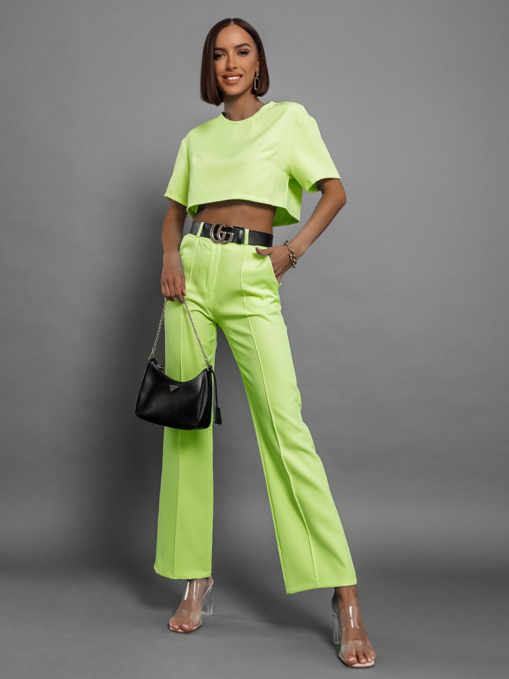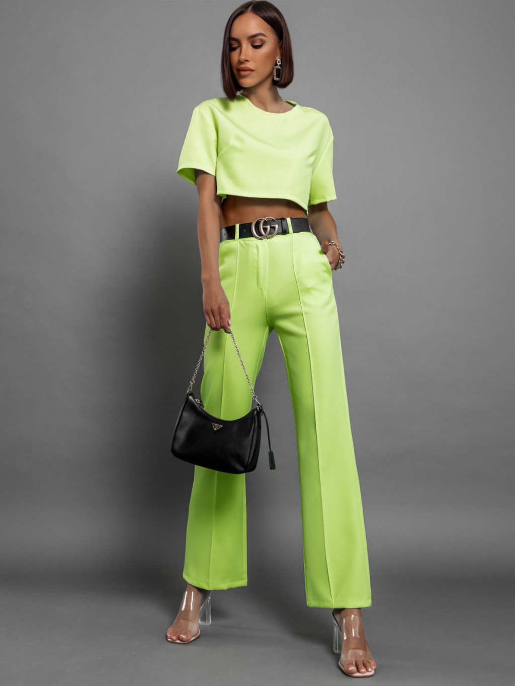 Neonově zelený elegantní dvoudílný komplet CRYLLA
