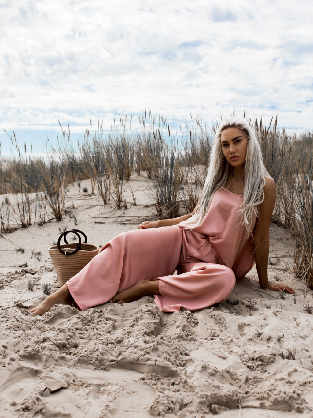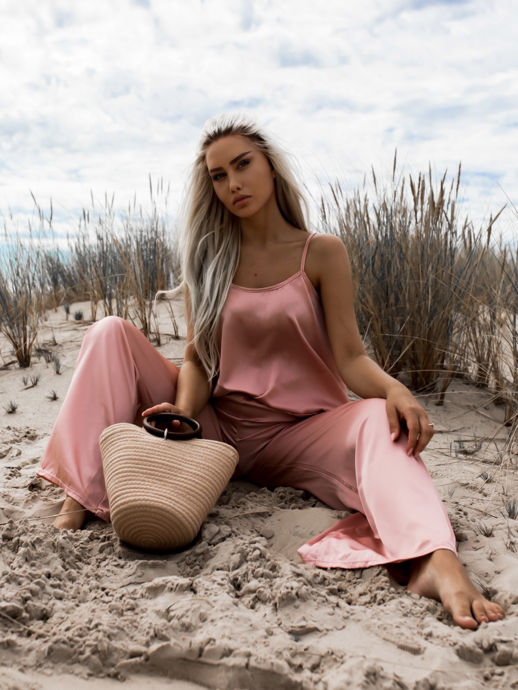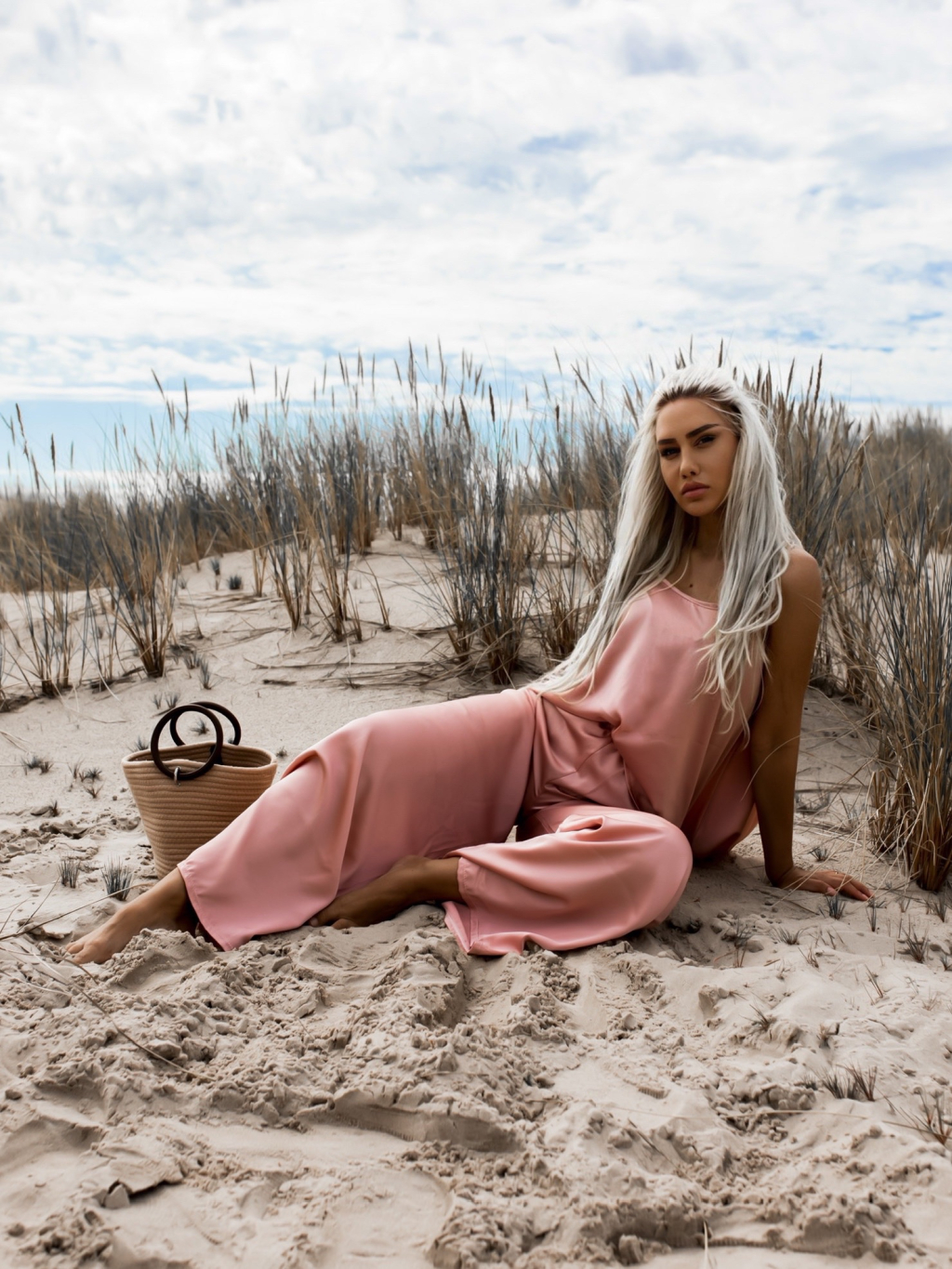 Starorůžový dlouhý dvoudílný lesklý komplet PURE