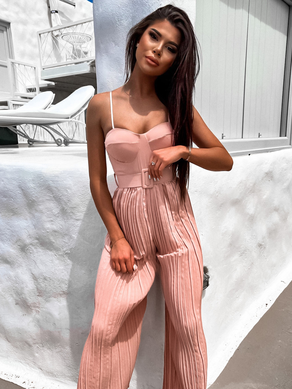 Starorůžový overal HICKORY s plisovanými kalhoty