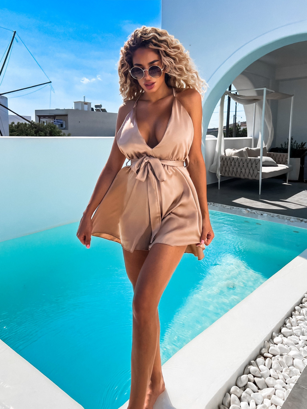Světle hnědý lesklý elegantní overal LUXE