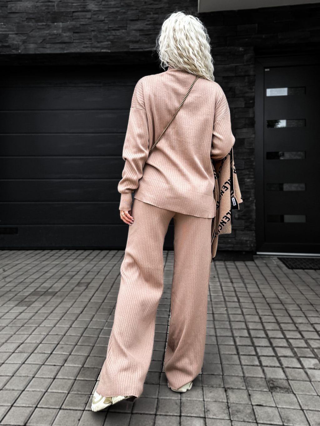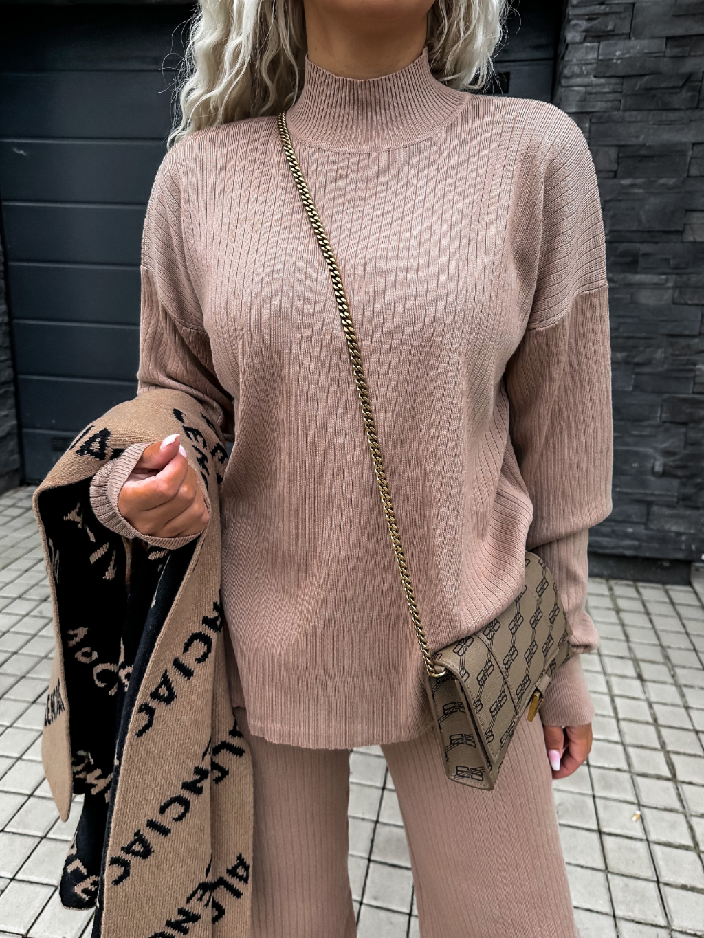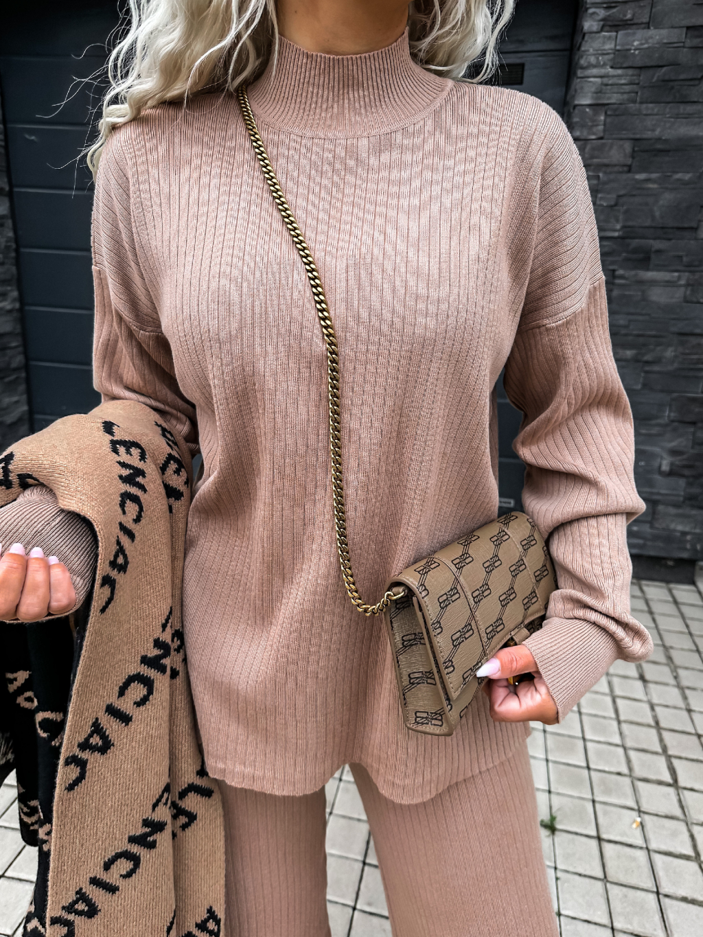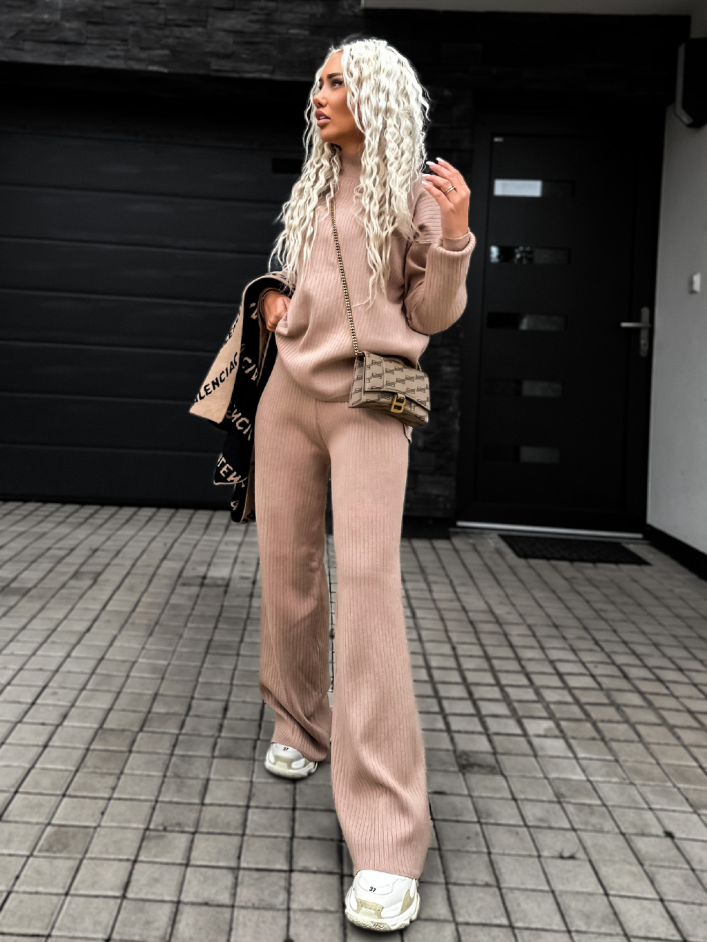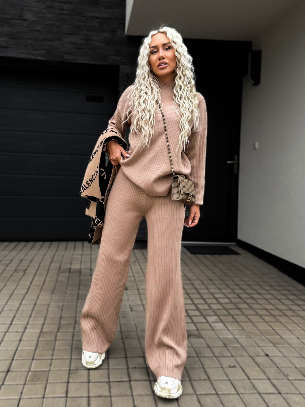 Světle hnědý žebrovaný dvoudílný komplet LELIEN s dlouhým rukávem
