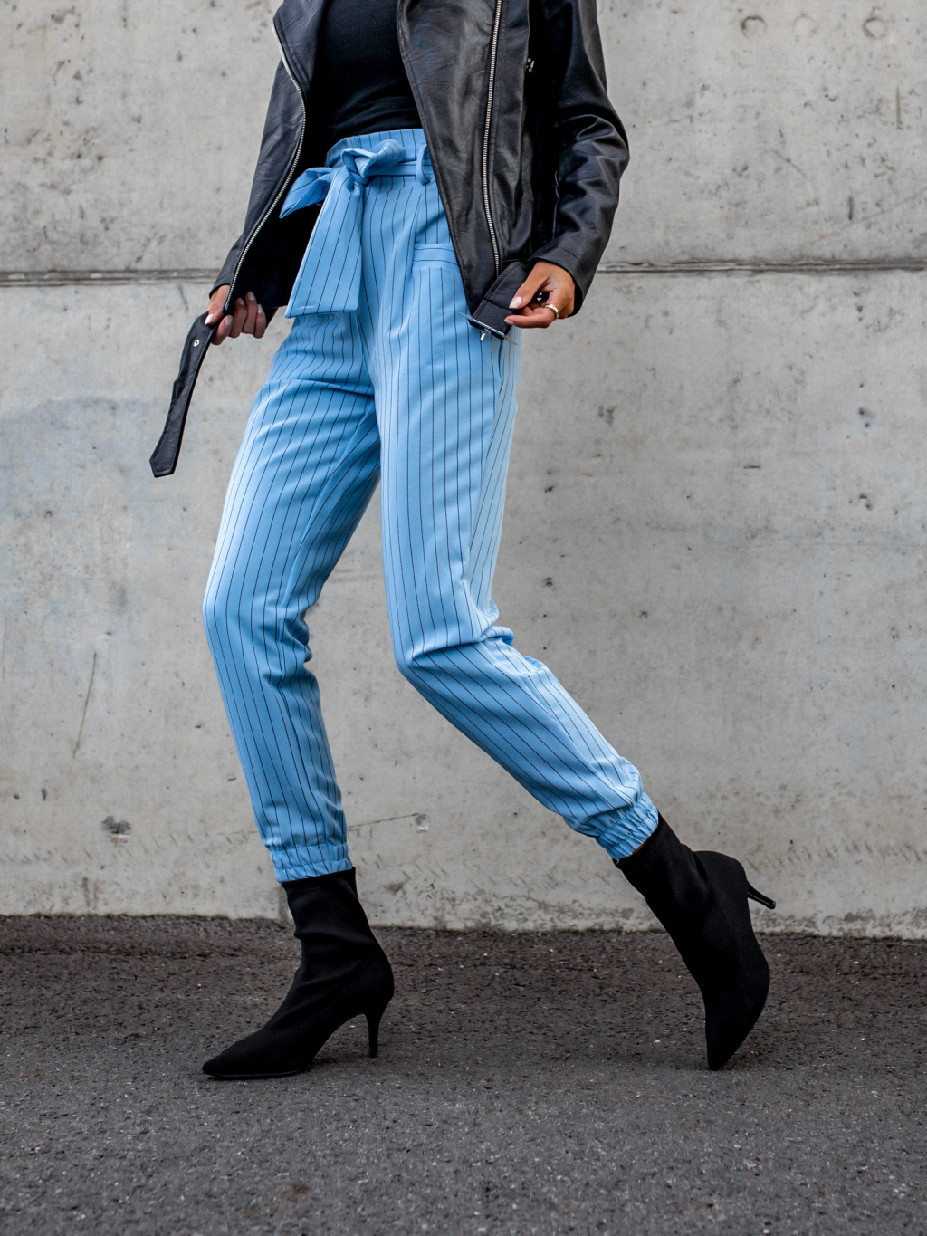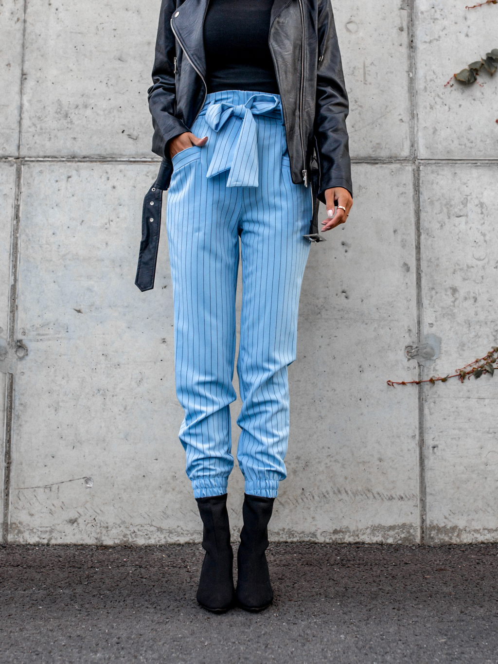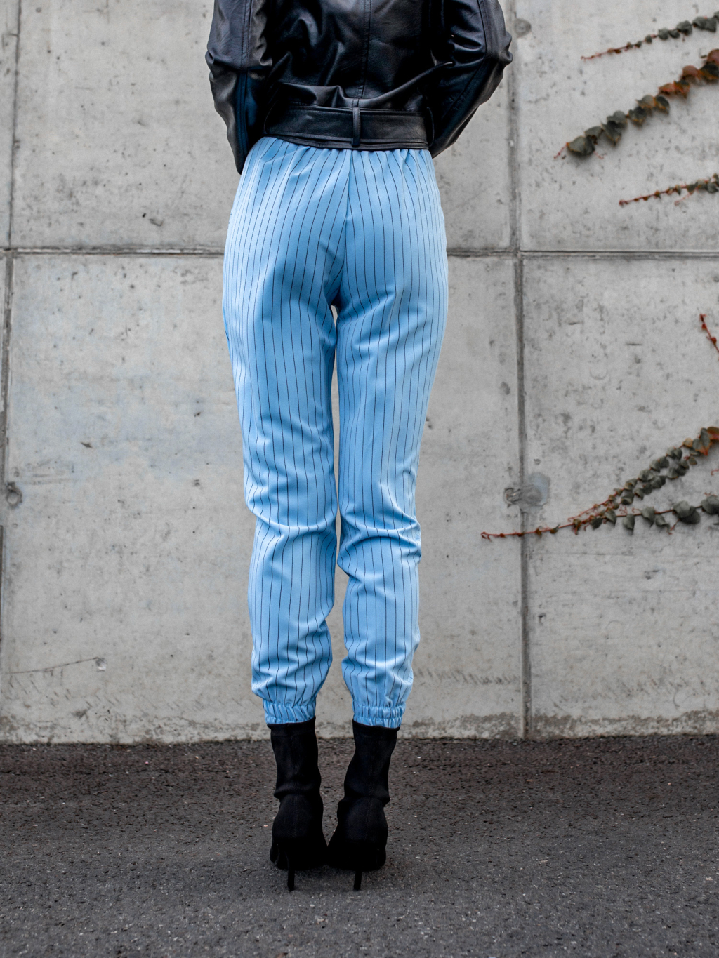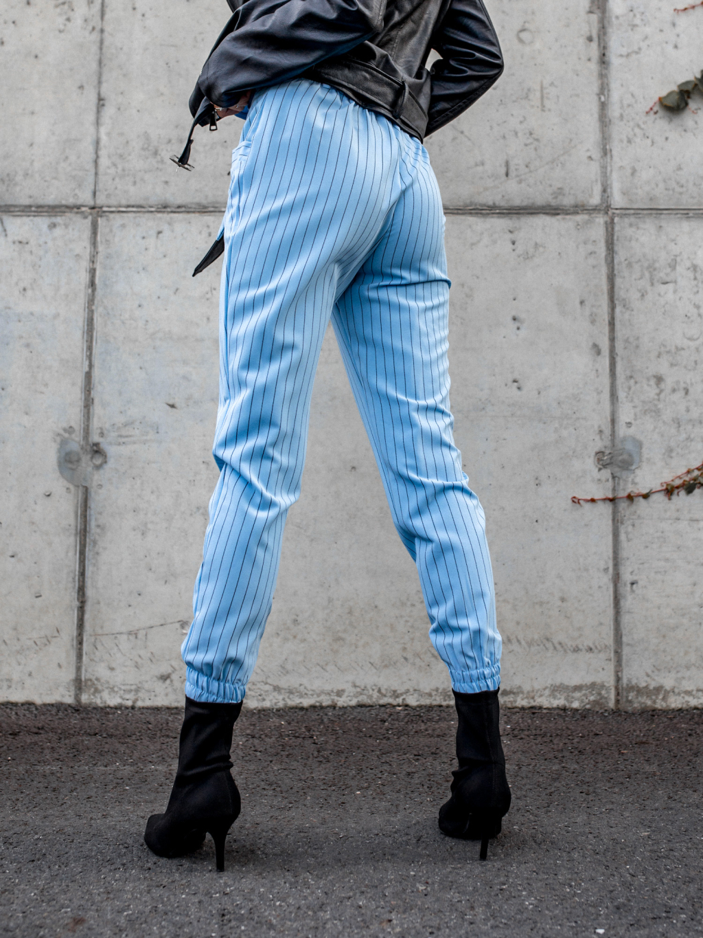 Světle modré pruhované kalhoty MORENA s vyšším pasem
