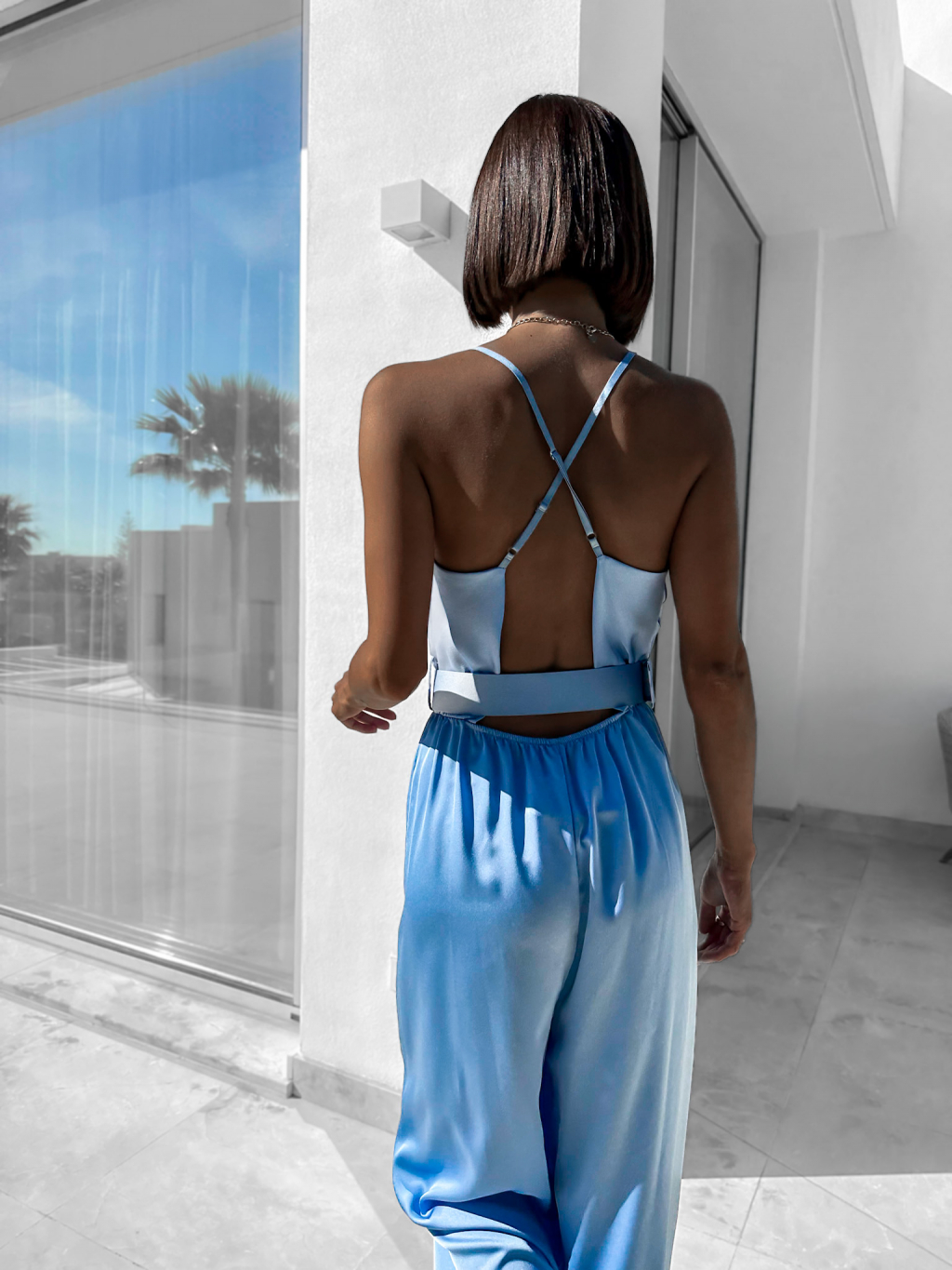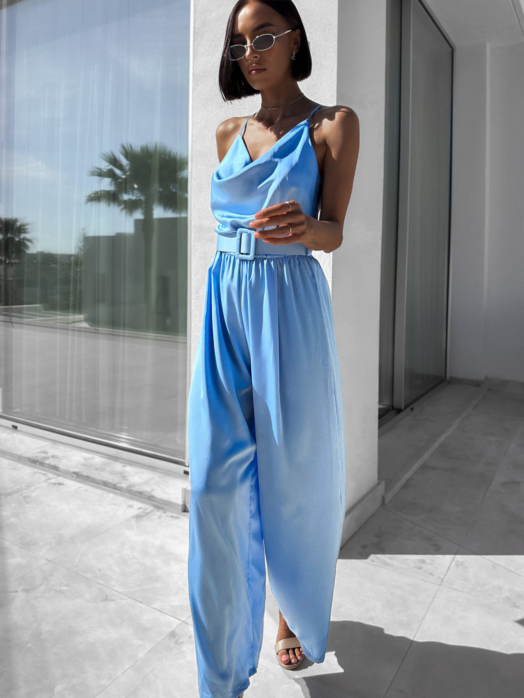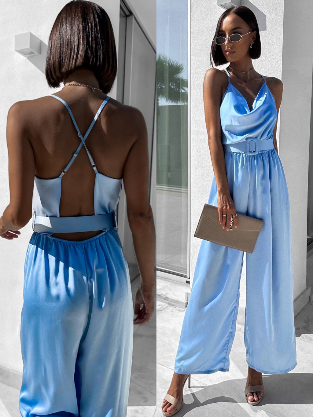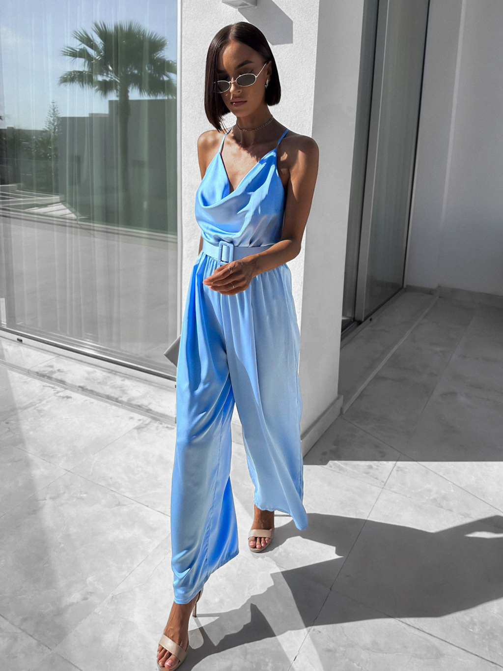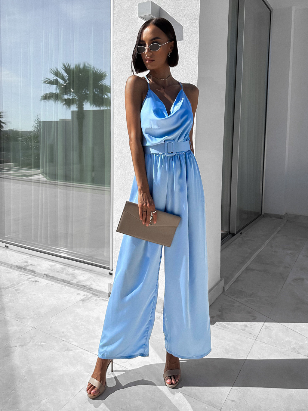 Světle modrý elegantní overal WILLIAM s páskem