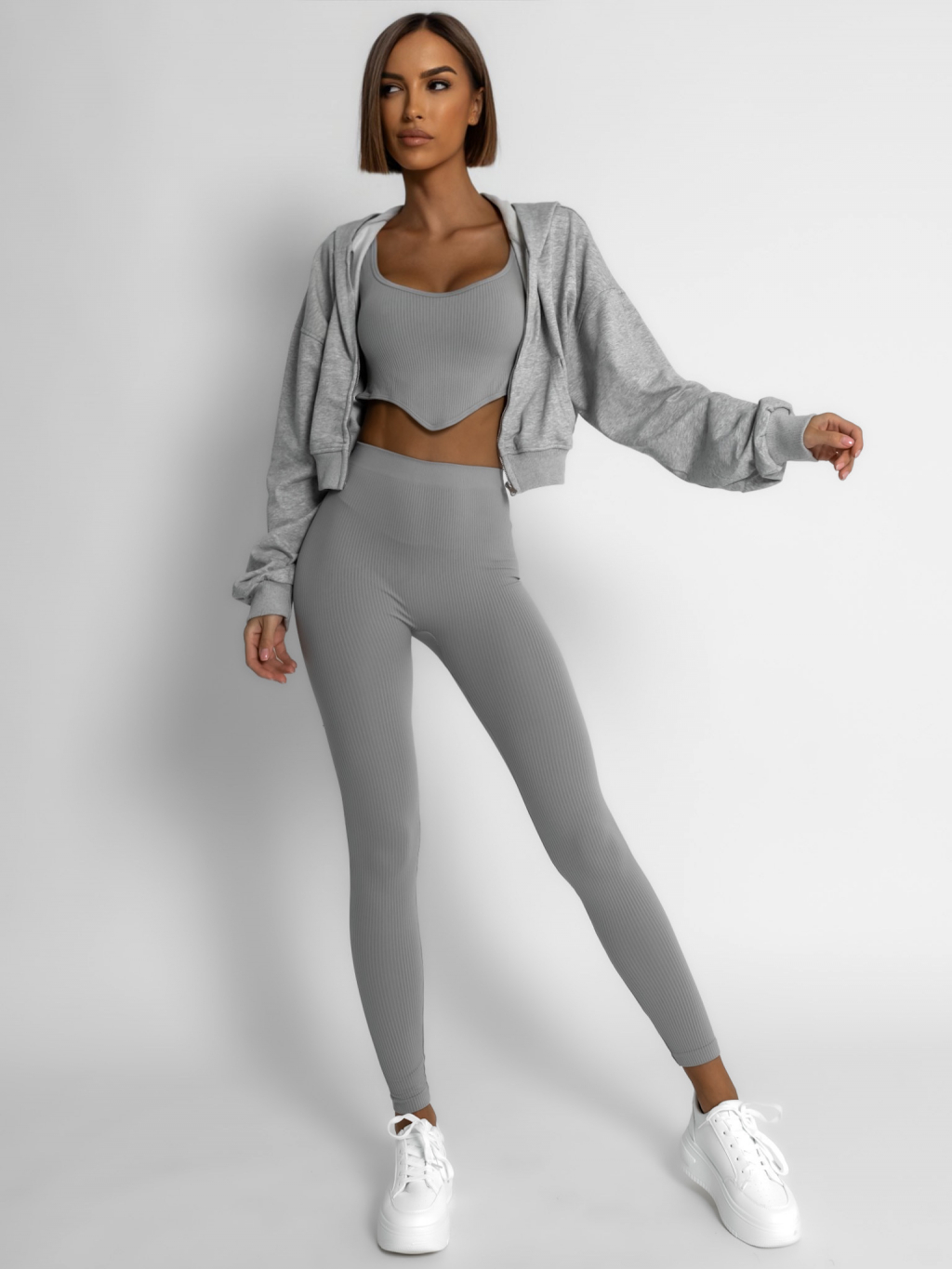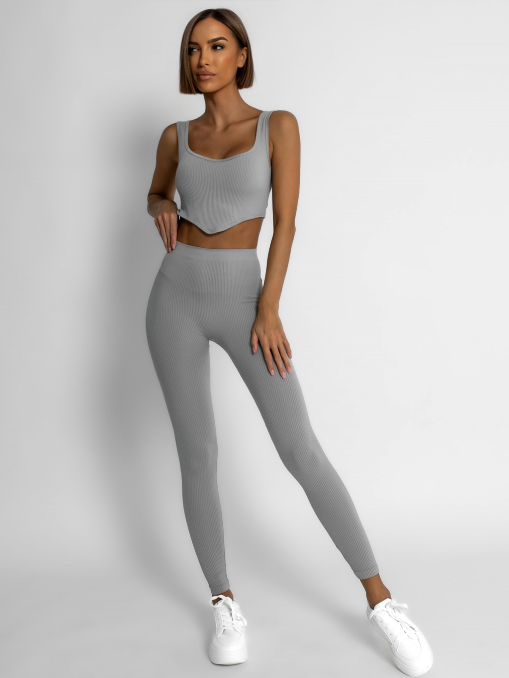 Světle šedý žebrovaný dvoudílný komplet NATALISE