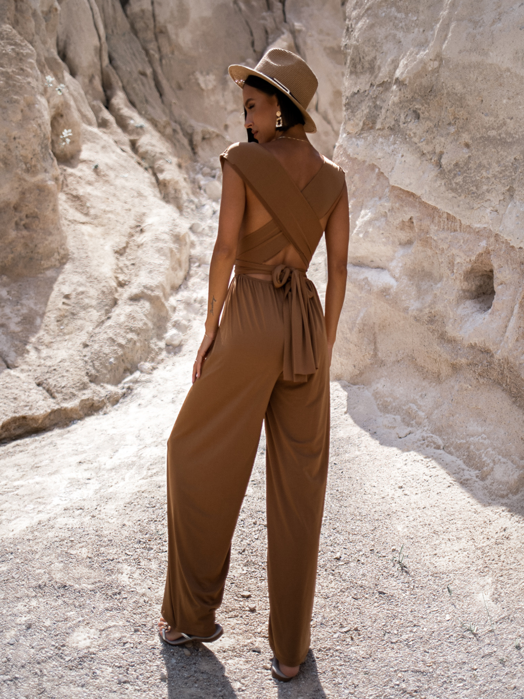 Tmavě hnědý dlouhý overal PERCY na zavazování
