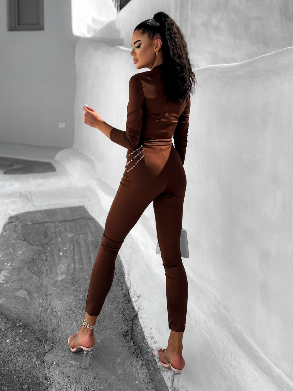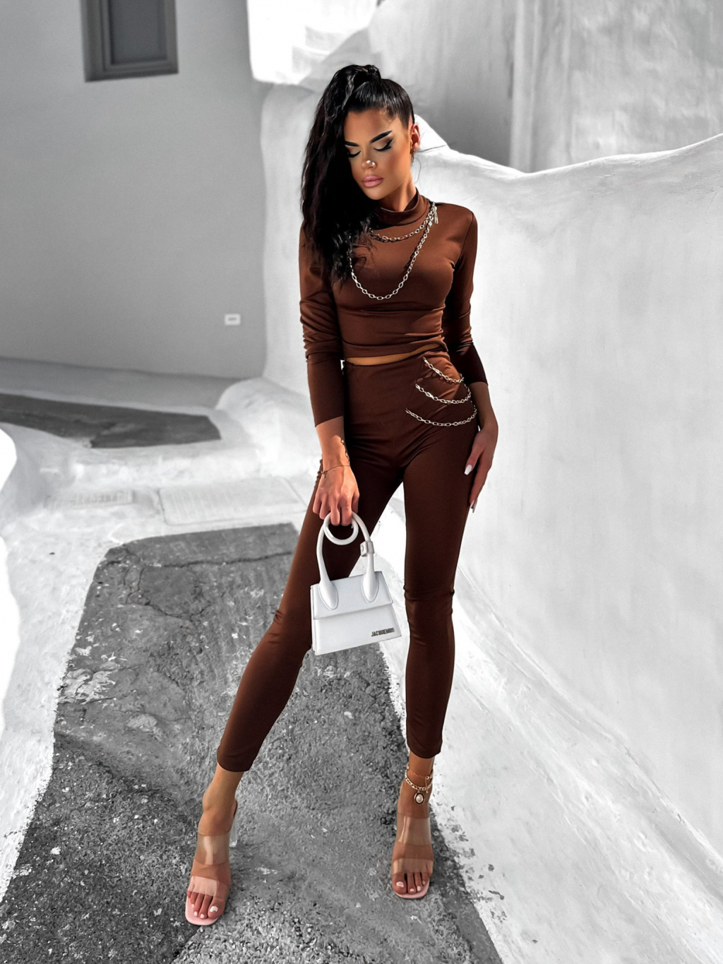 Tmavě hnědý elegantní dvoudílný komplet LOYLTE se zlatým detailem