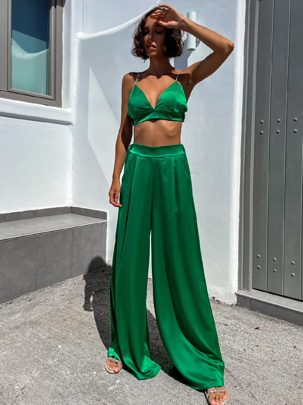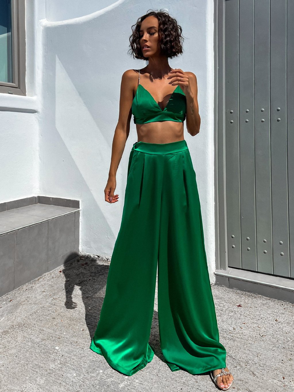 Zelený elegantní dvoudílný komplet SUCULENT s třpytivými kamínky