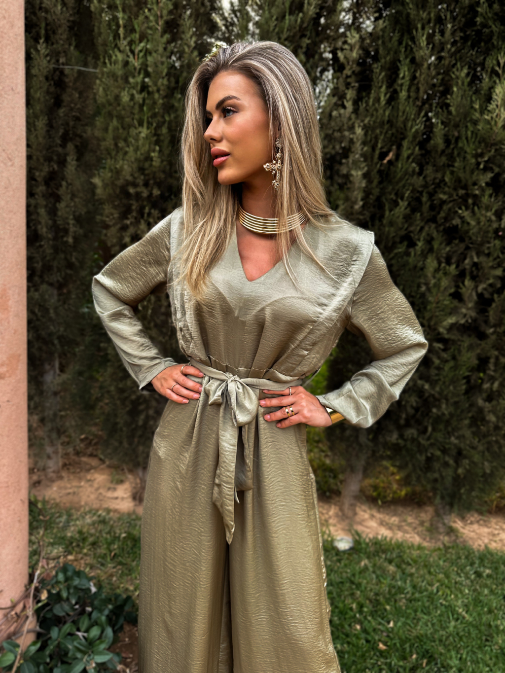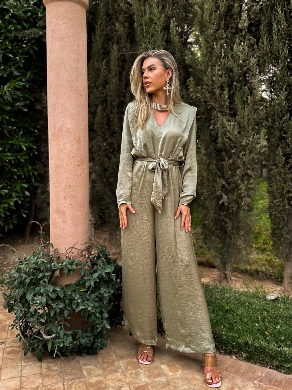 Zelený široký dlouhý elegantní overal CEDRICEL