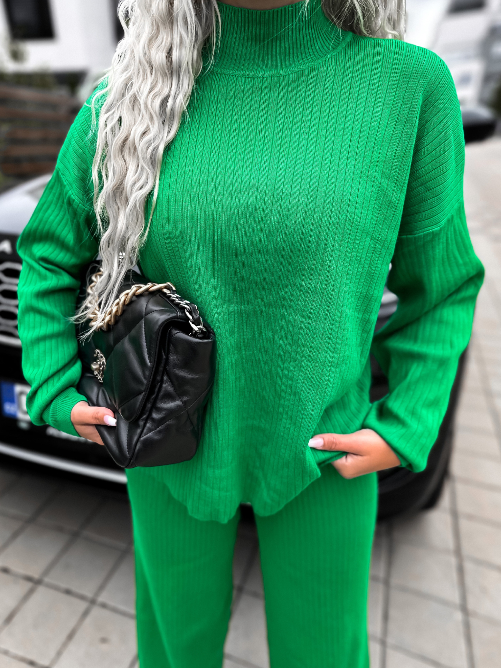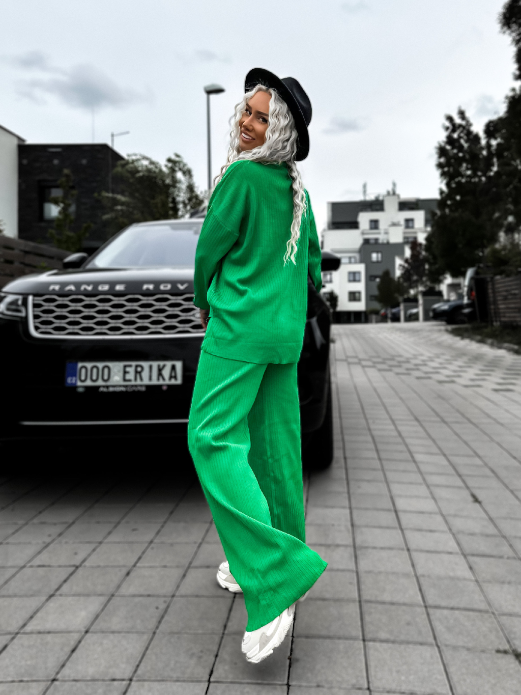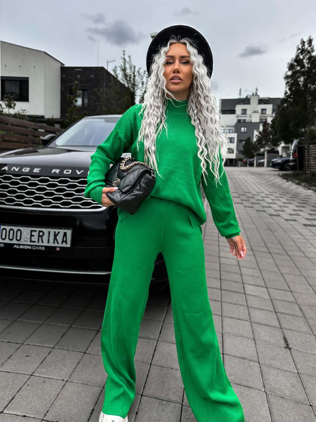 Zelený žebrovaný dvoudílný komplet LELIEN s dlouhým rukávem