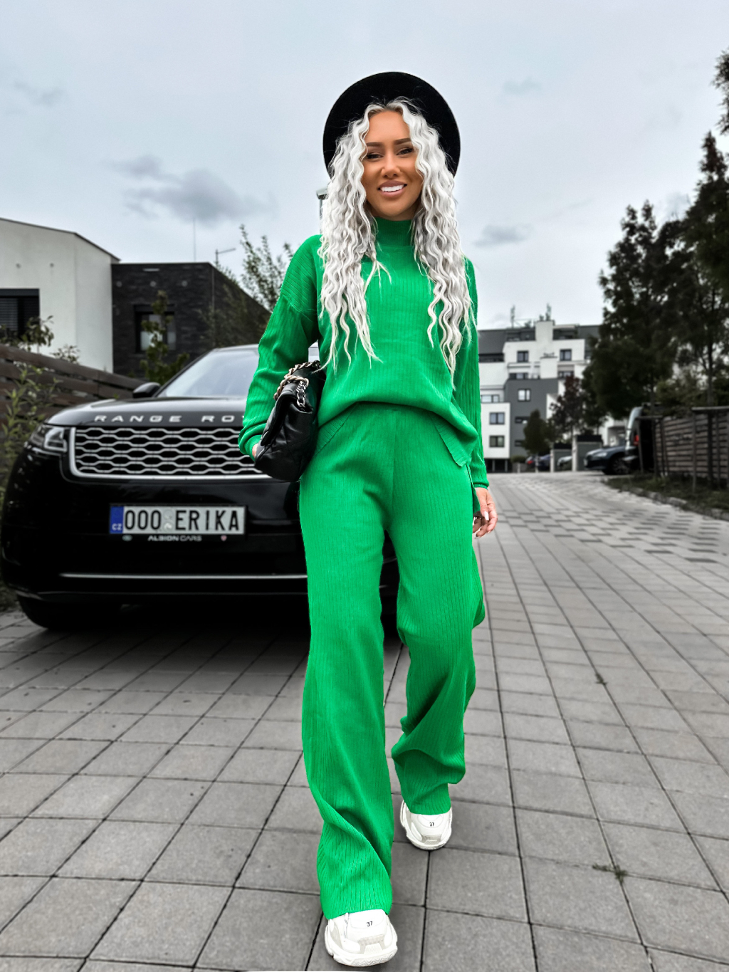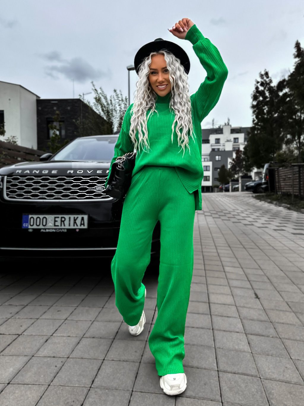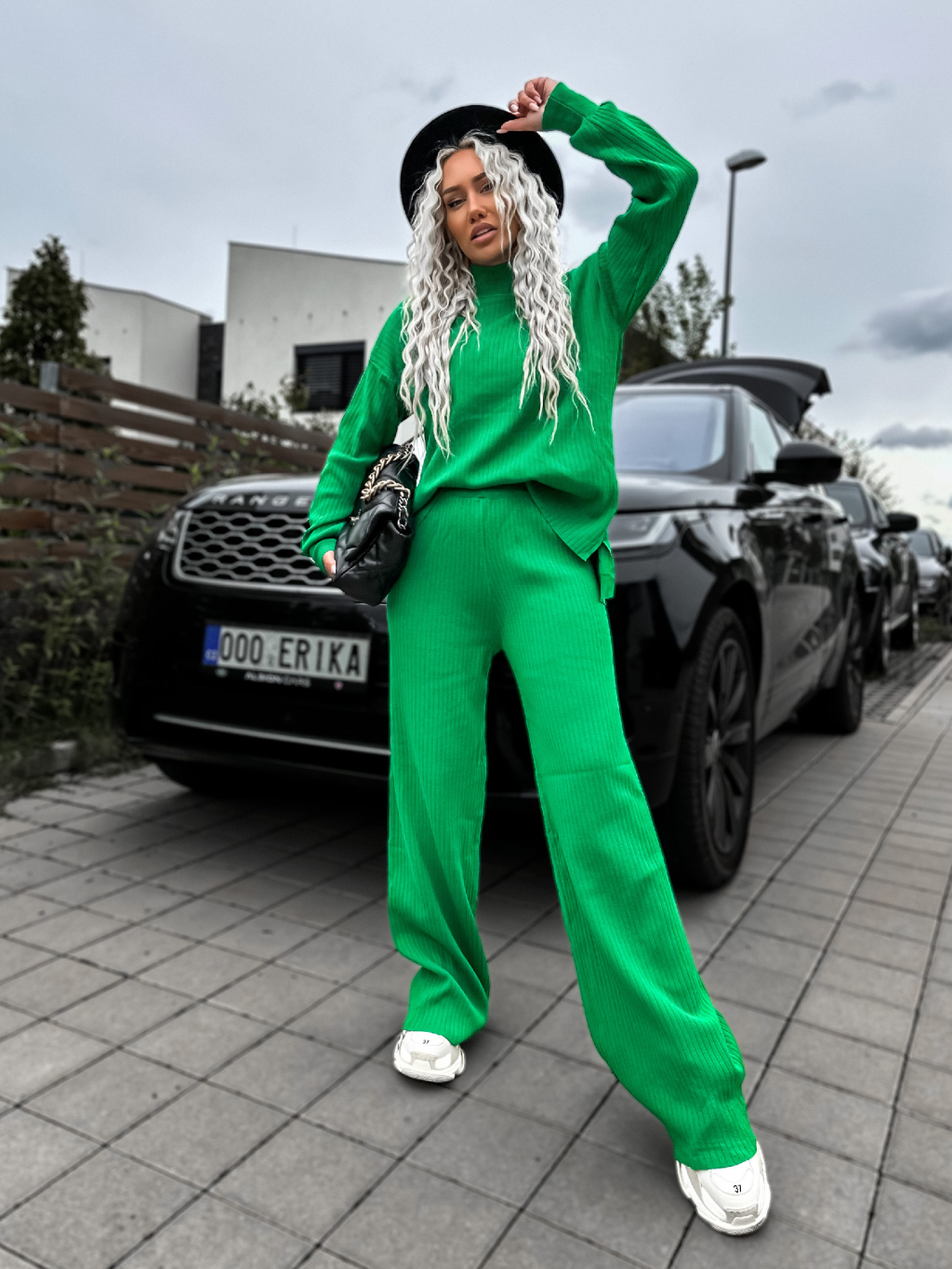 Zelený žebrovaný dvoudílný komplet LELIEN s dlouhým rukávem