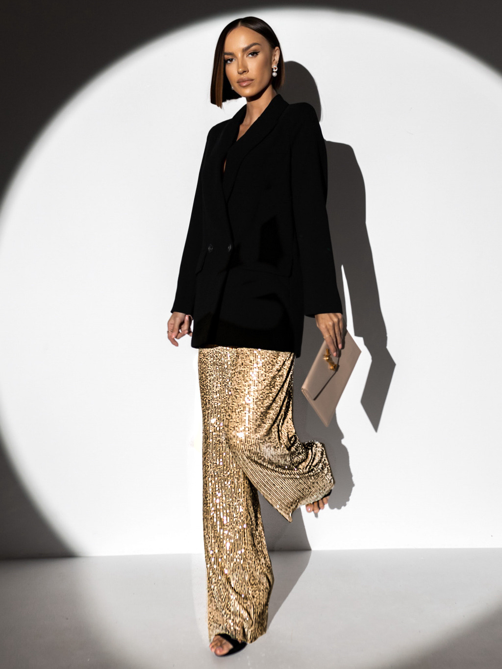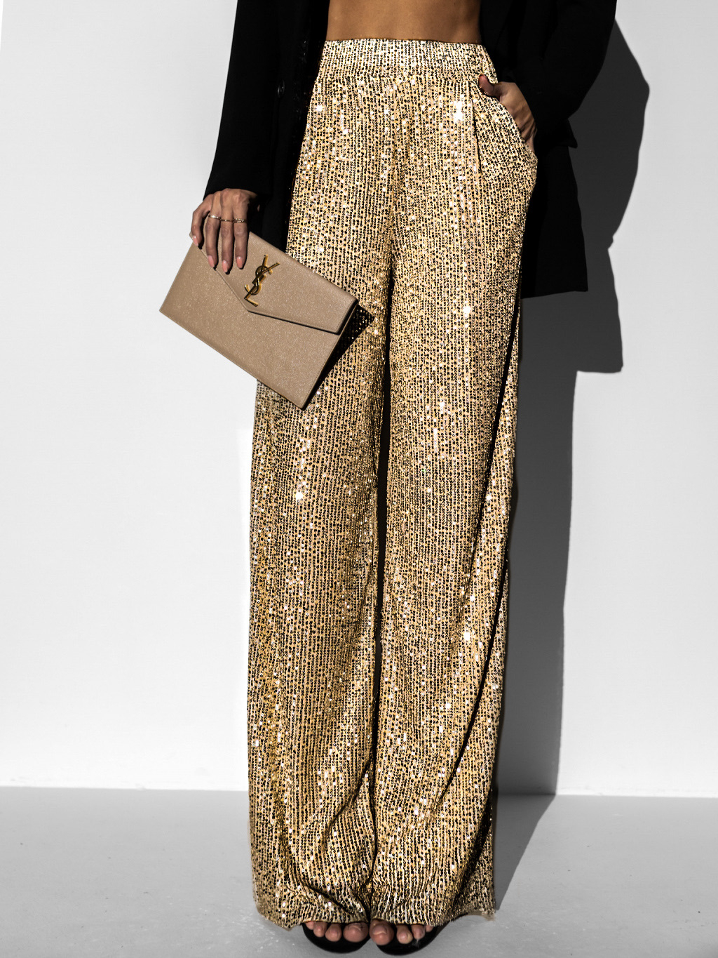 Zlaté flitrové široké kalhoty HEKATE
