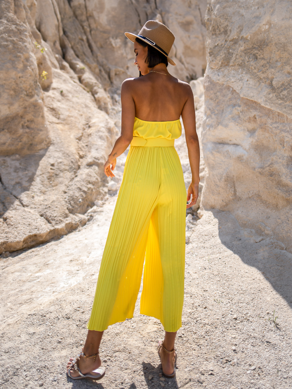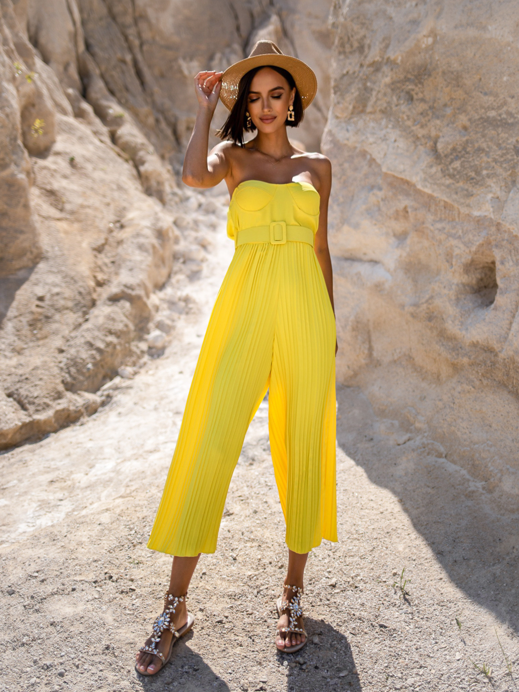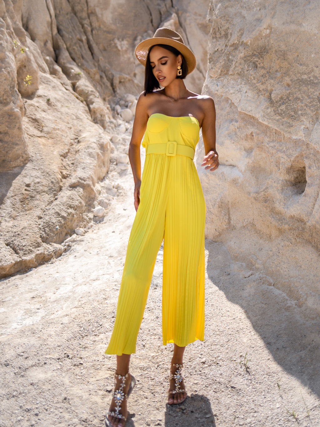 Žlutý plisovaný overal CYRNE s páskem