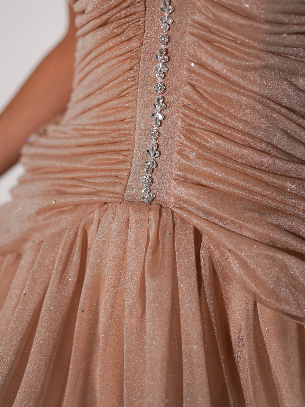 Béžové krátké koktejlové šaty SVEGEL s řasením