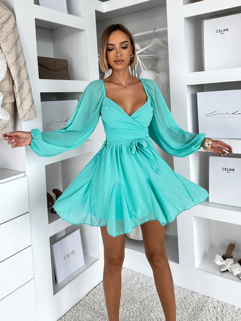 Tyrkysové koktejlové vzdušné šaty ETHAN s vázáním