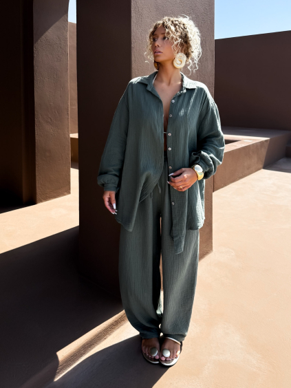 Khaki kalhotový mušelínový komplet THEIA s košilí