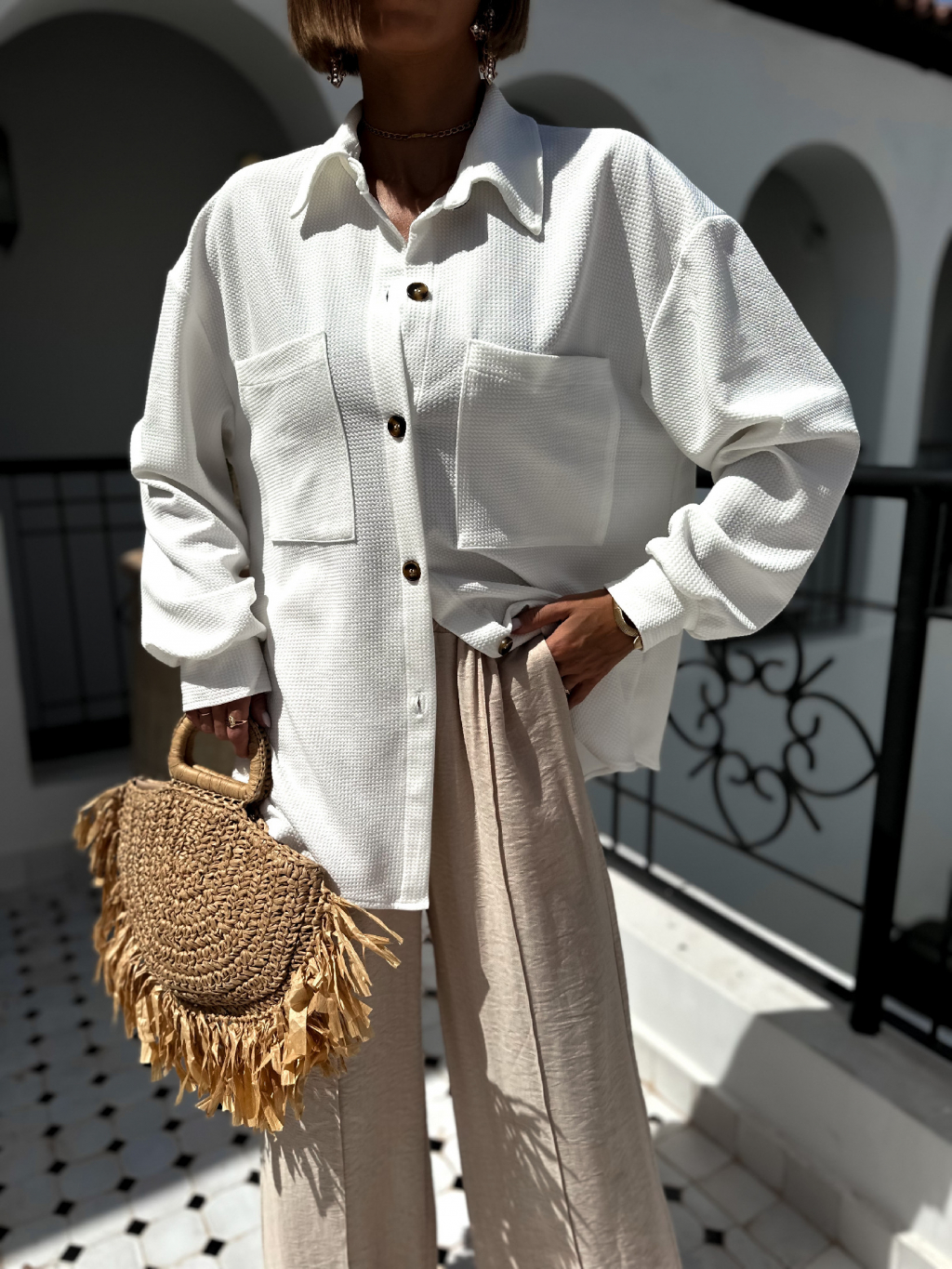 Bílá oversize košile LAILAPS dlouhým rukávem
