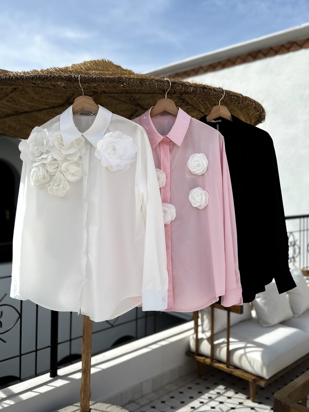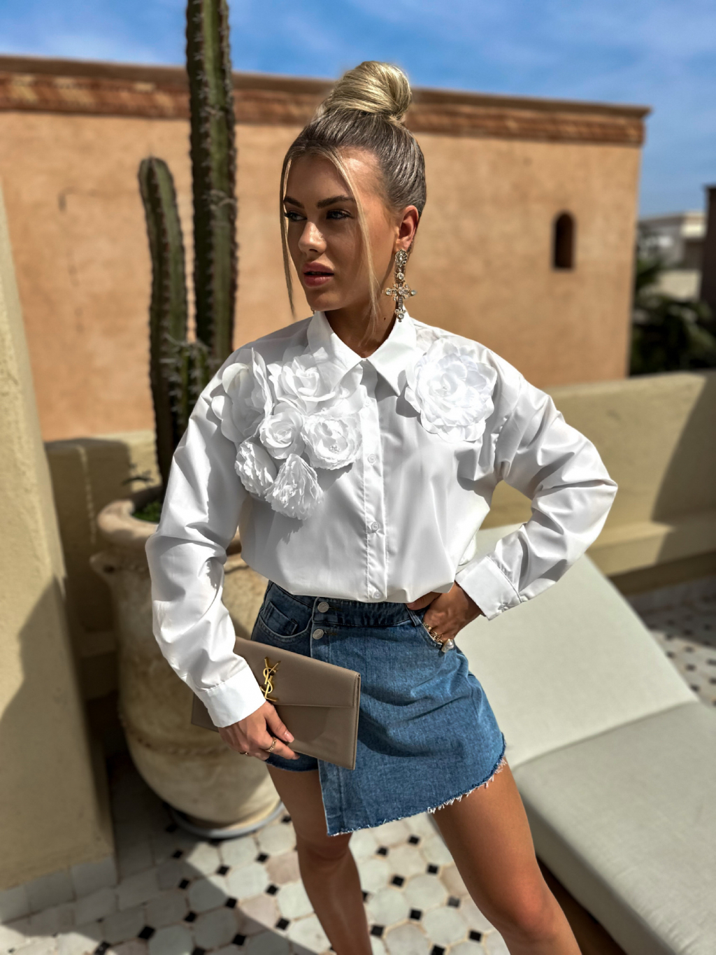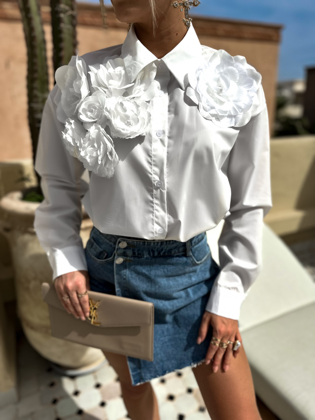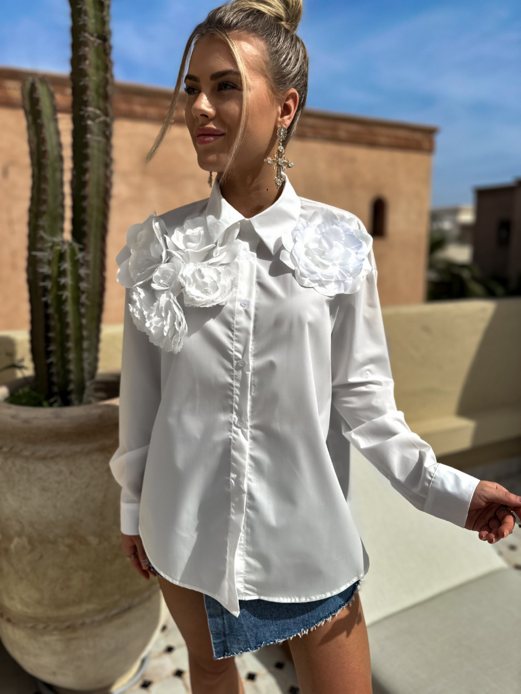Bílá stylová košile s 3D květinami XATEL
