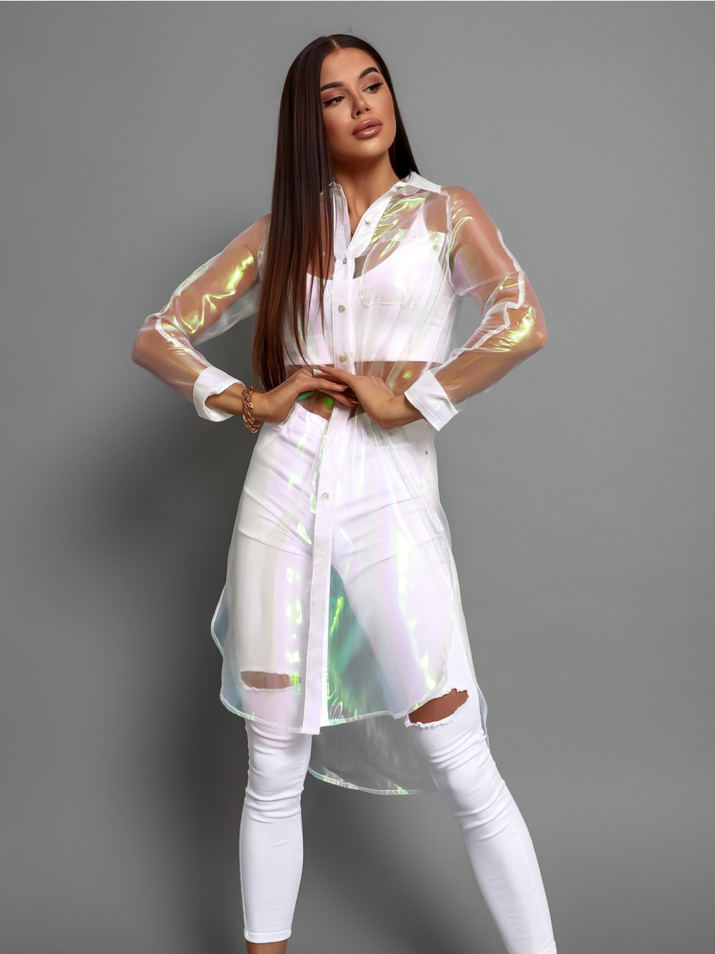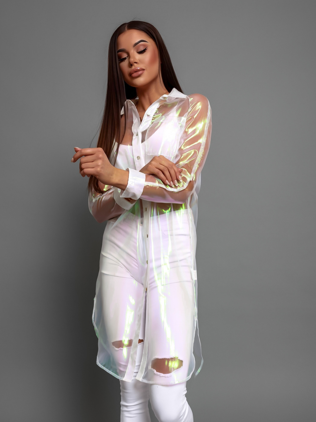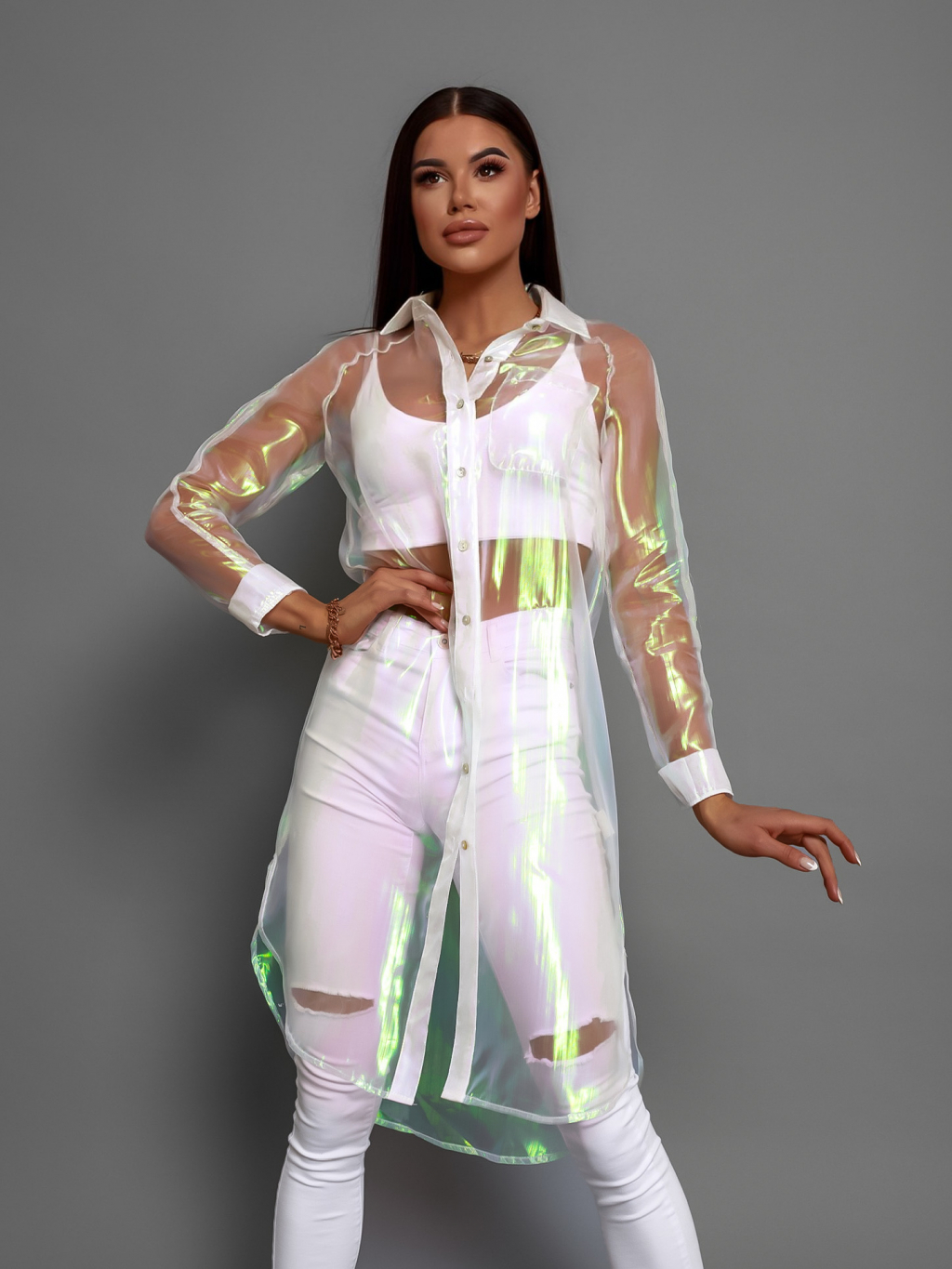 Bílá transparentní dlouhá košile INVY