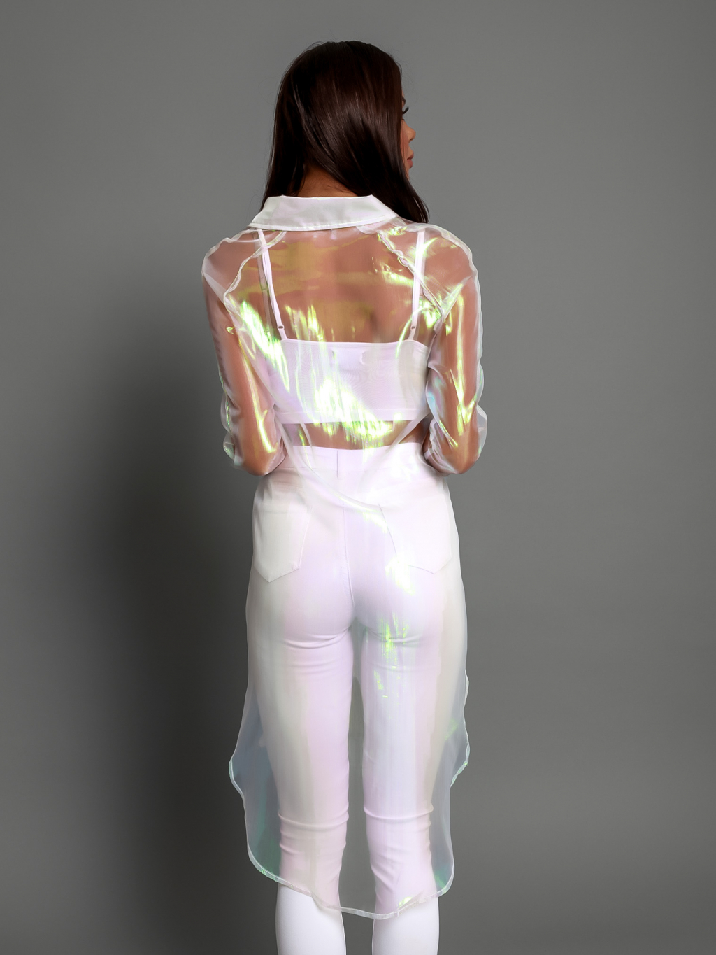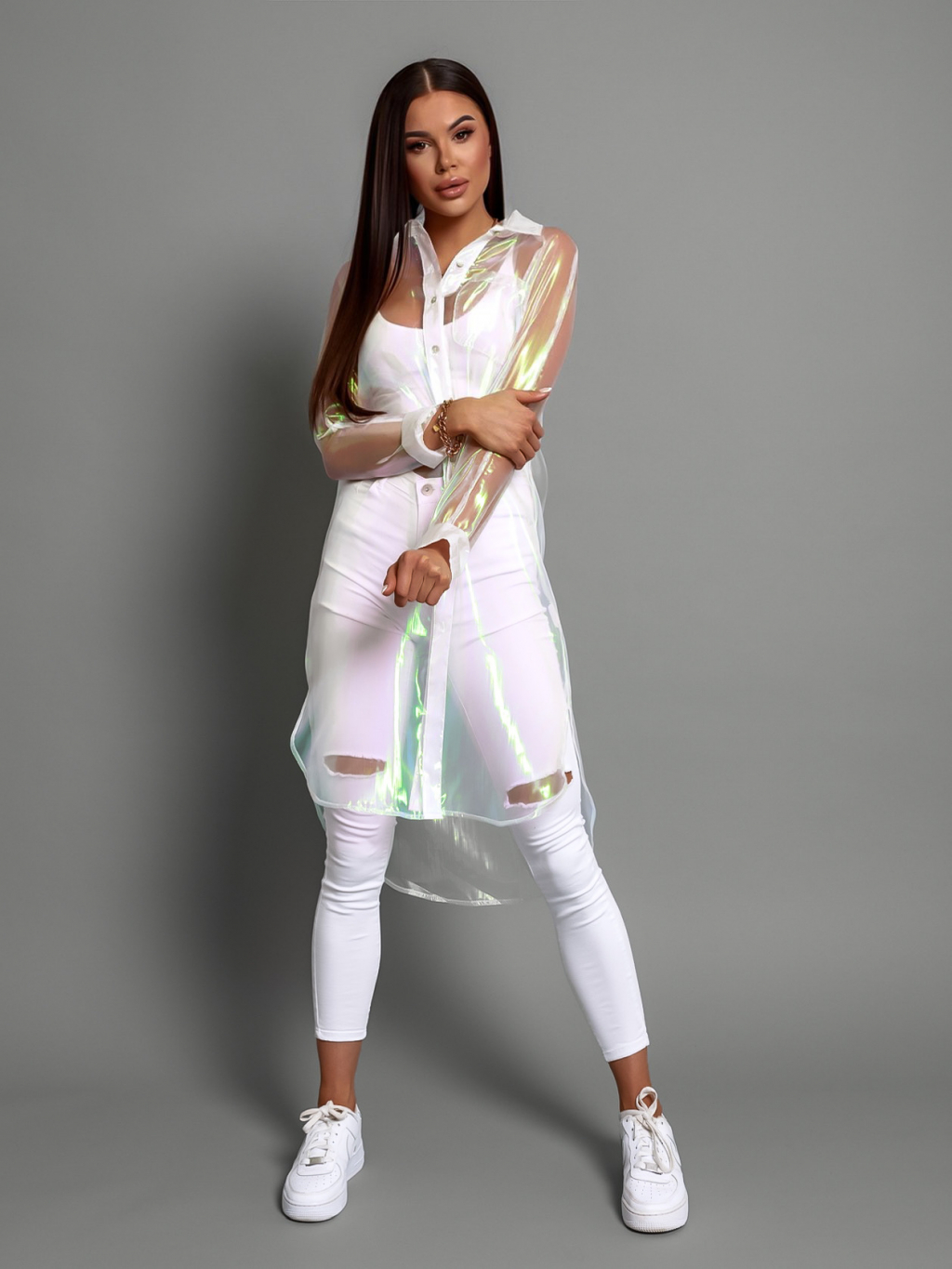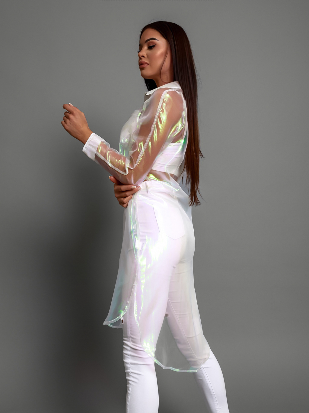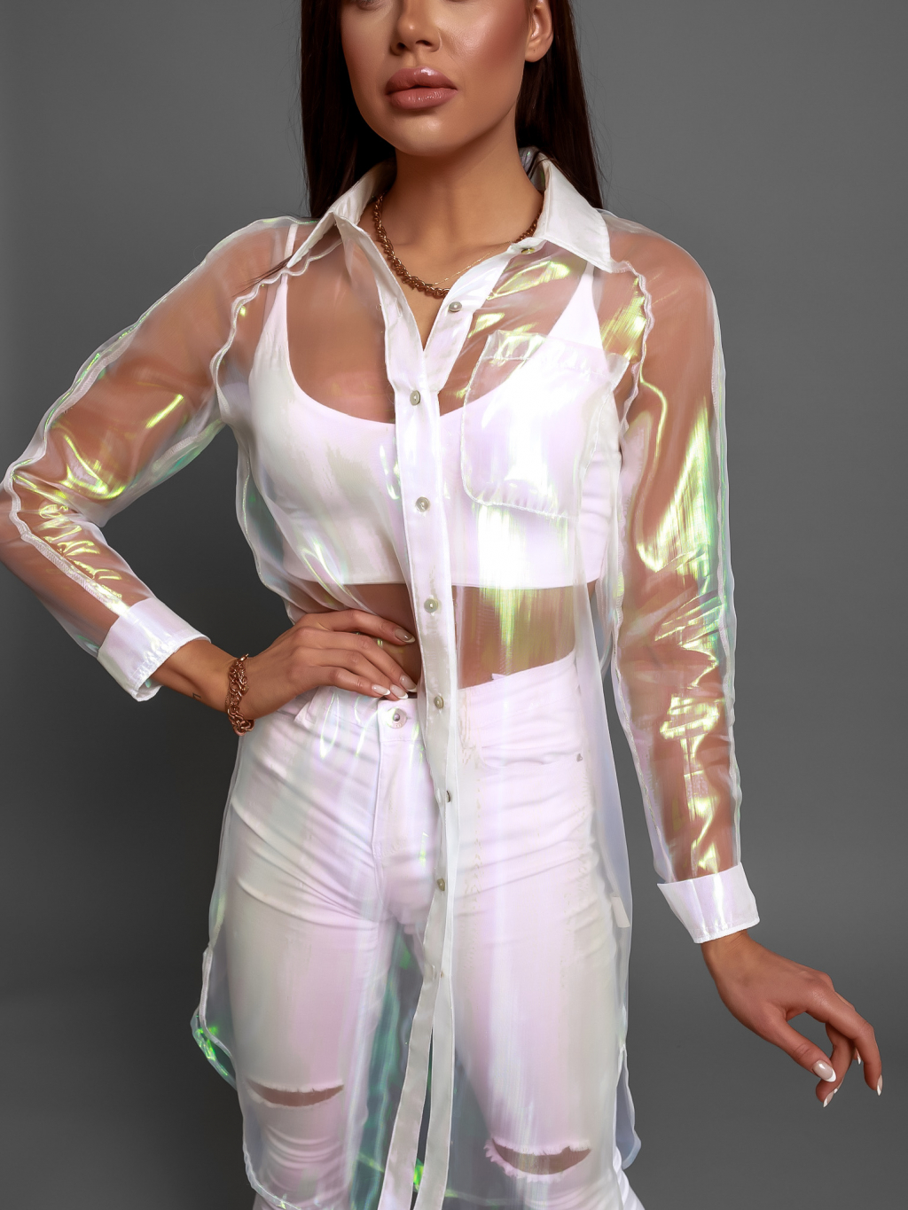 Bílá transparentní dlouhá košile INVY