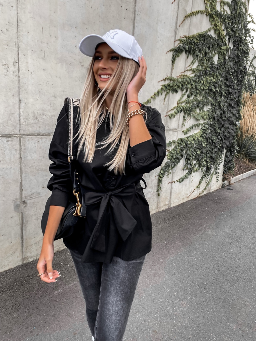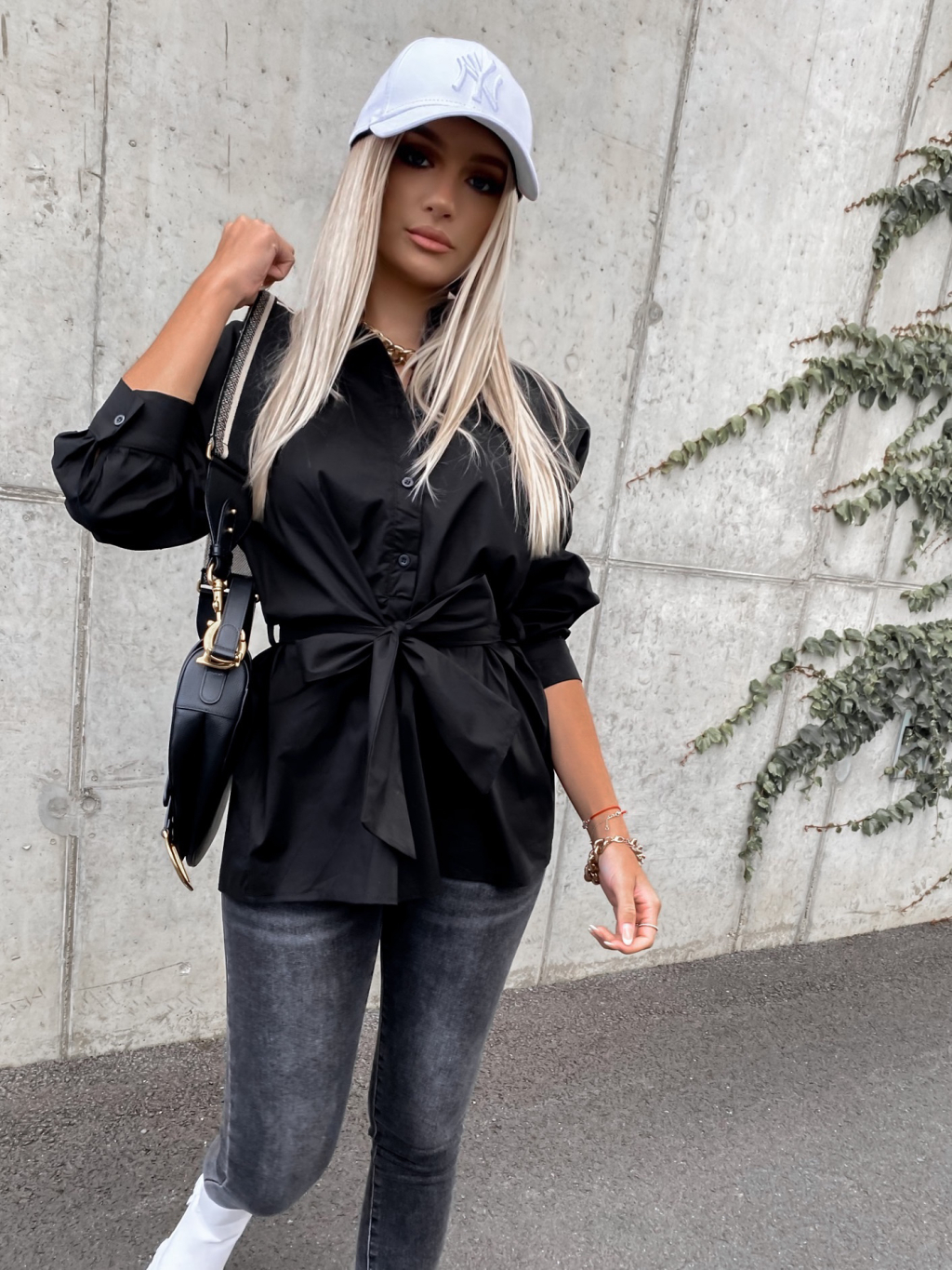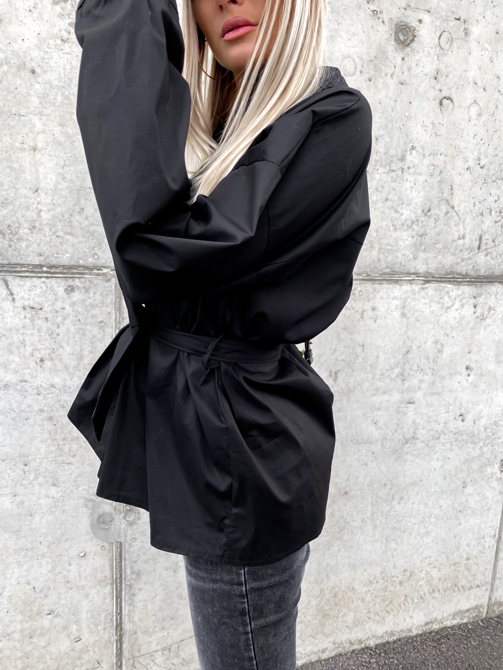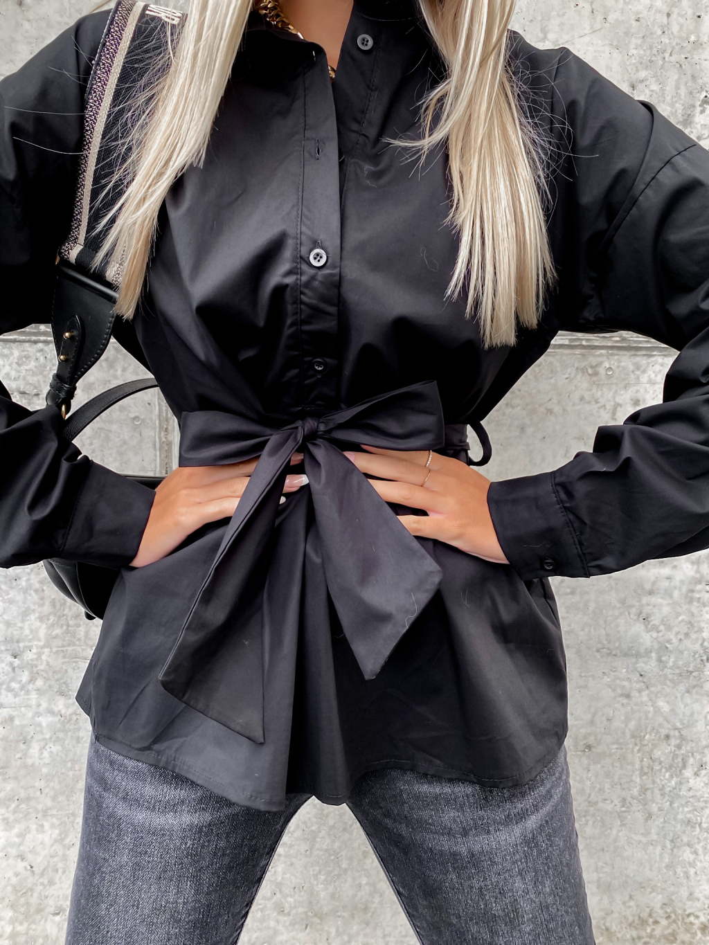 Černá bavlněná košile JUST s vázáním v pase