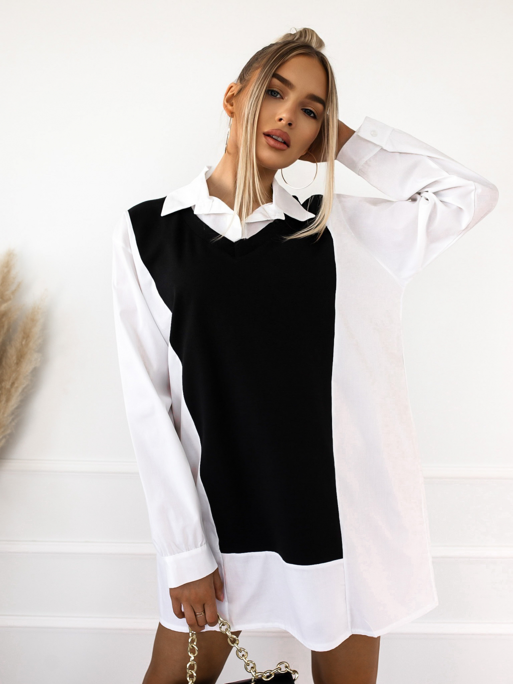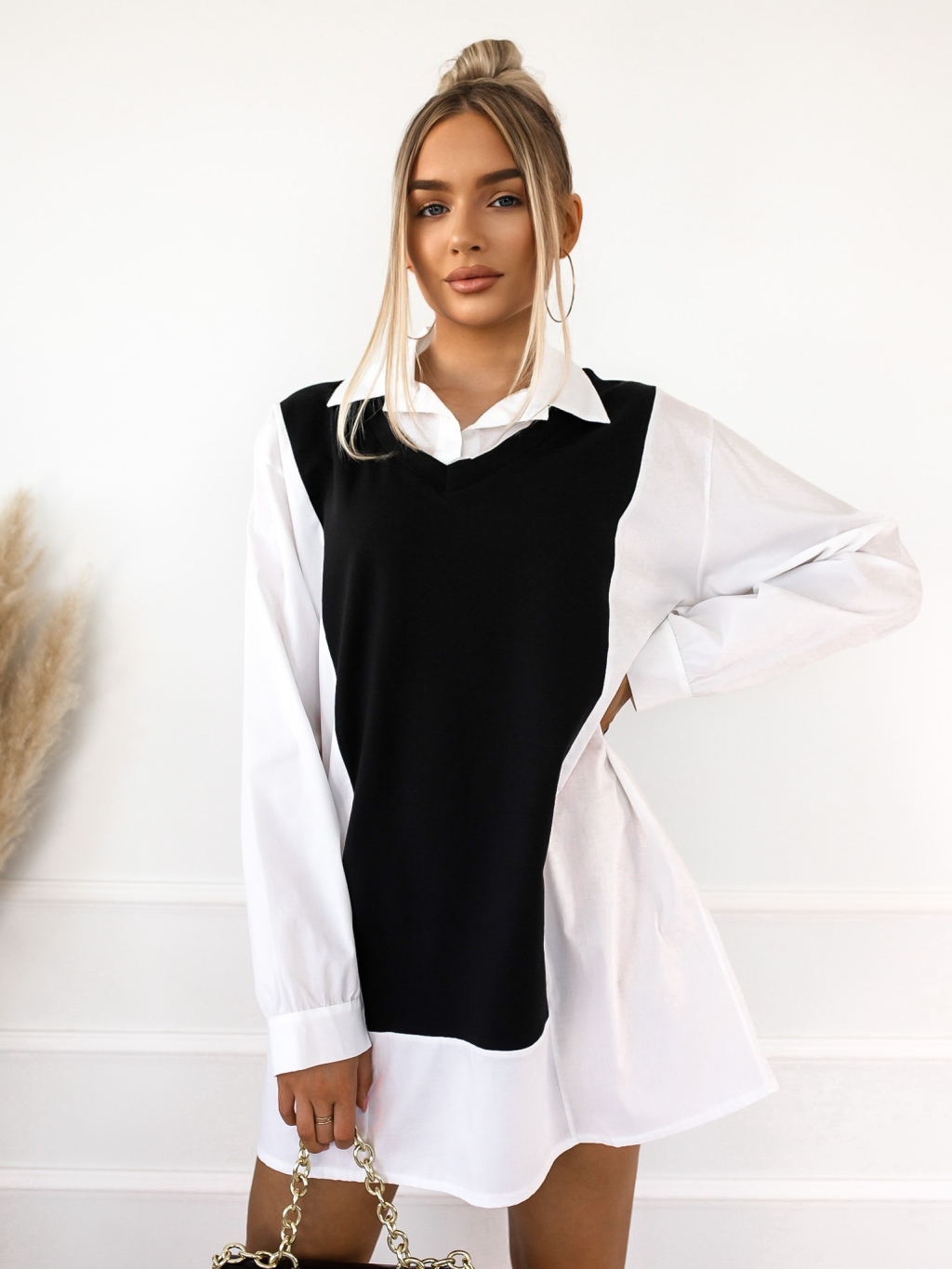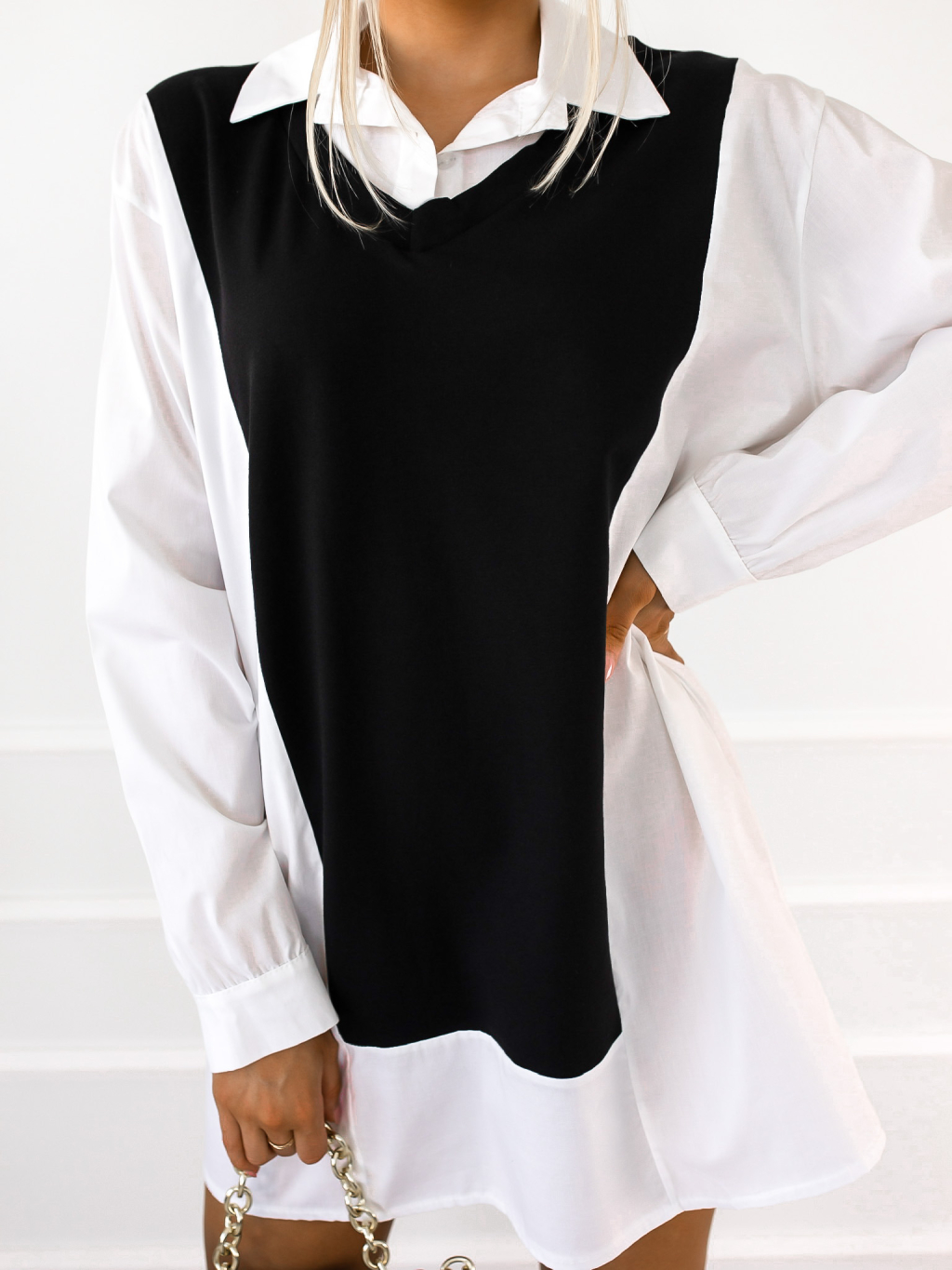 Černobílá halenka BRING s límečkem