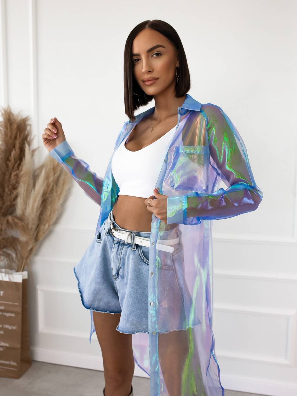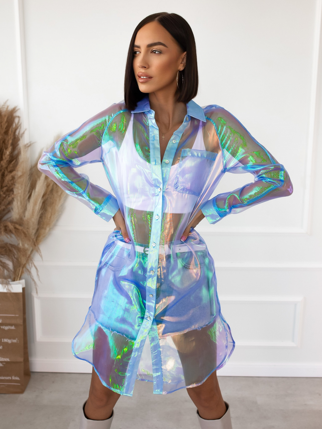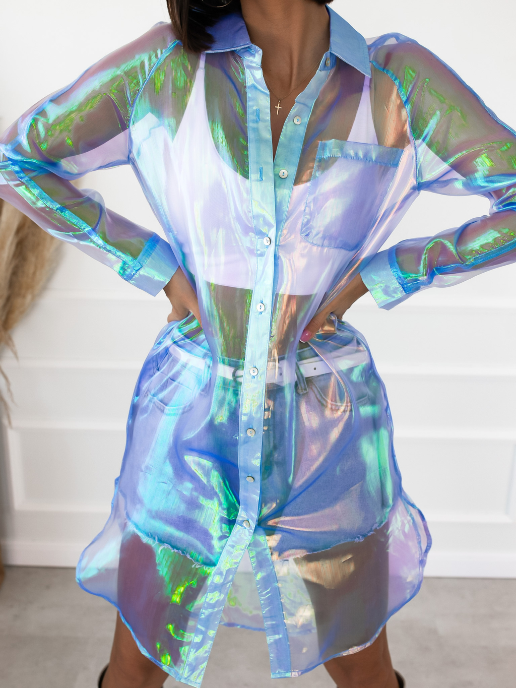 Modrá transparentní dlouhá košile INVY
