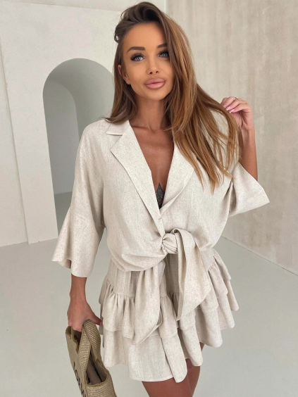 Béžový 100% lněný komplet FEMFUEL se sukní