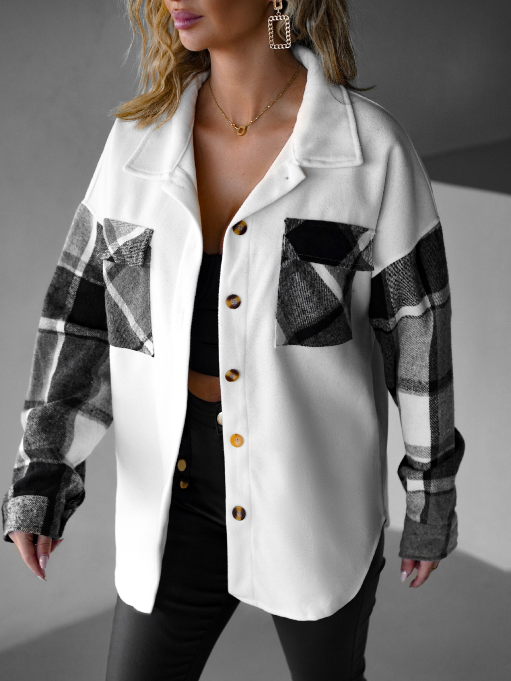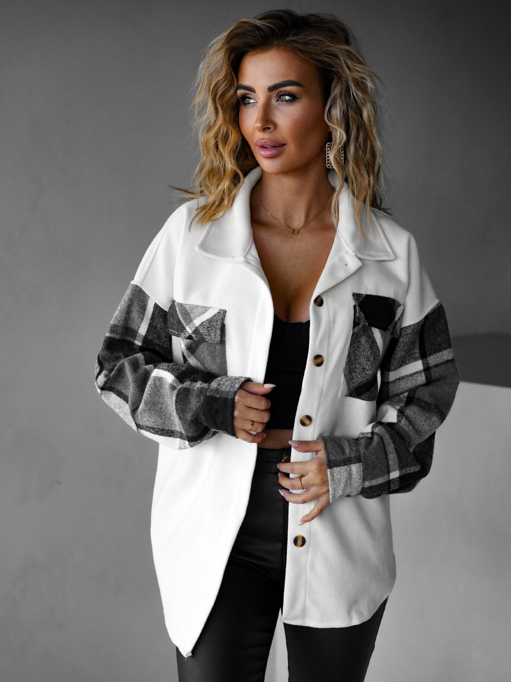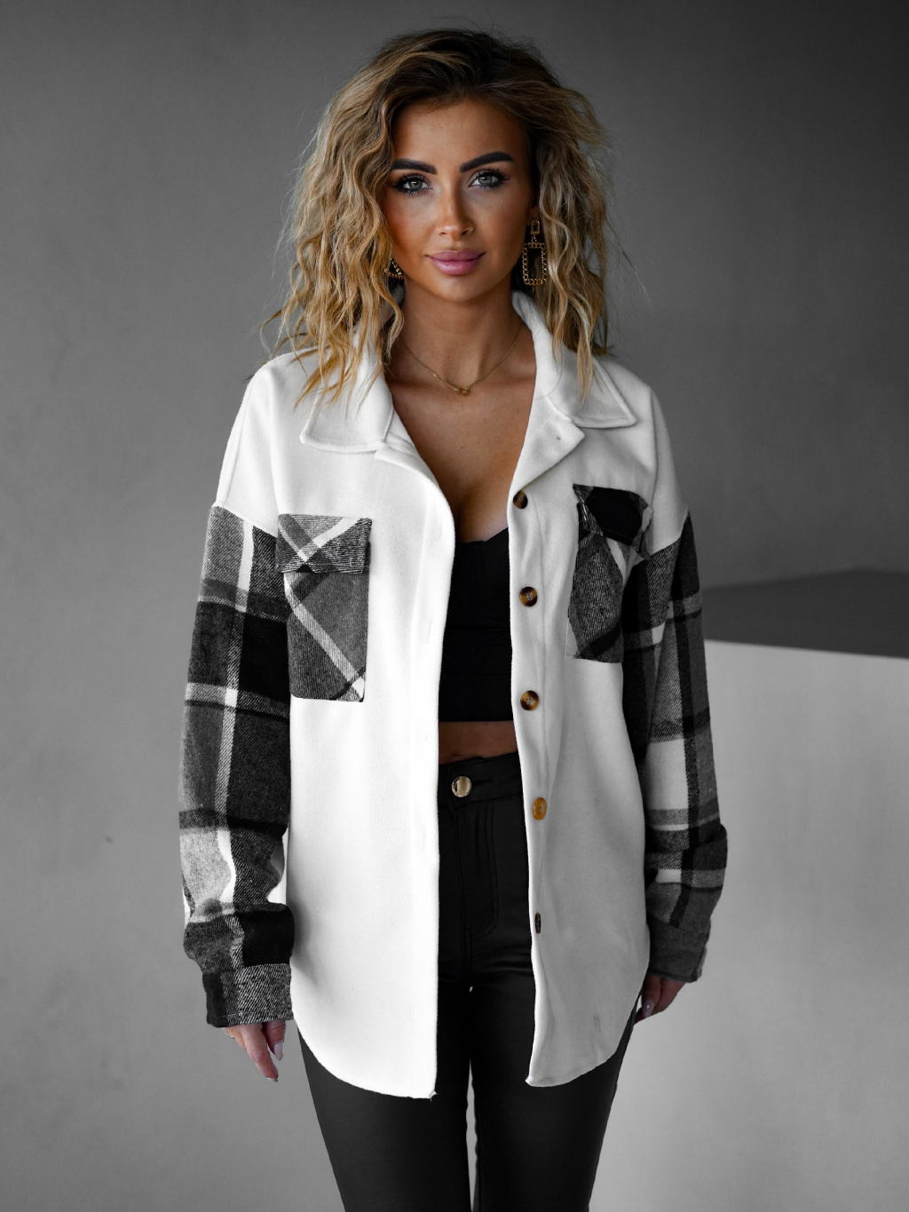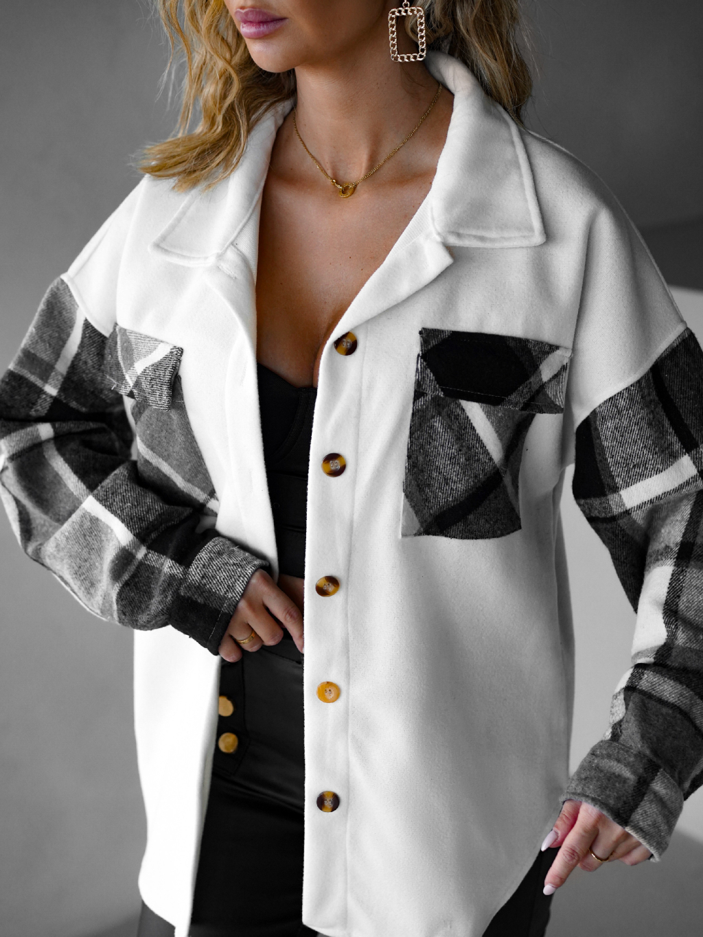 Krémovošedá kostkovaná košile ELZBIETA
