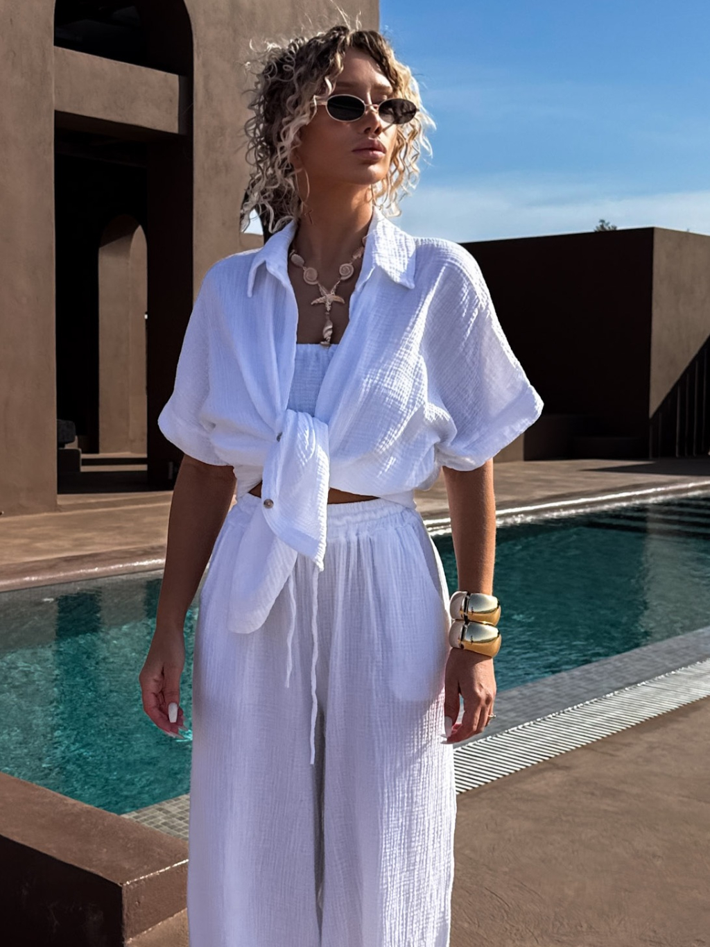 Bílá mušelínová košile LOUSKA s krátkým rukávem