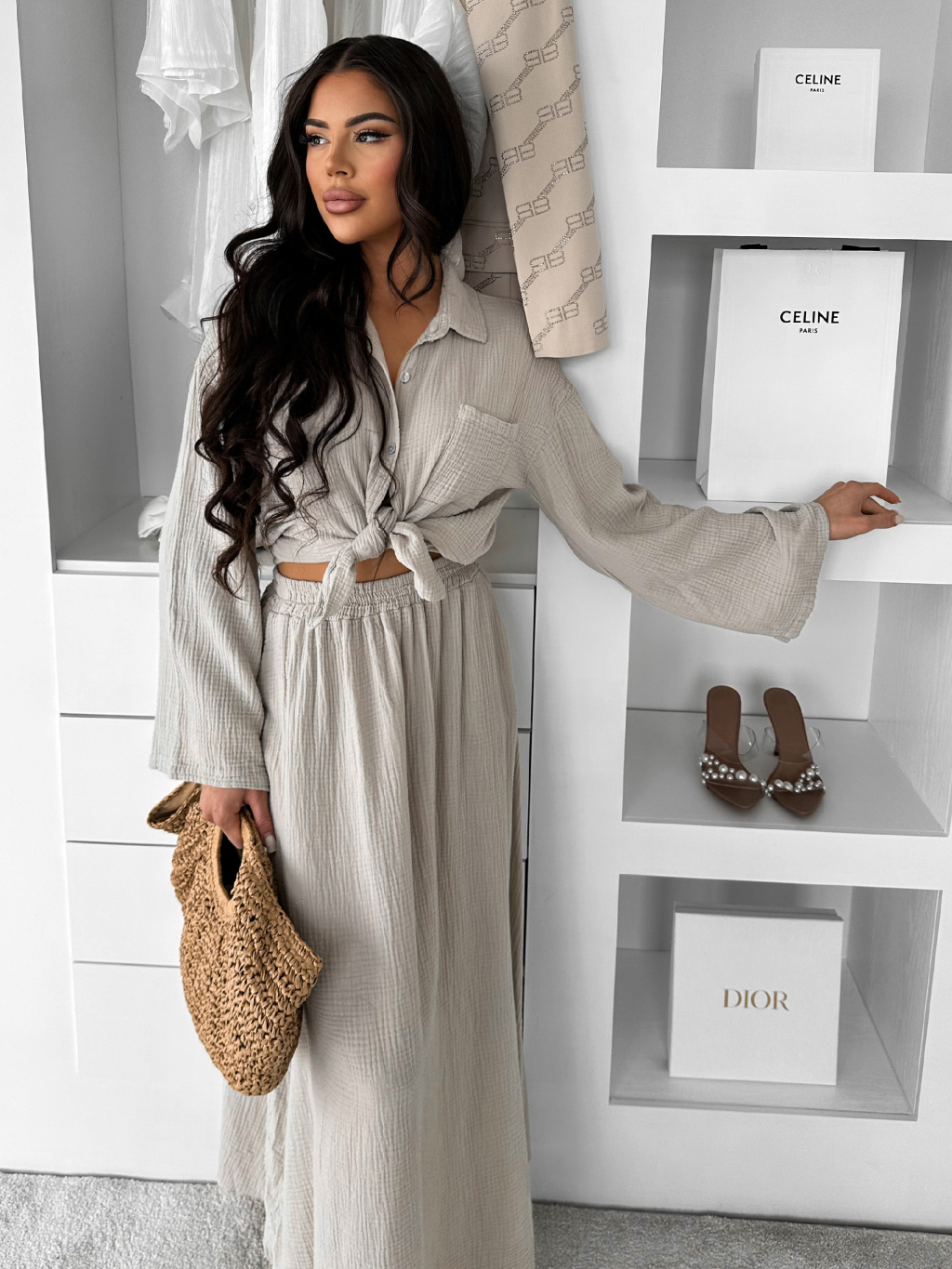 Béžový mušelínový košilový komplet BELIANE se sukní