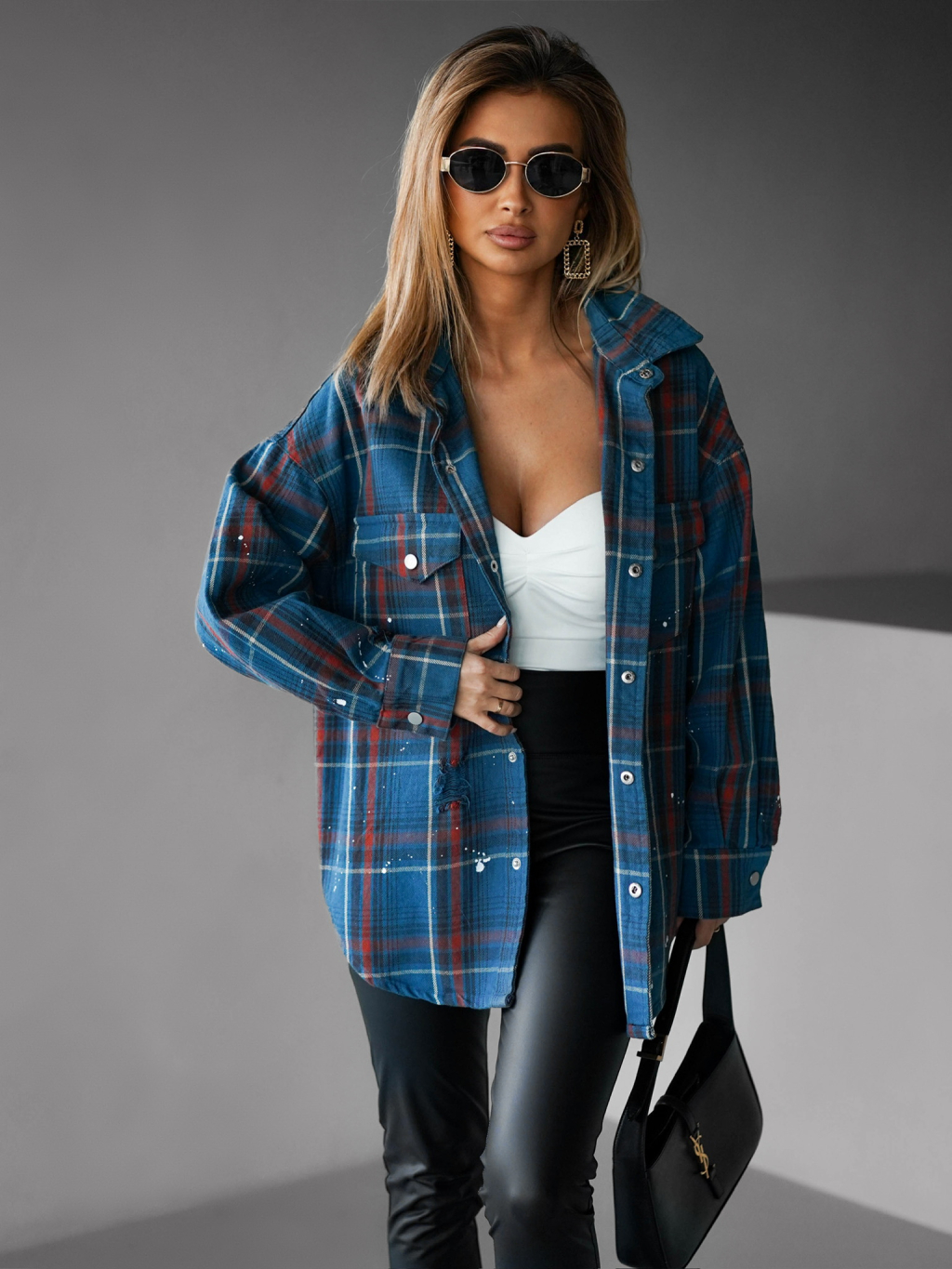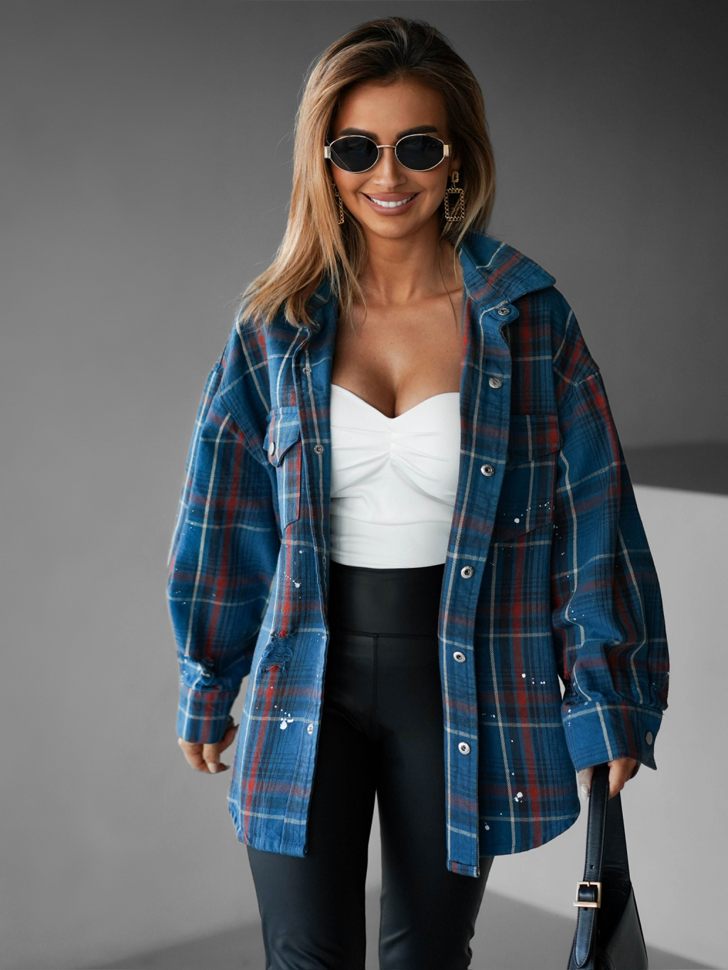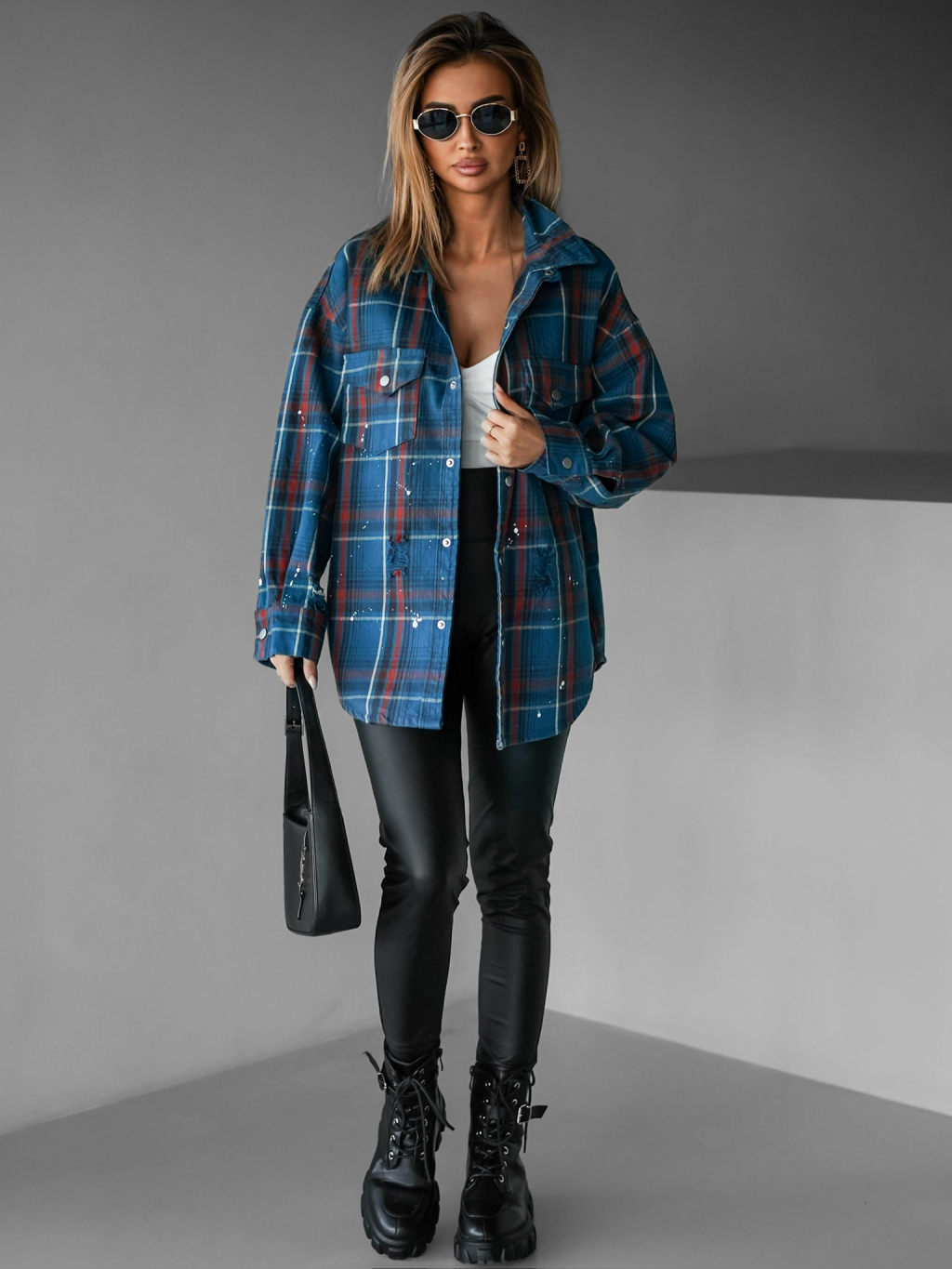 Modrá kostkovaná oversize košile LONELA