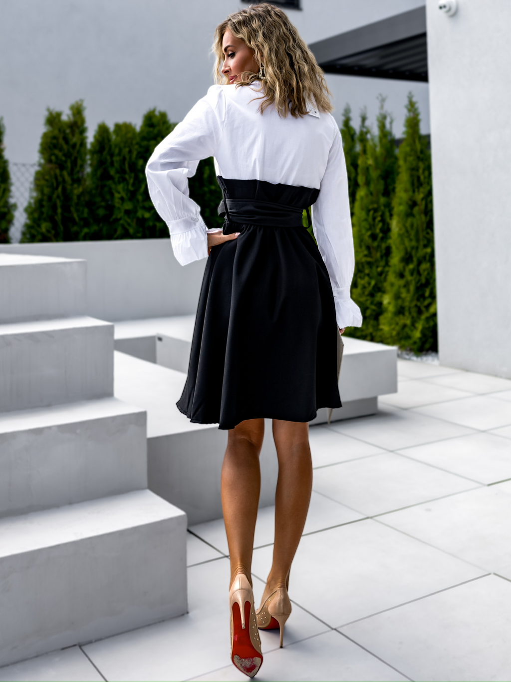 Bíločerné krátké košilové šaty AUKOL na zavazování