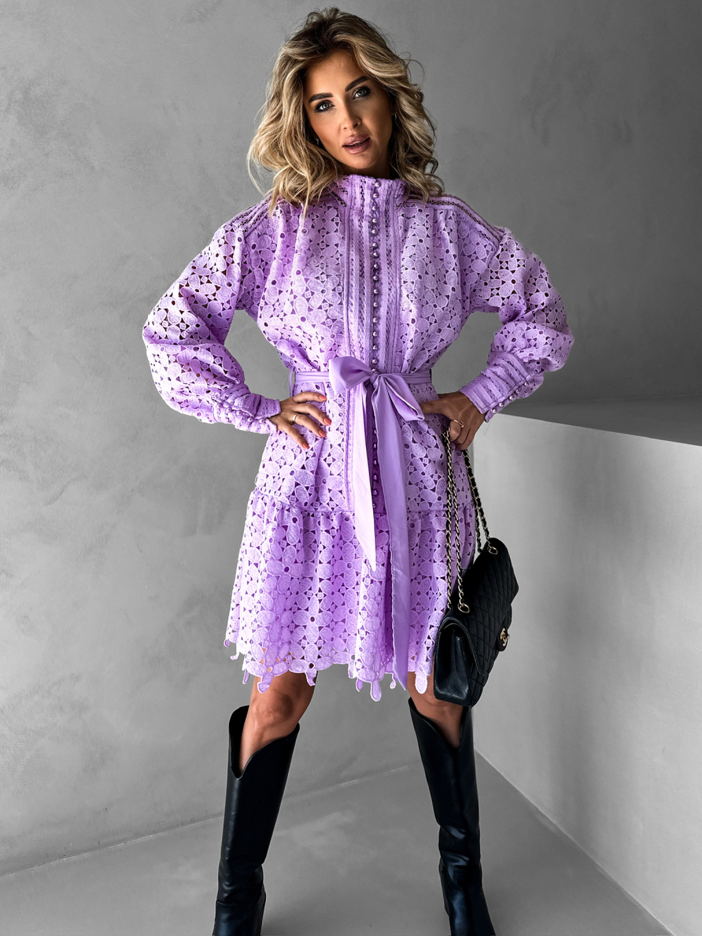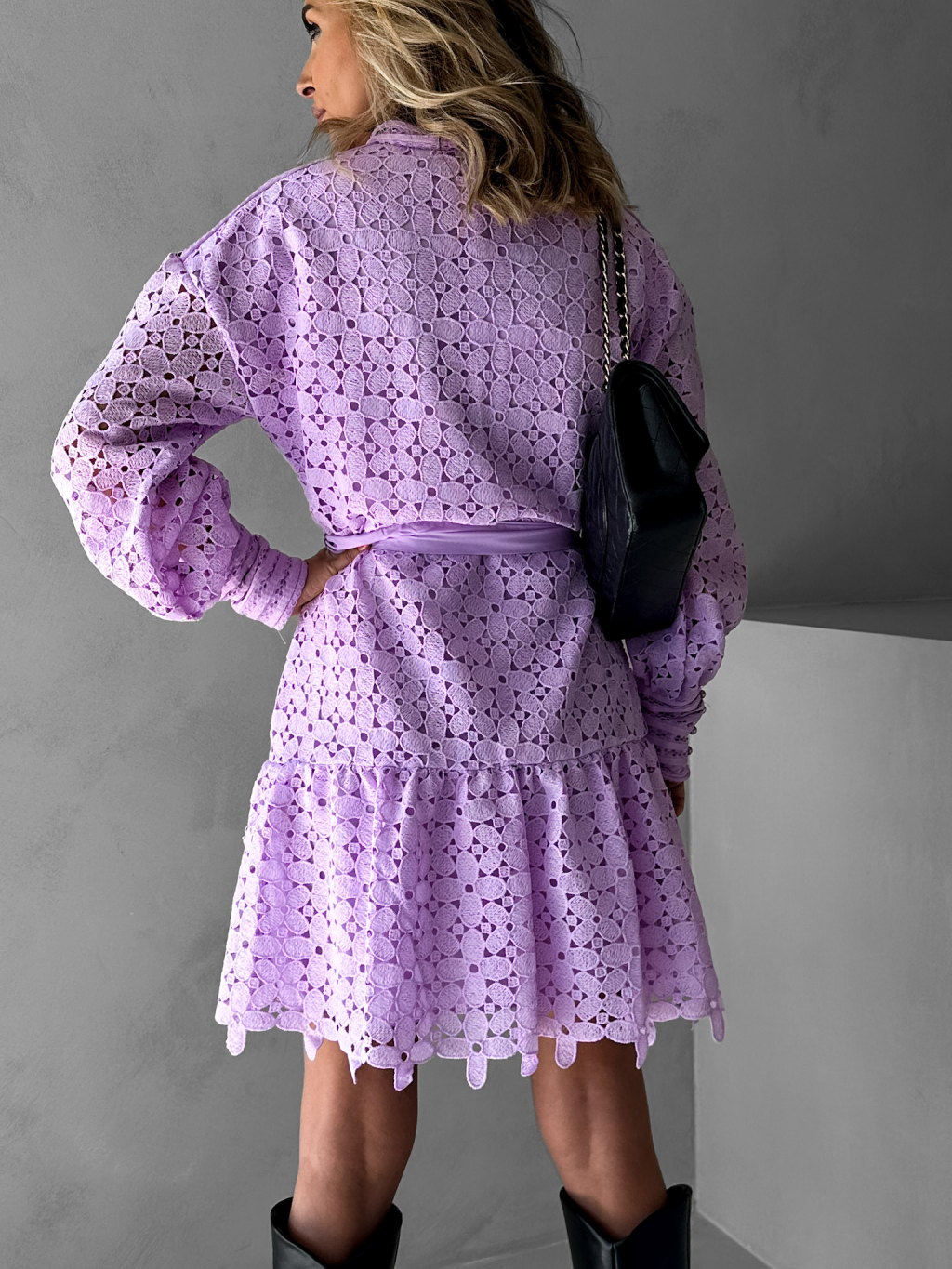 Fialové košilové šaty VERDENLY s dlouhým rukávem