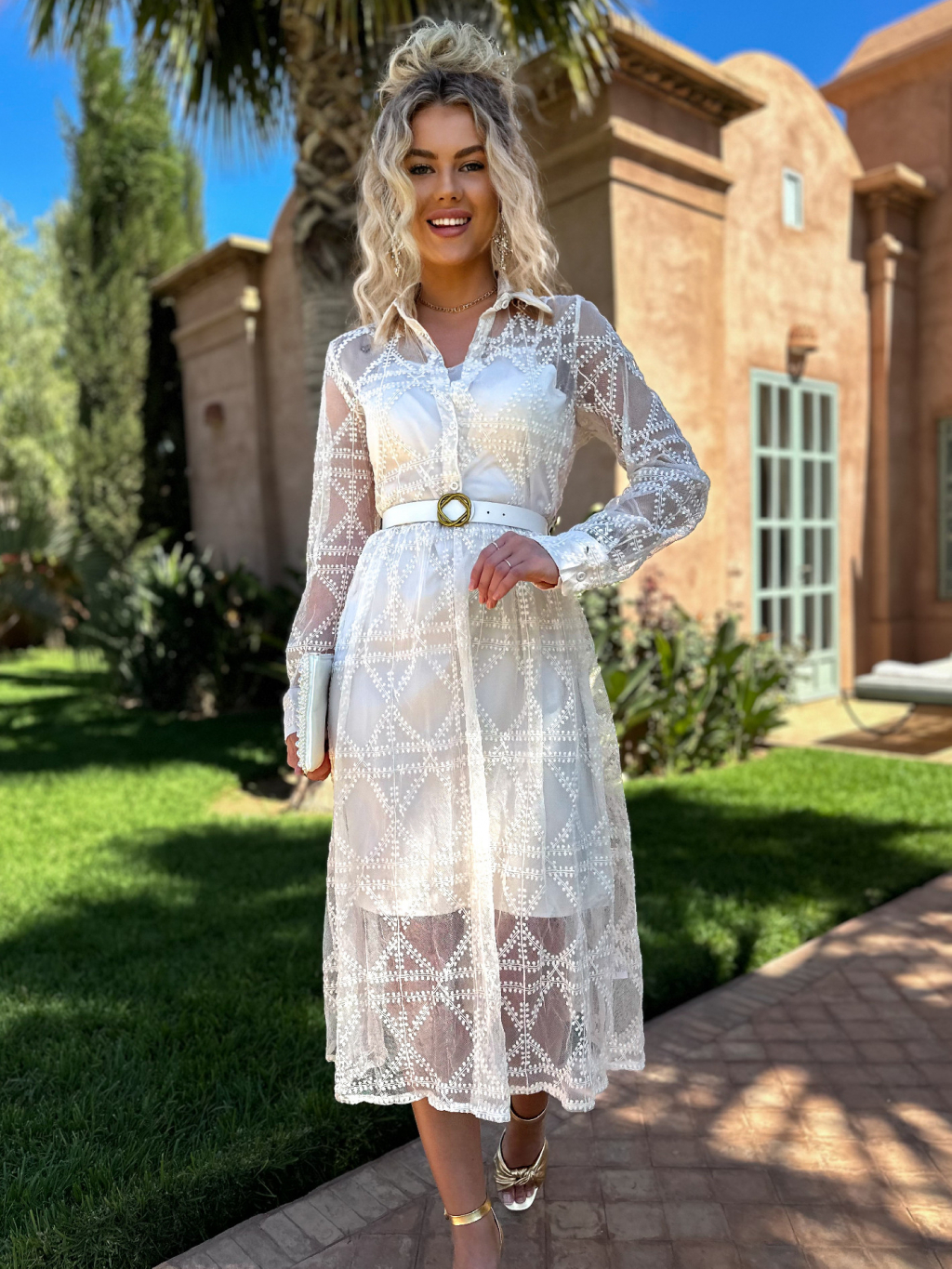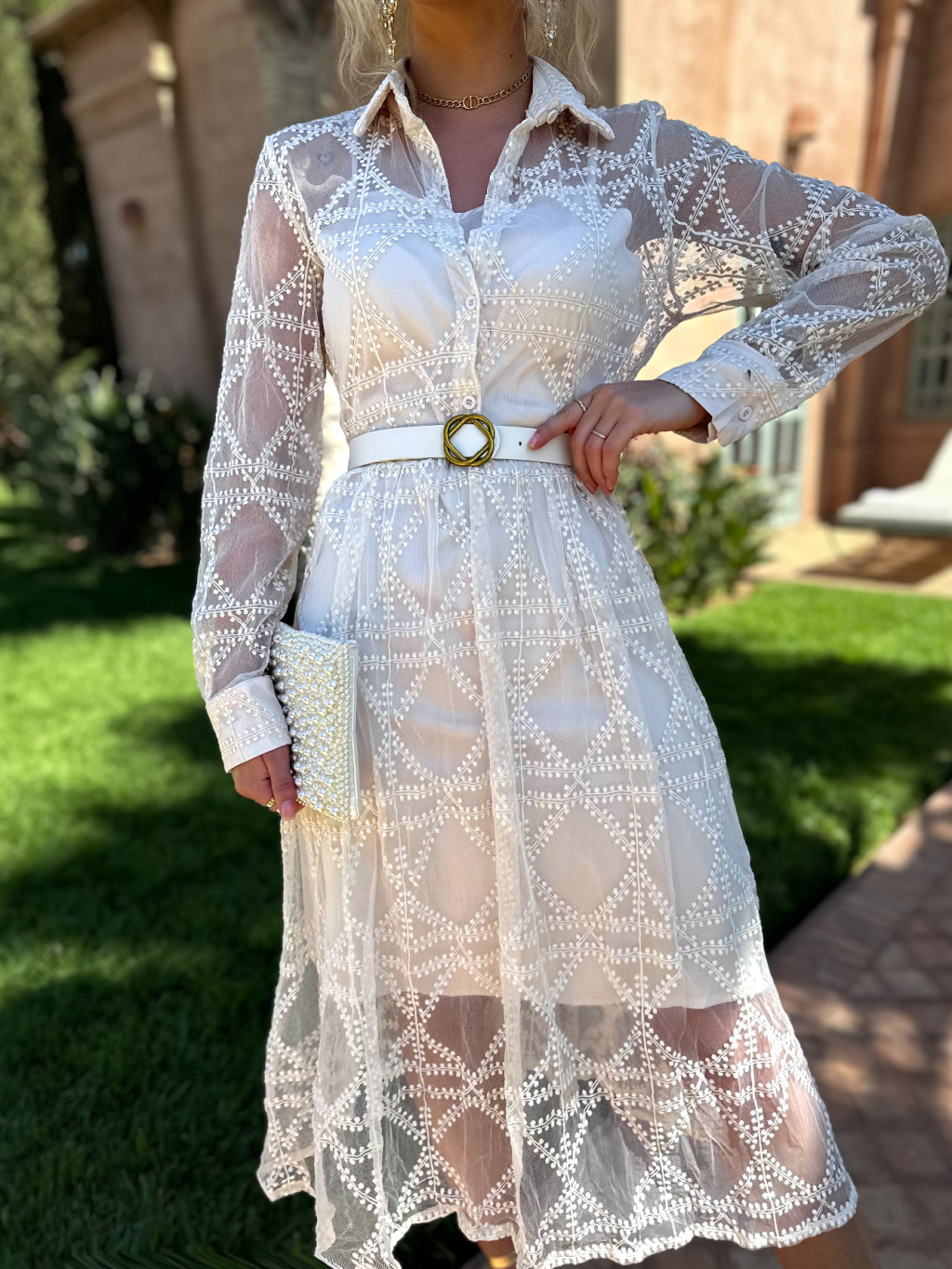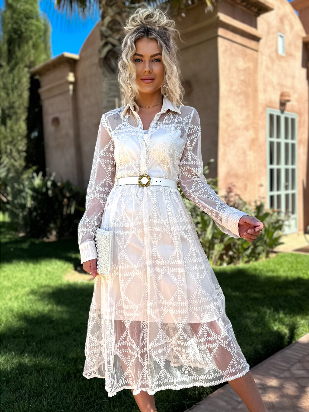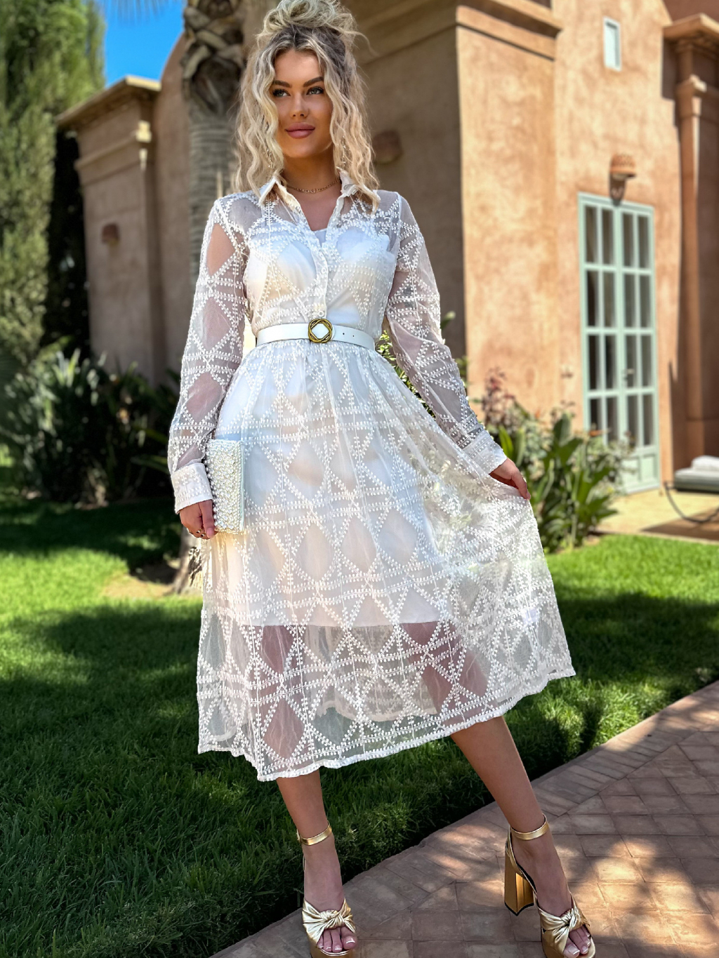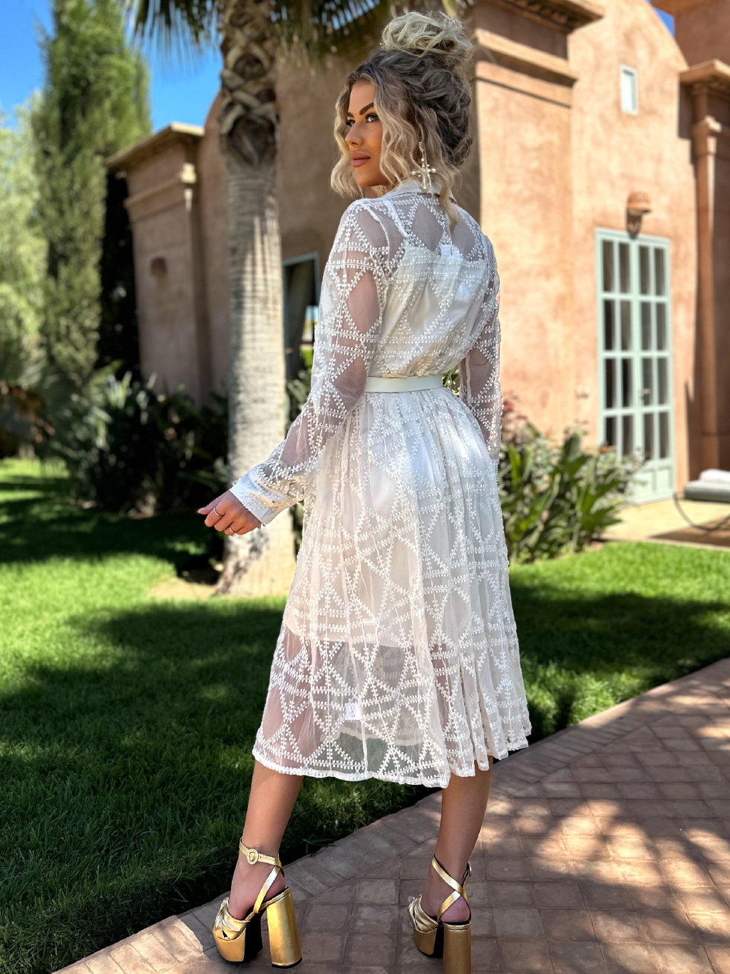 Krémové áčkové elegantní šaty s páskem OTUZ