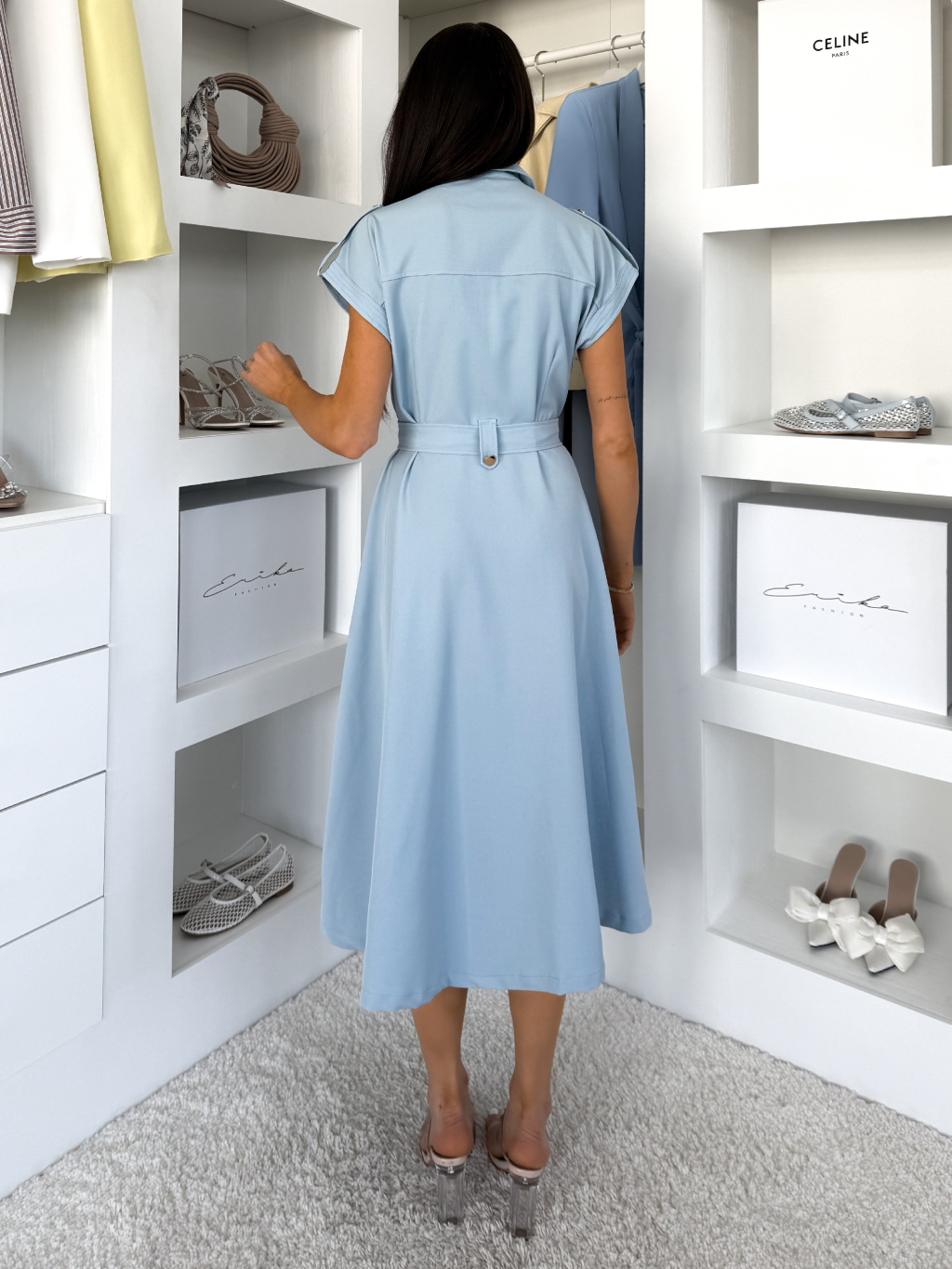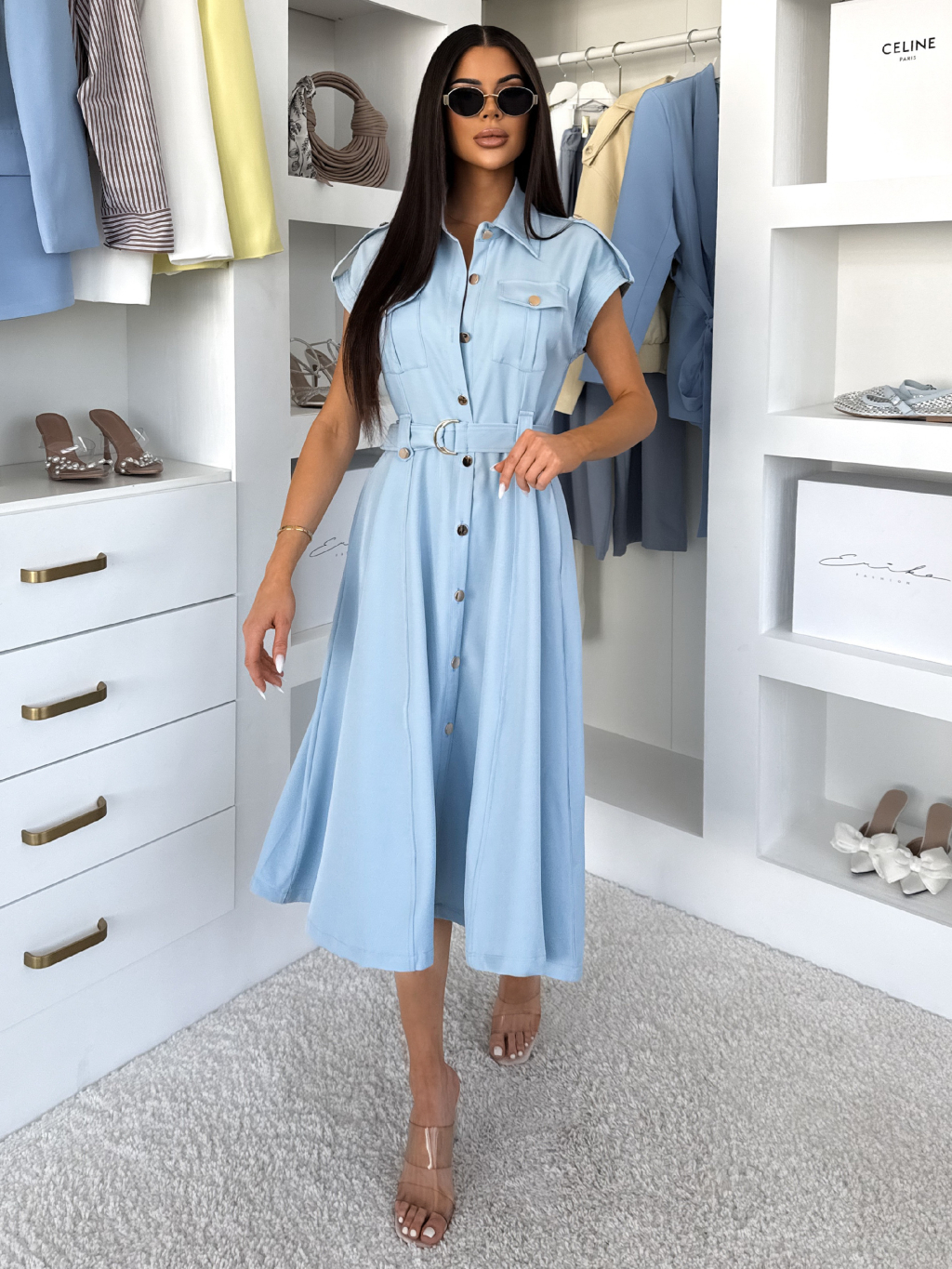 Modré košilové dlouhé šaty VEXTURA s knoflíky