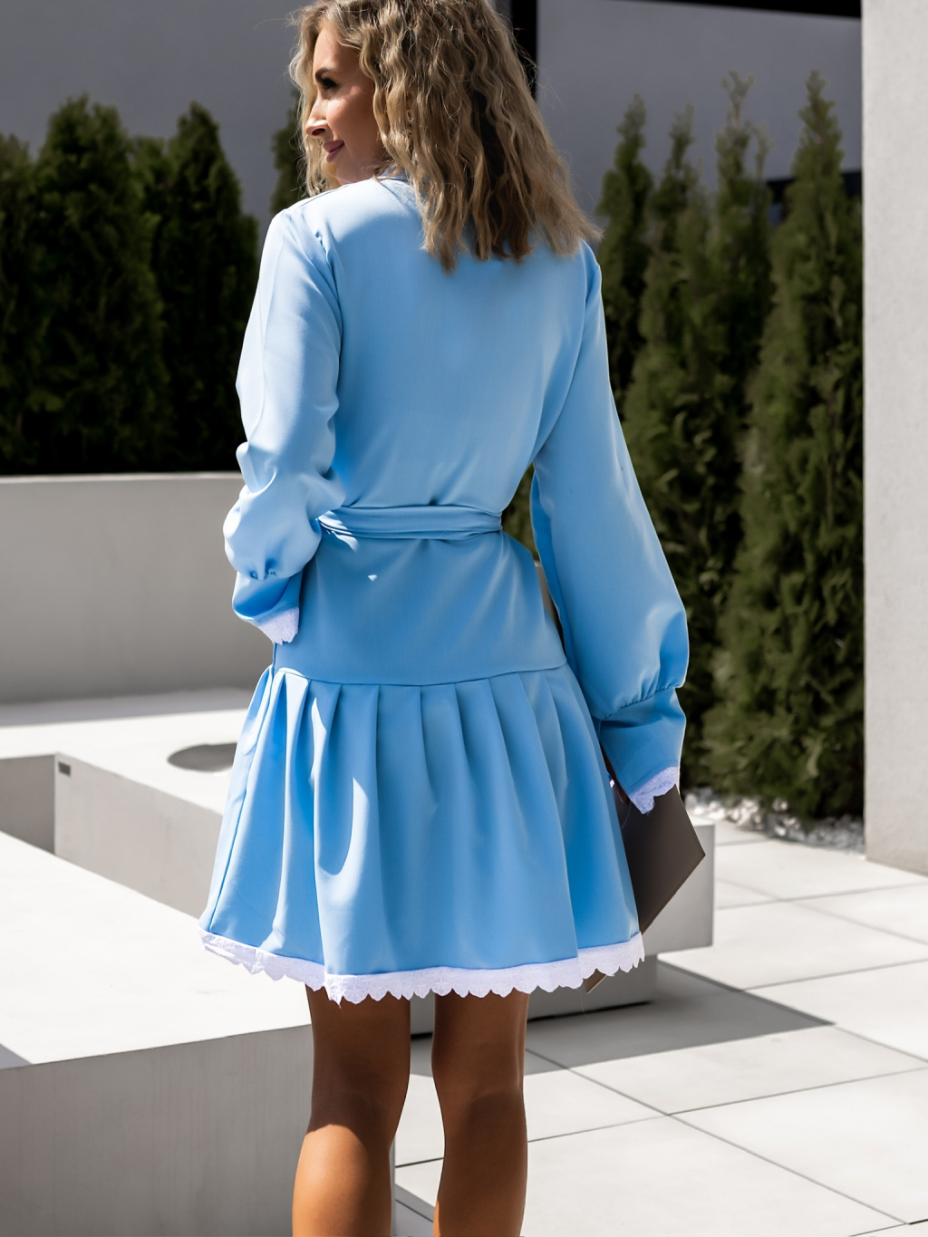 Modré krátké košilové šaty LUTOBOR s krajkou