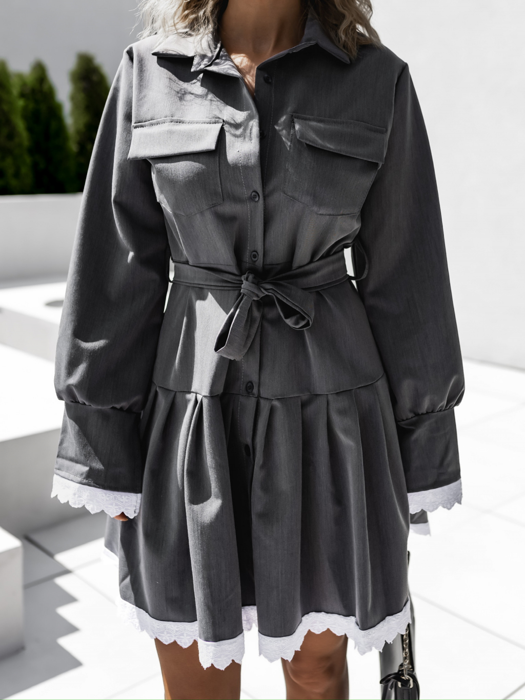 Šedé krátké košilové šaty LUTOBOR s krajkou