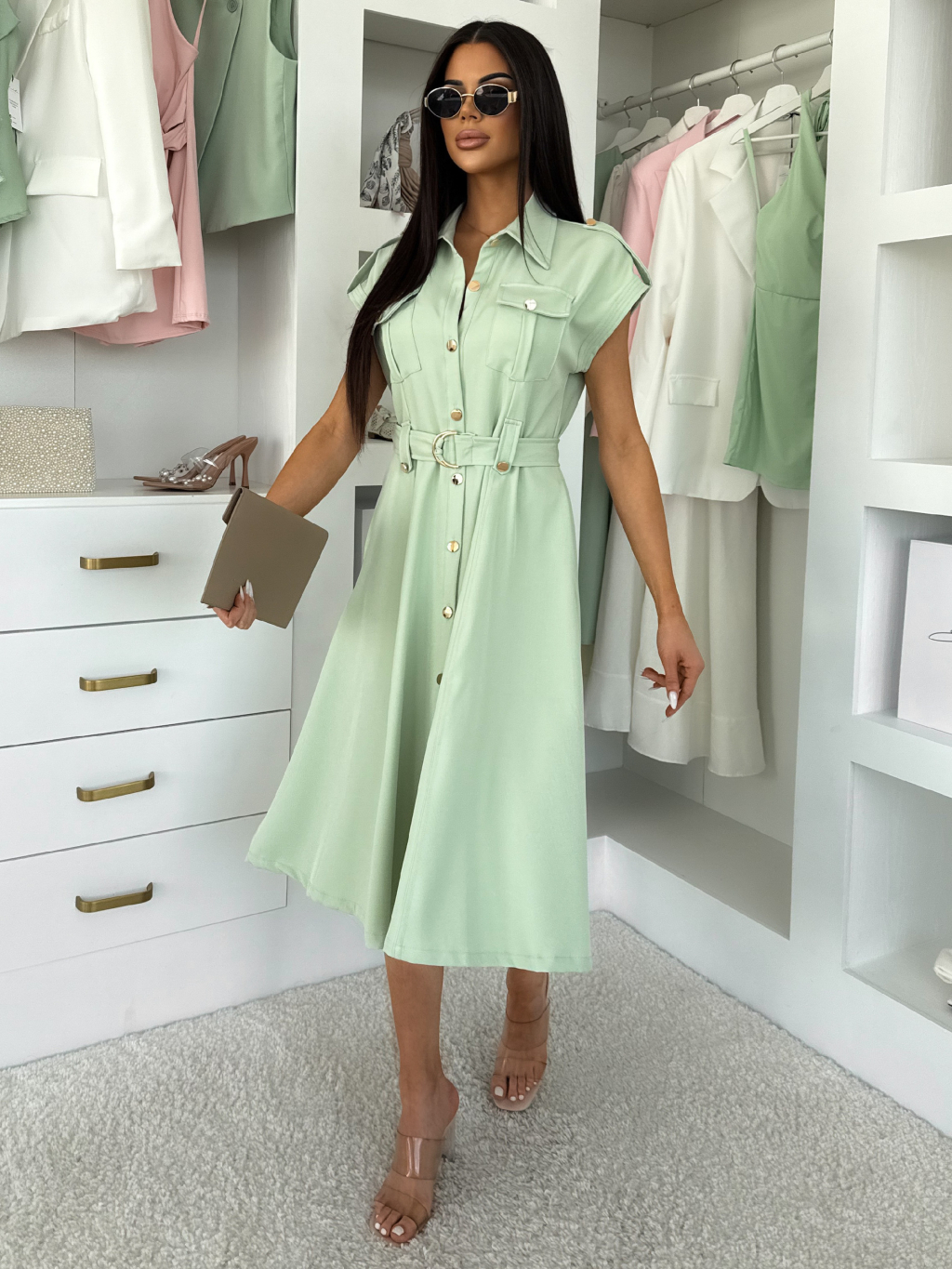 Světle zelené košilové midi šaty VEXTURA