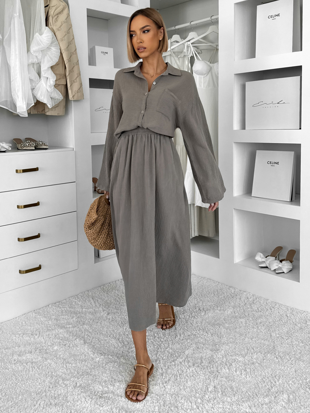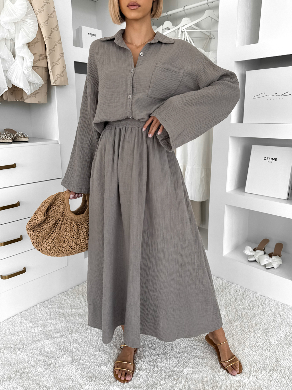 Šedohnědý mušelínový komplet BELIANE se sukní