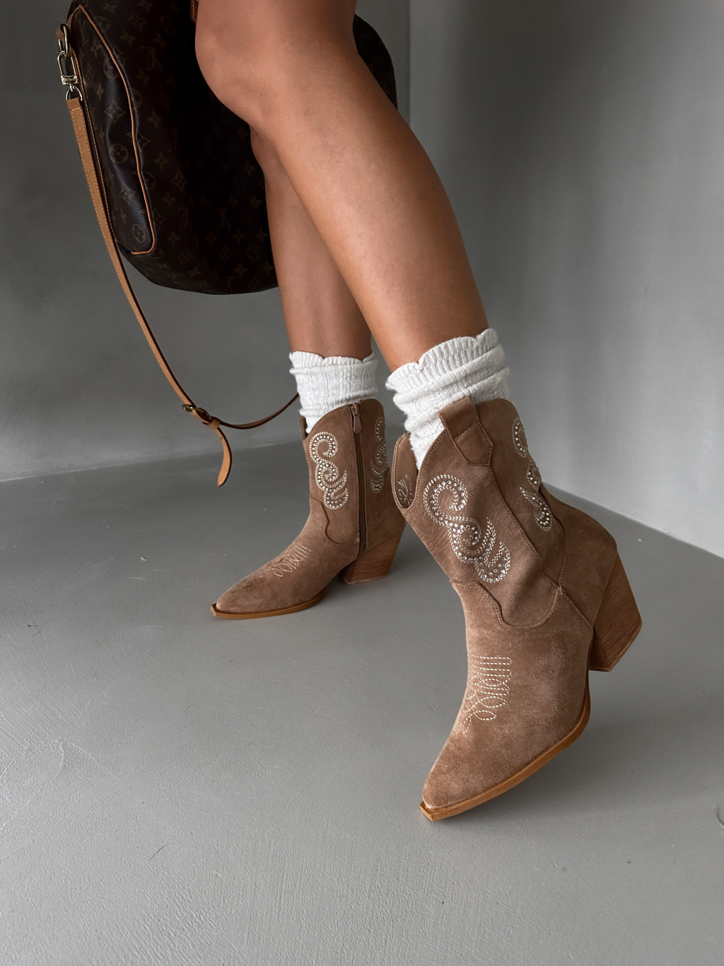Hnědé krátké kovbojské kozačky SPARKLE
