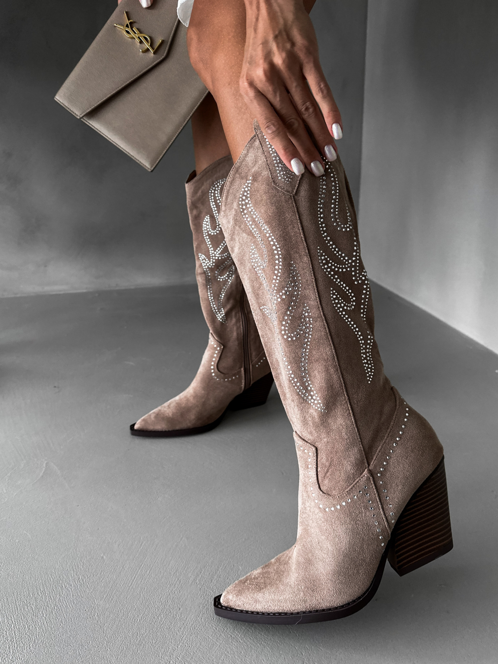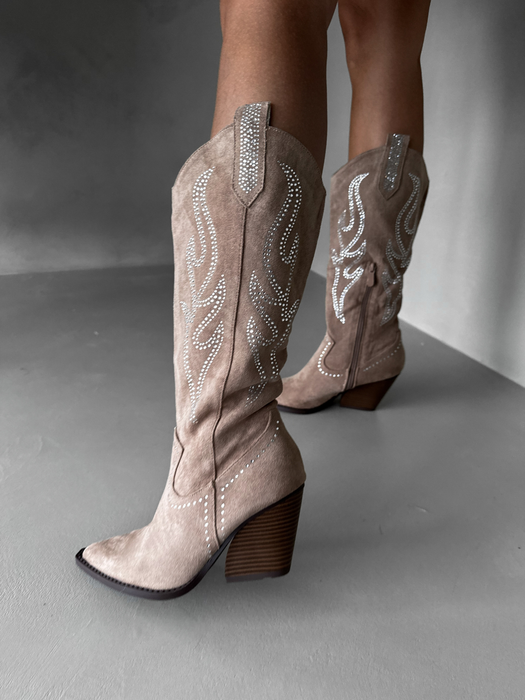Béžové kovbojské vysoké kozačky HANNAH