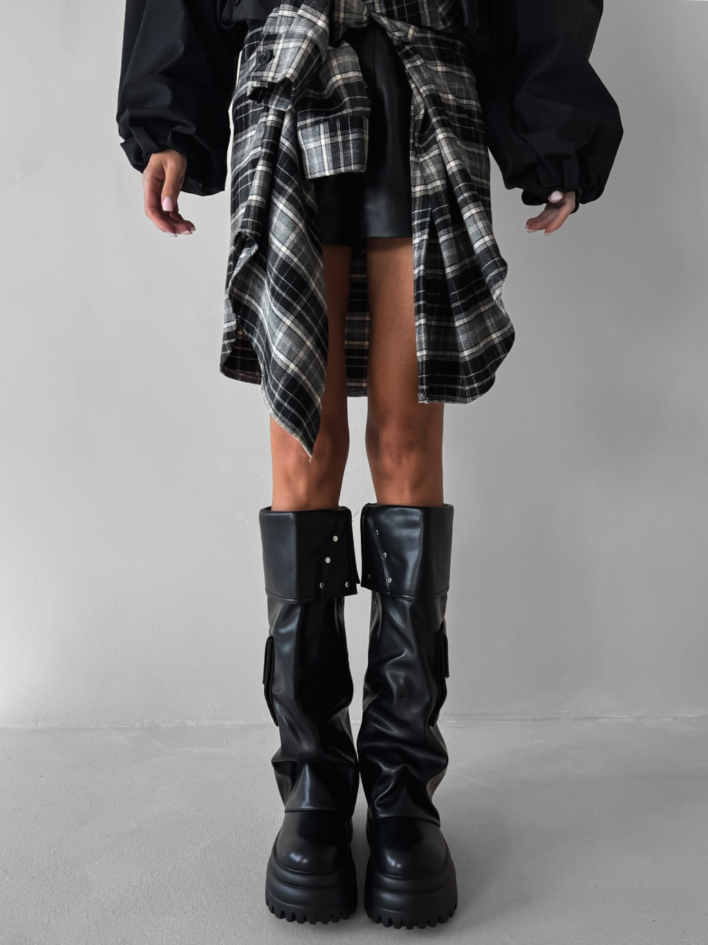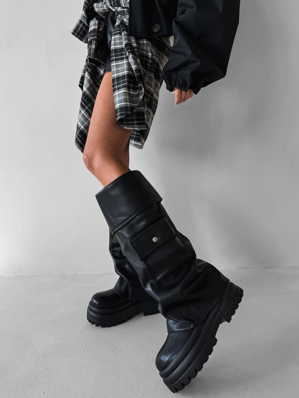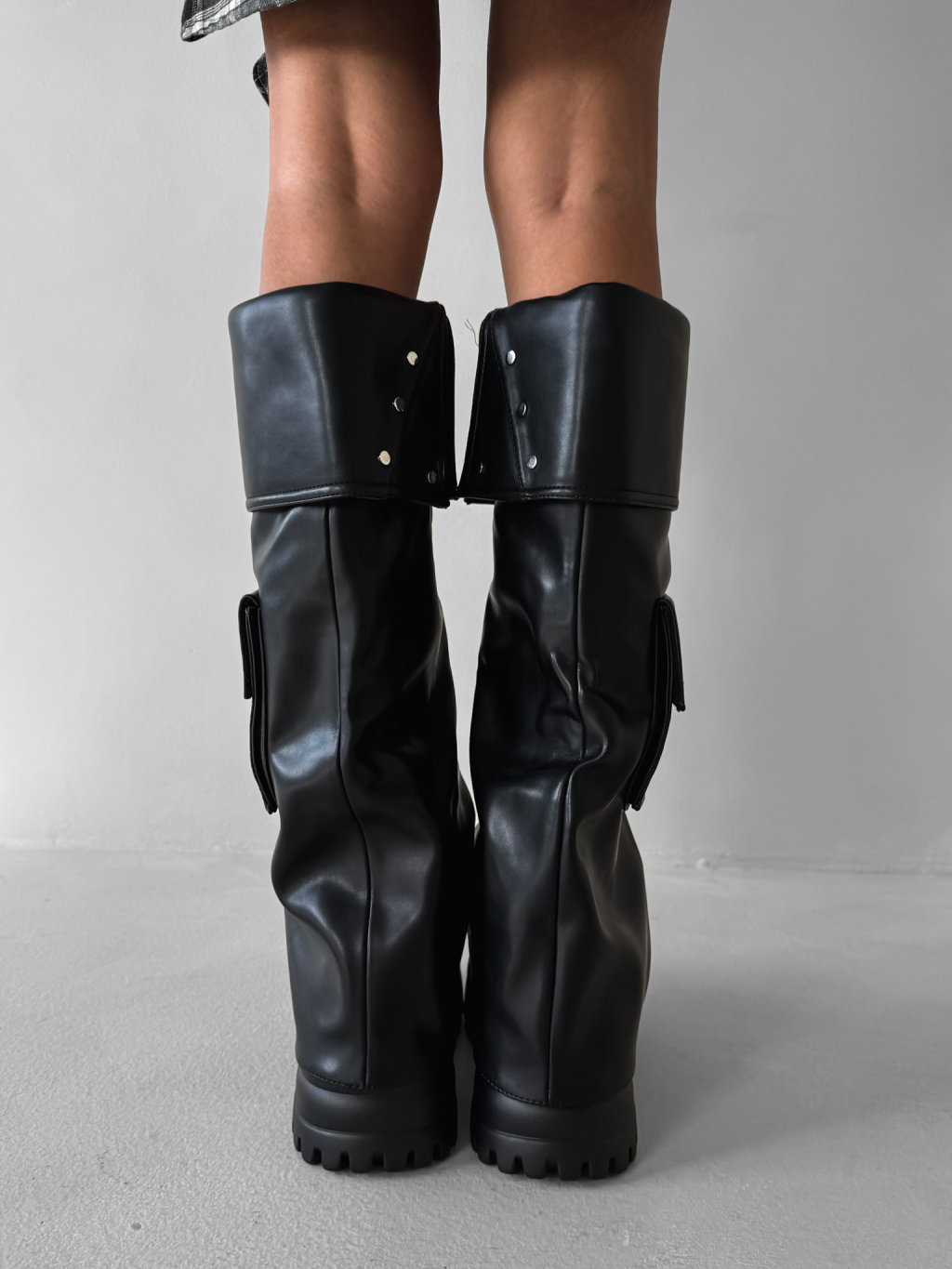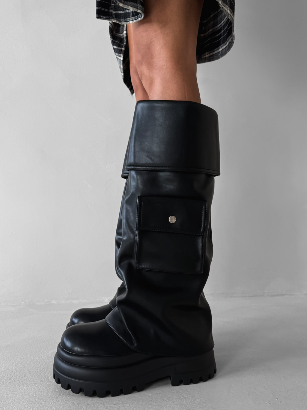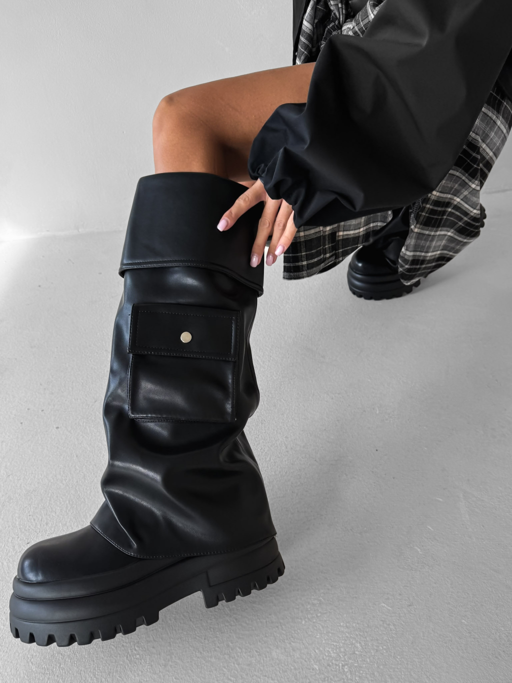 Černé stylové koženkové kozačky ELVIO na platformě jsou ideální volbou pro každou ženu, která chce spojit eleganci s pohodlím. Tyto kozačky jsou navrženy tak, aby odpovídaly klasickým evropským velikostem, což zajišťuje perfektní padnutí. S výškou podrážky 7 cm dodají vašemu vzhledu potřebný šmrnc a zároveň vám poskytnou stabilitu a pohodlí při každém kroku.