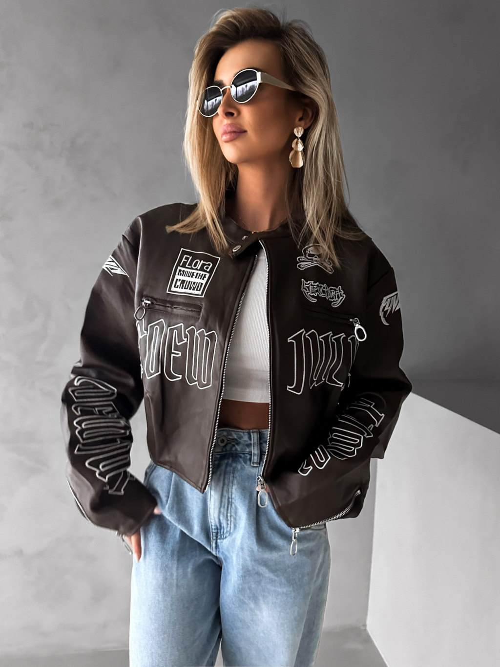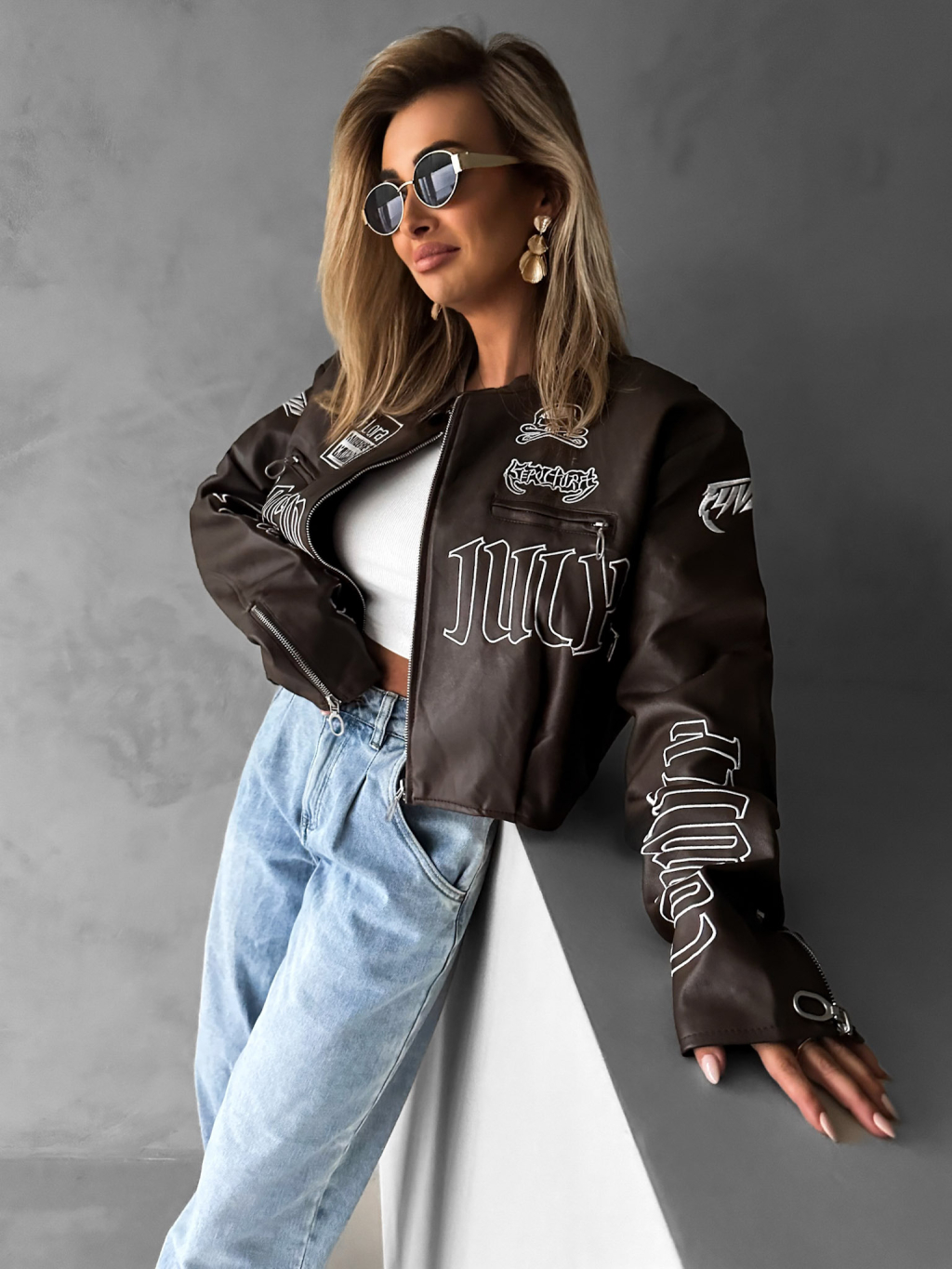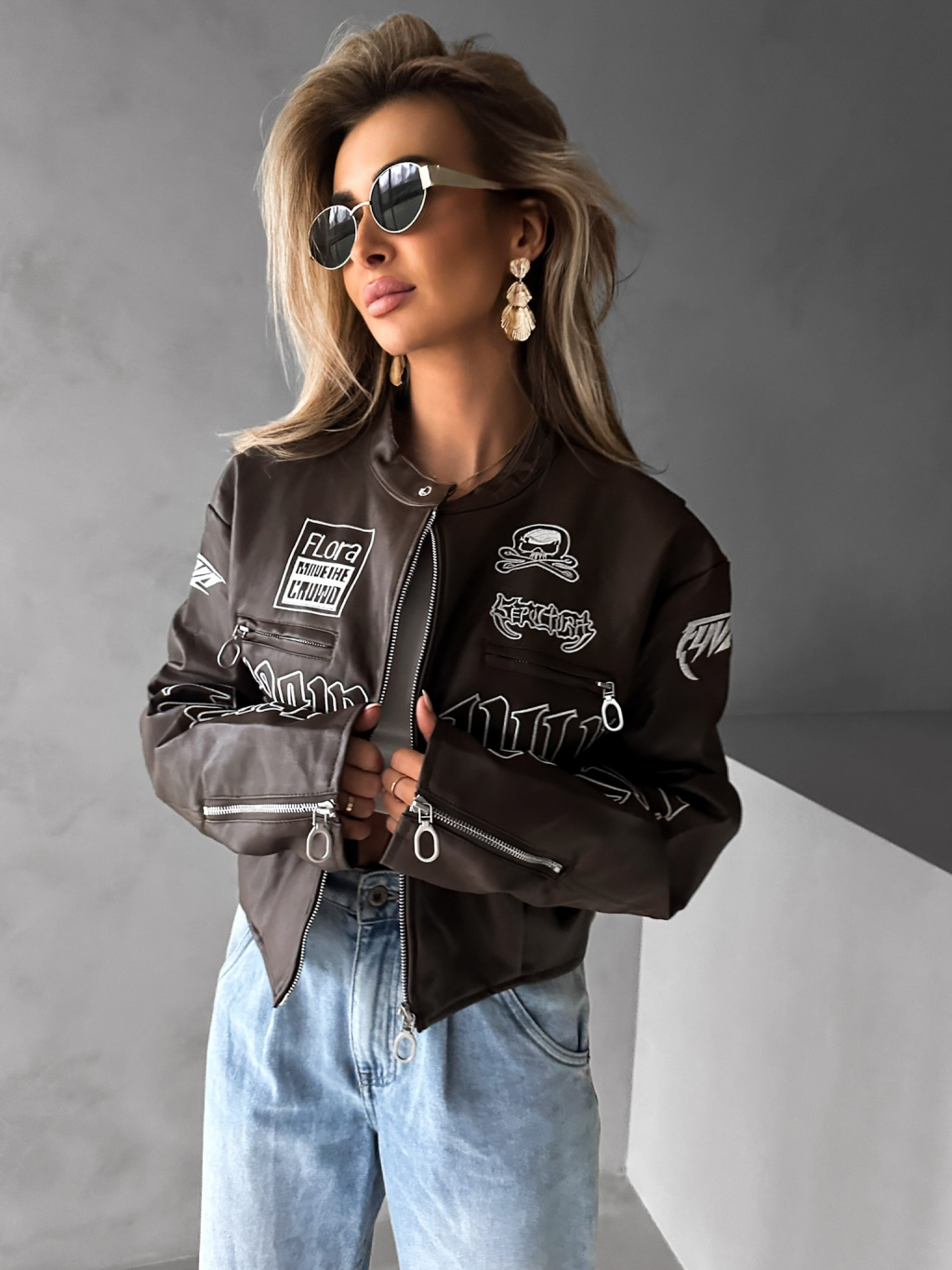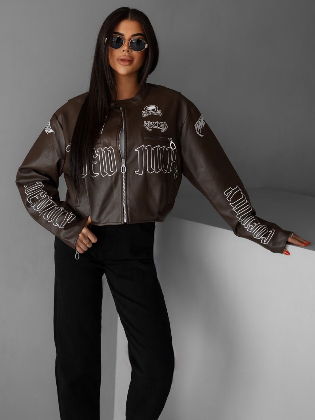 Hnědá krátká koženková biker moto bunda BRONWEN