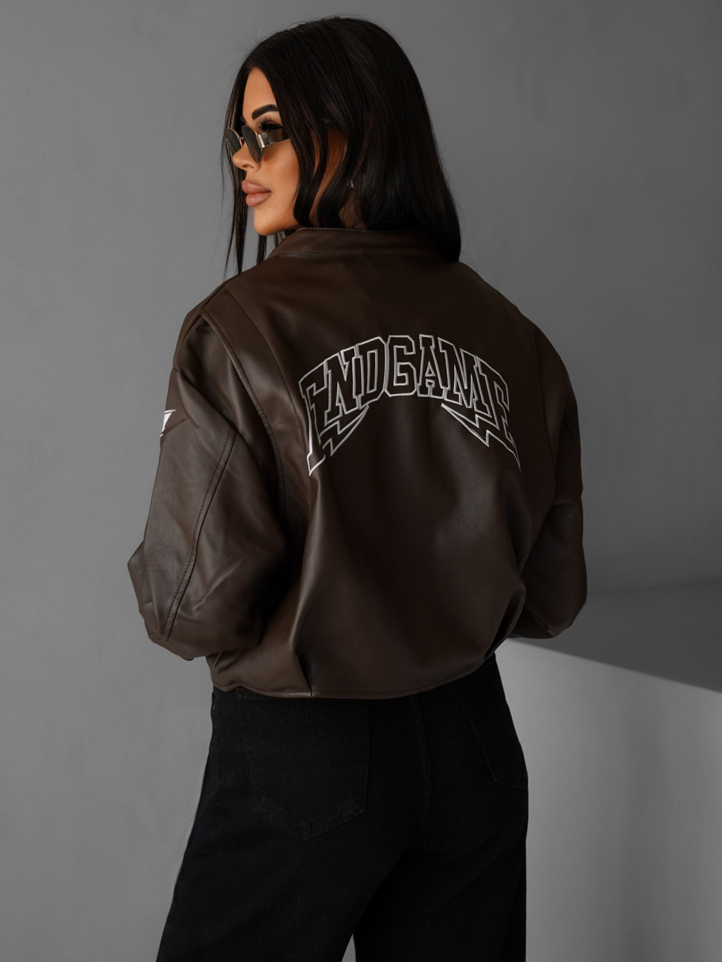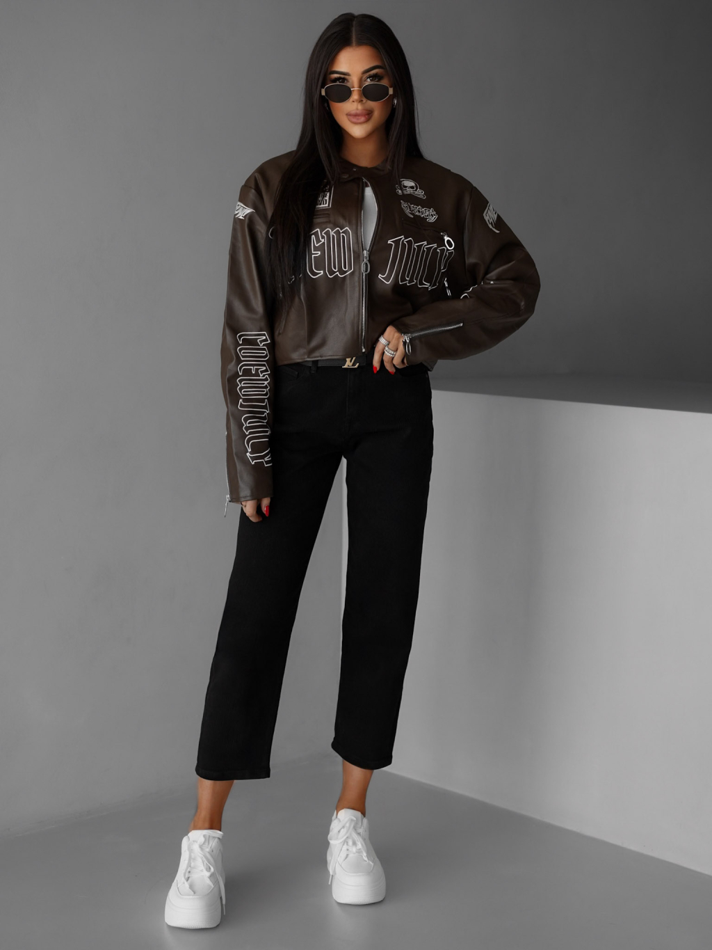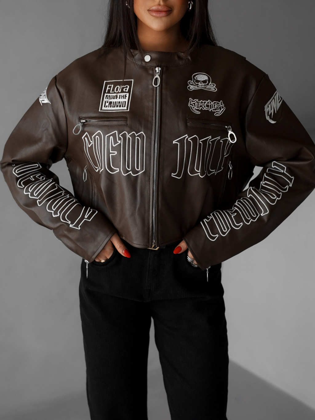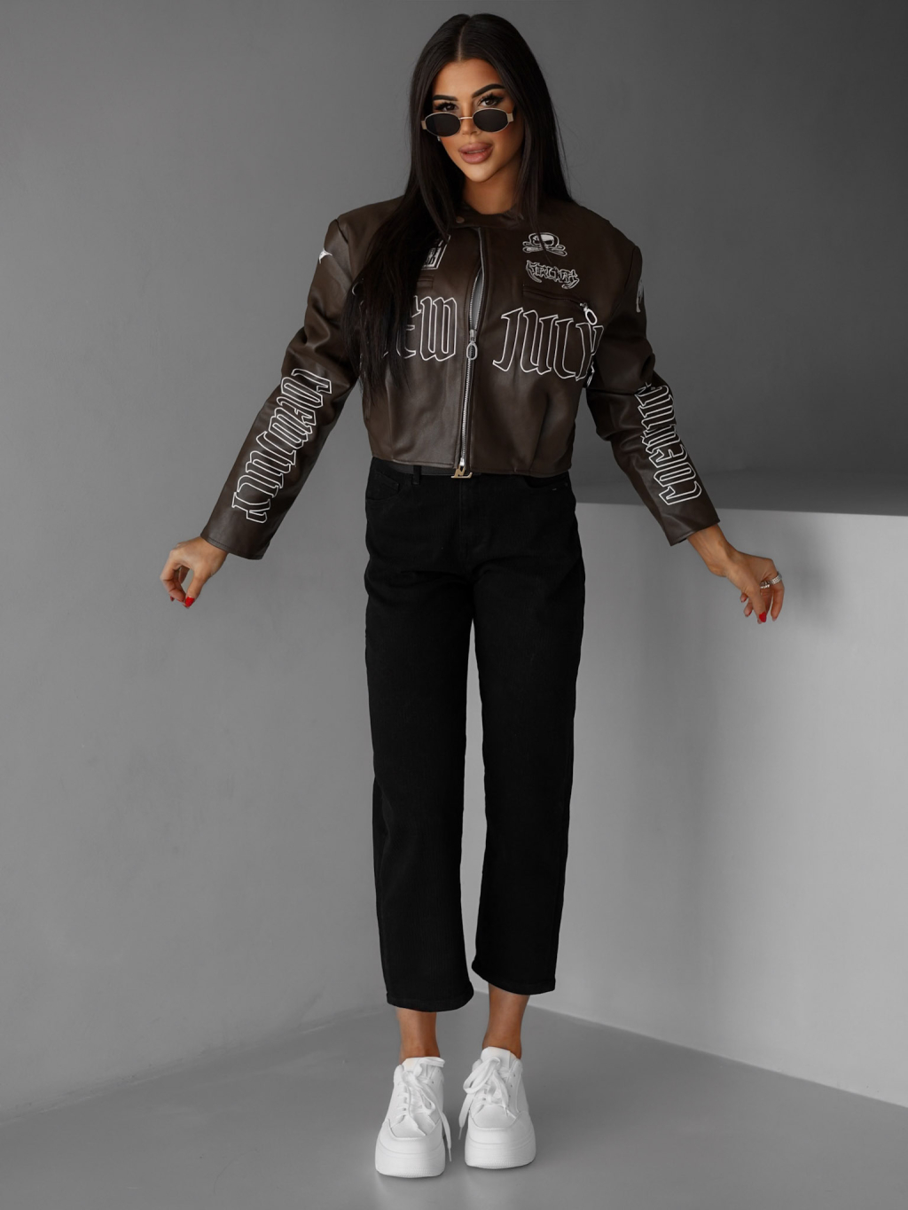 Hnědá krátká koženková biker moto bunda BRONWEN
