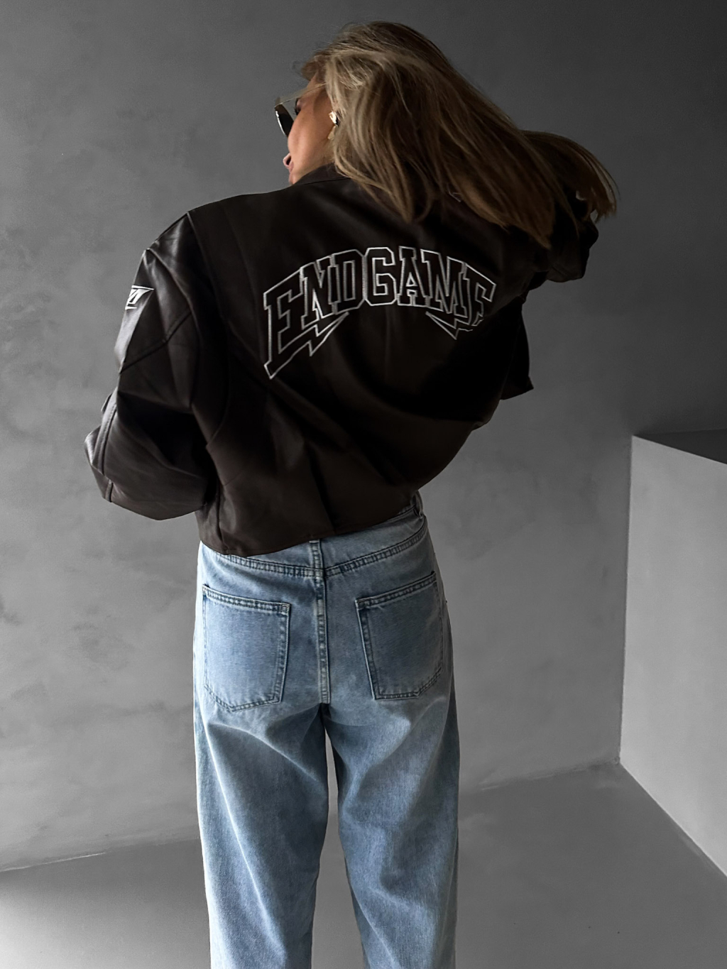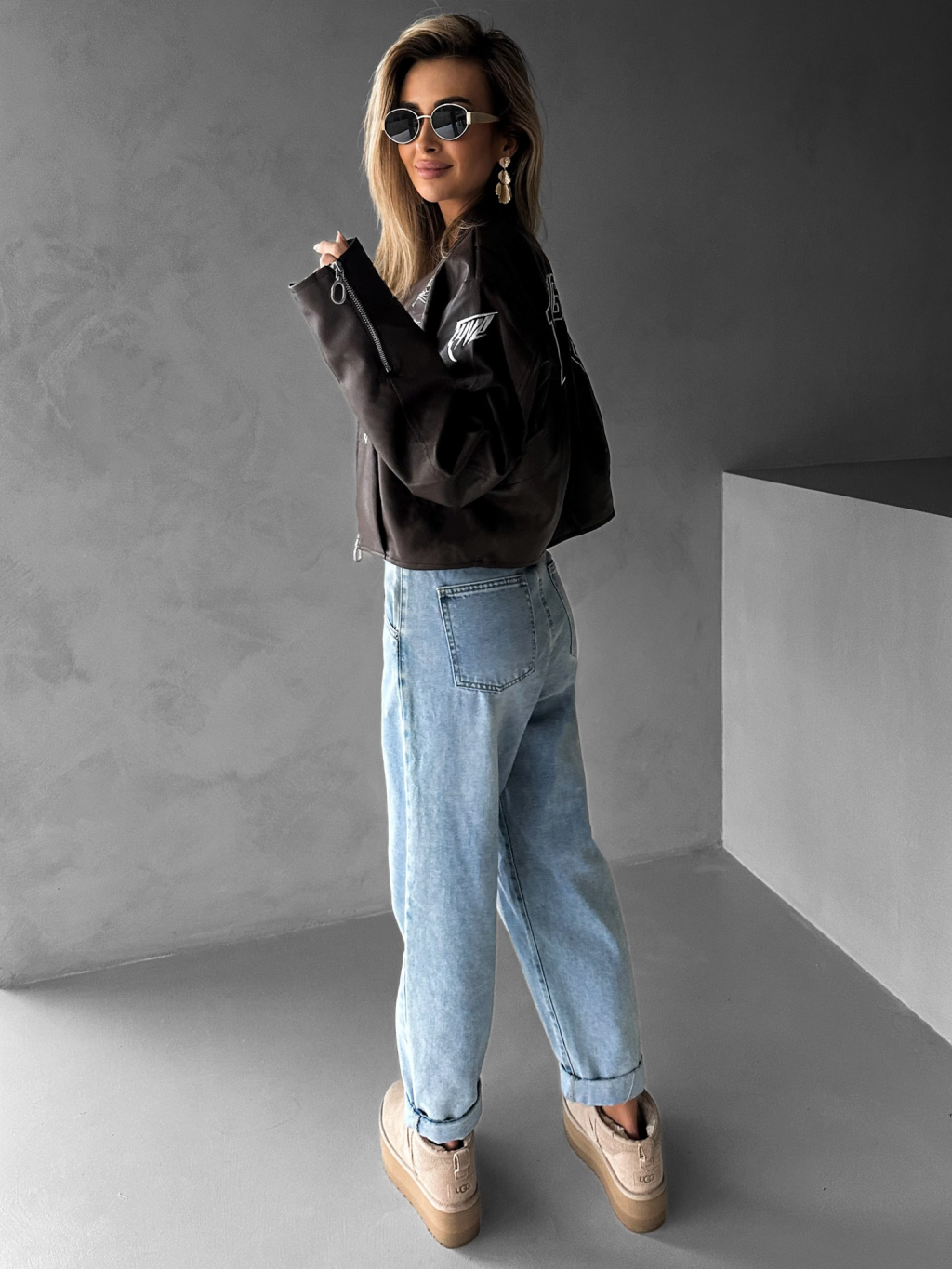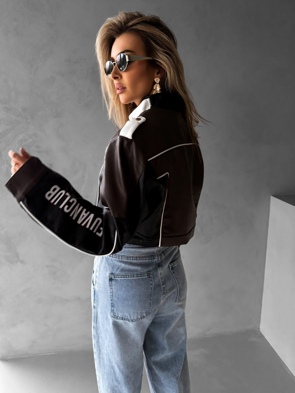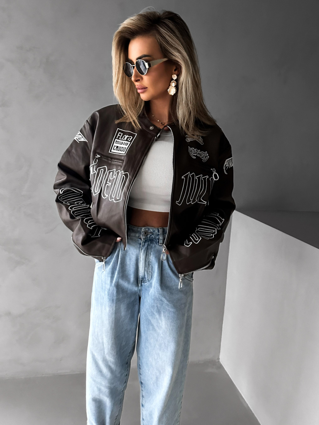 Hnědá krátká koženková biker moto bunda BRONWEN