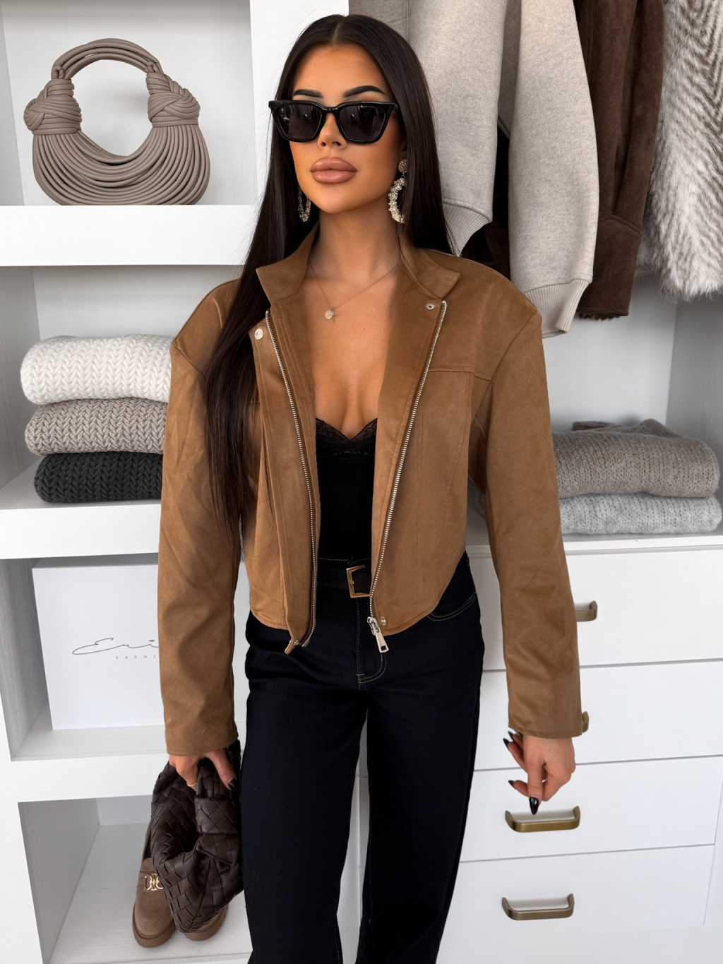 Hnědá semišová krátká bunda YOBARI