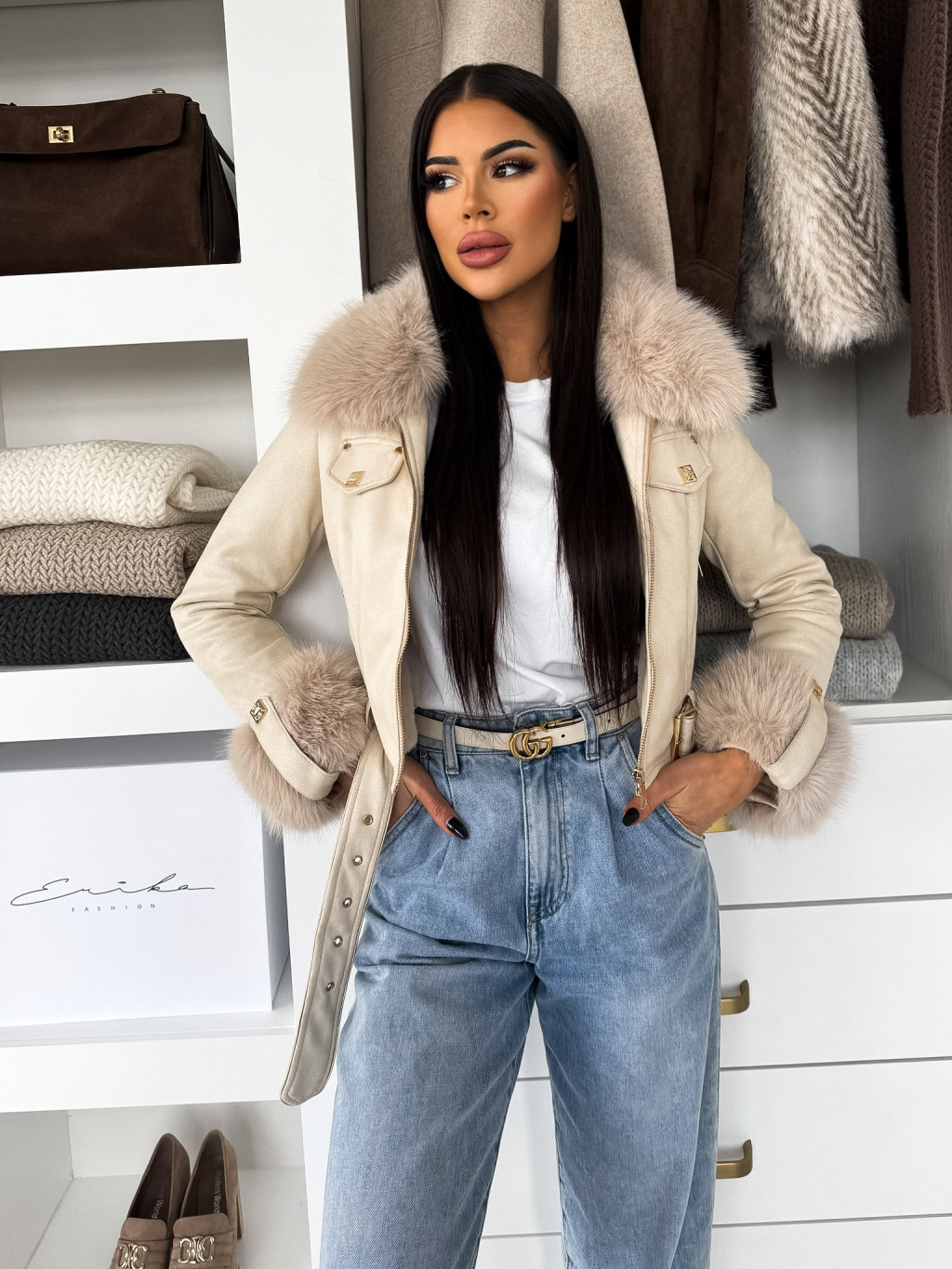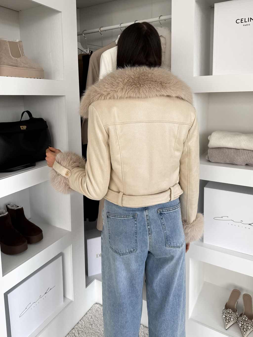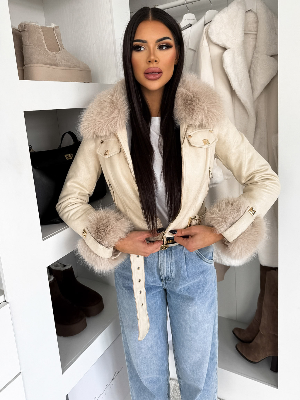Krémová krátká biker bunda EMBRILA s kožešinkou