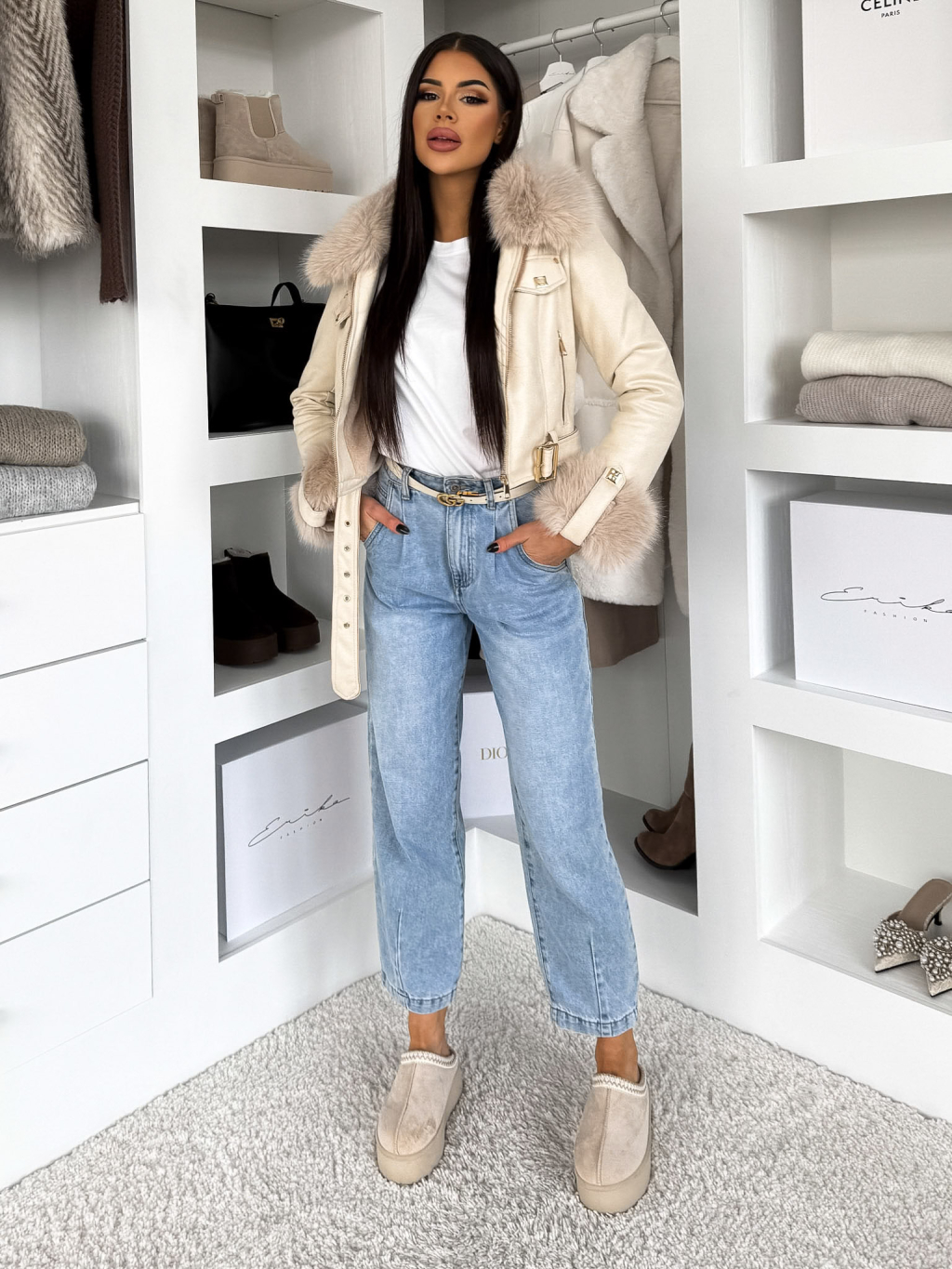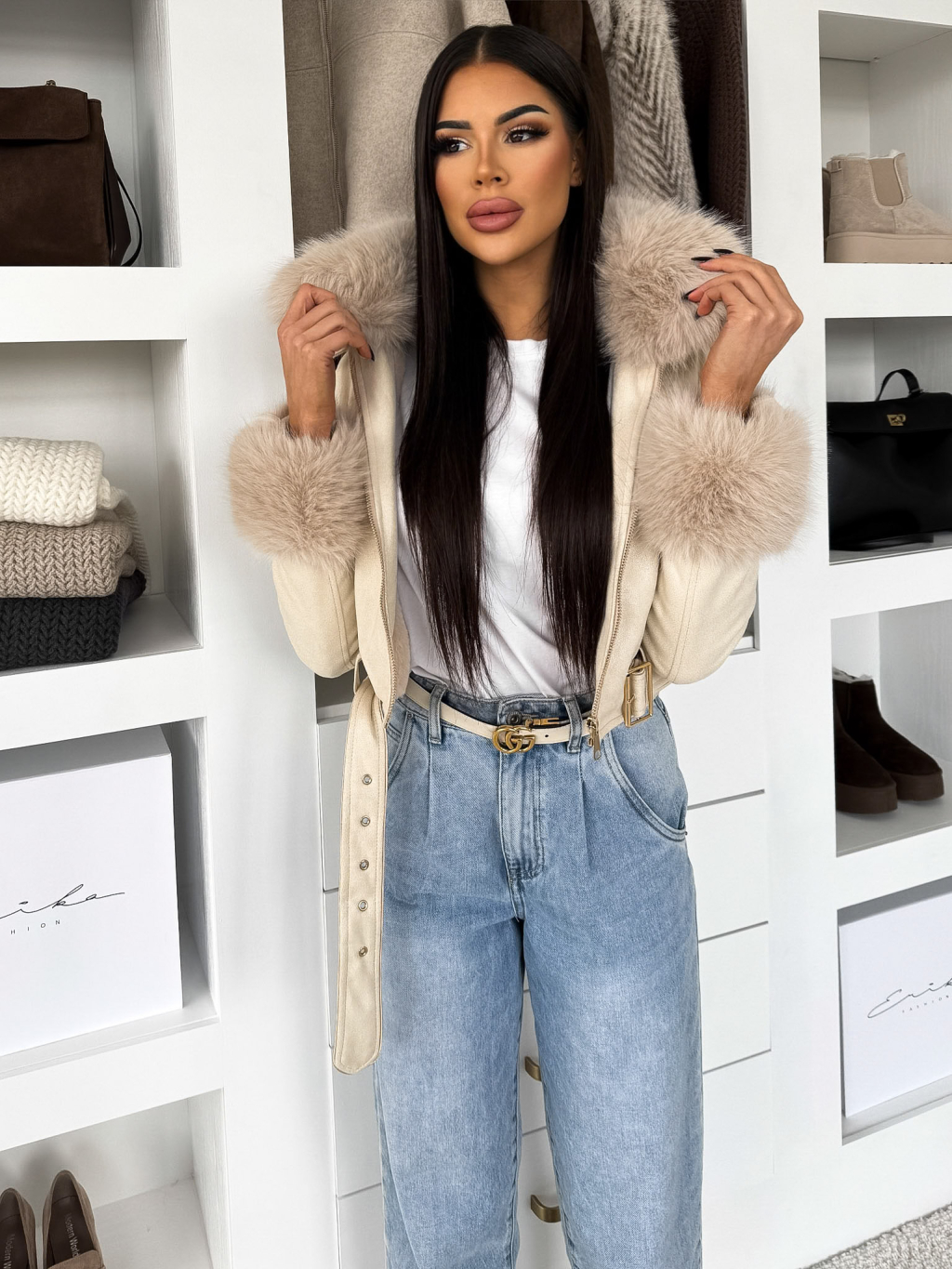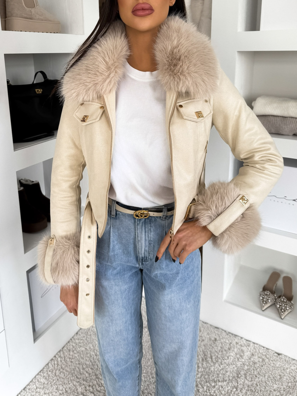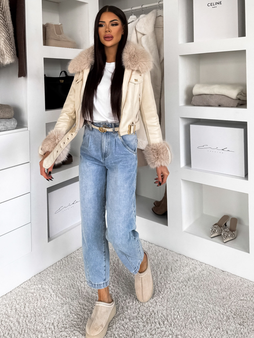 Krémová krátká biker bunda EMBRILA s kožešinkou
